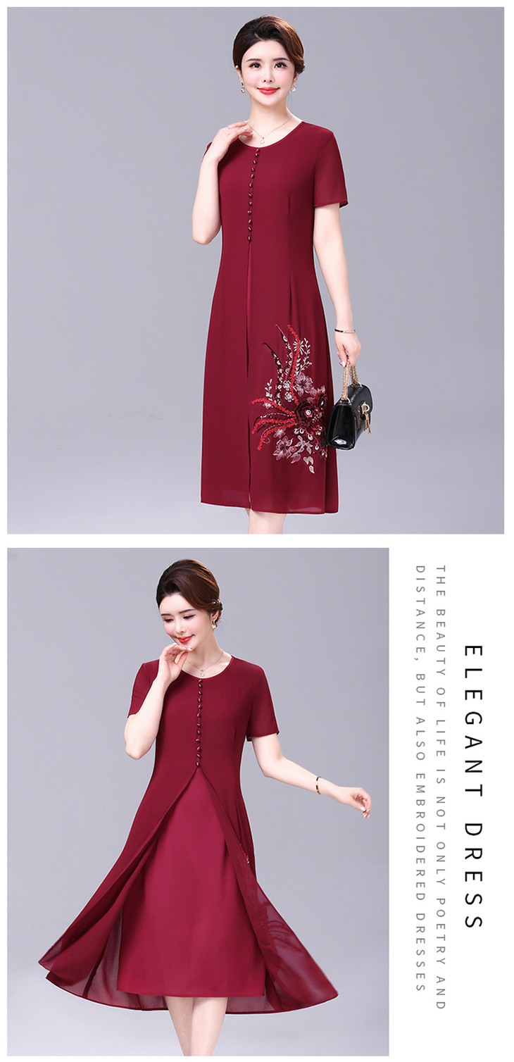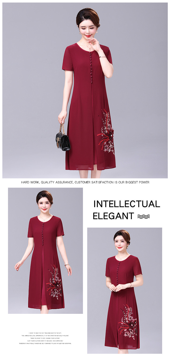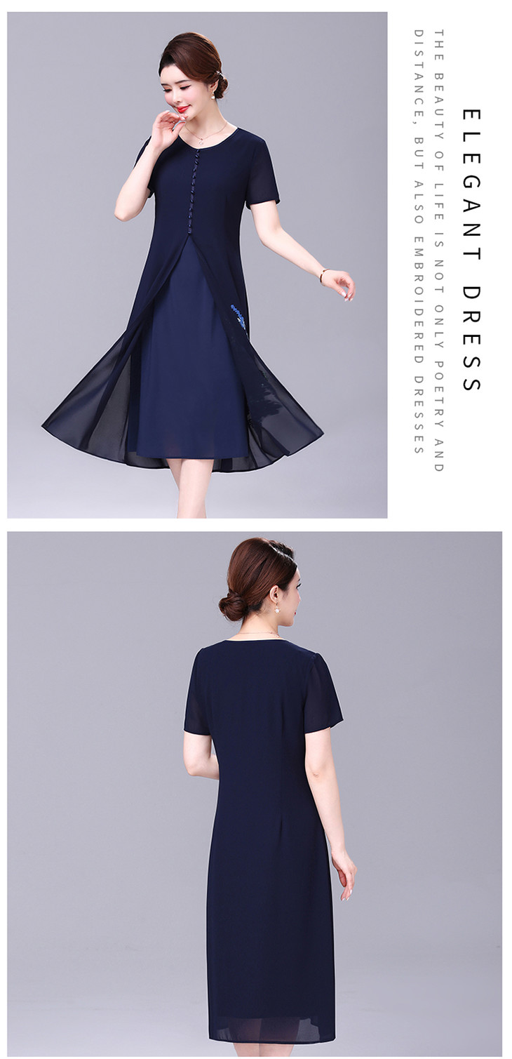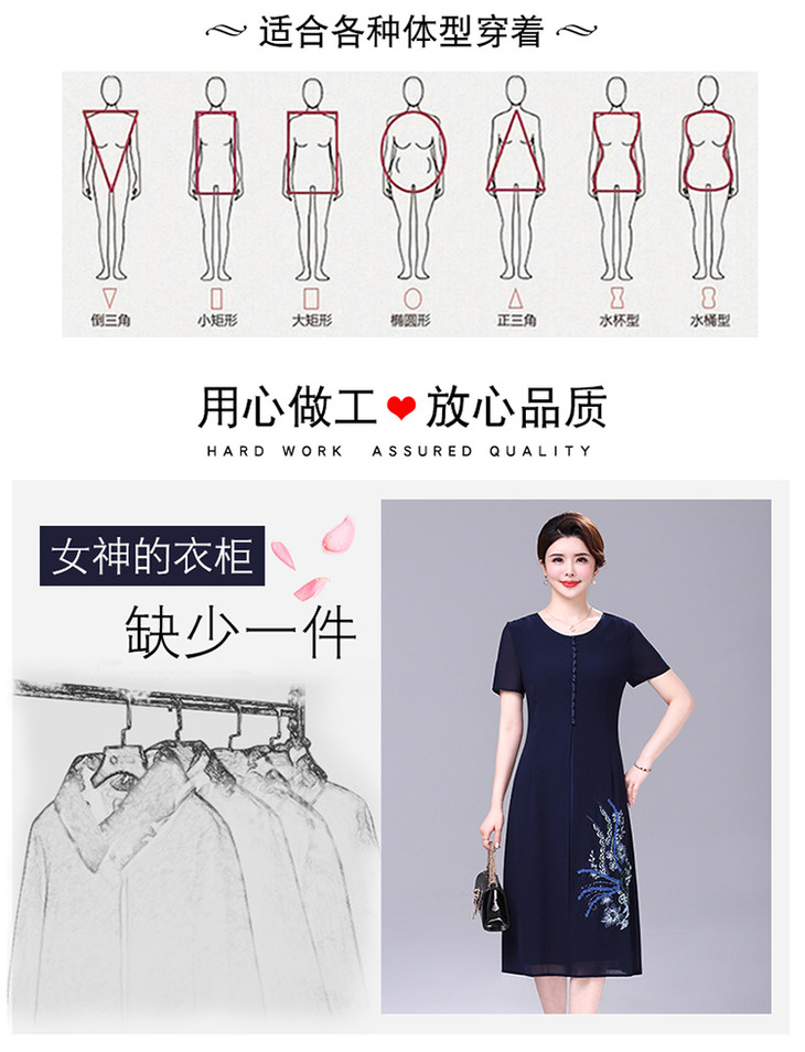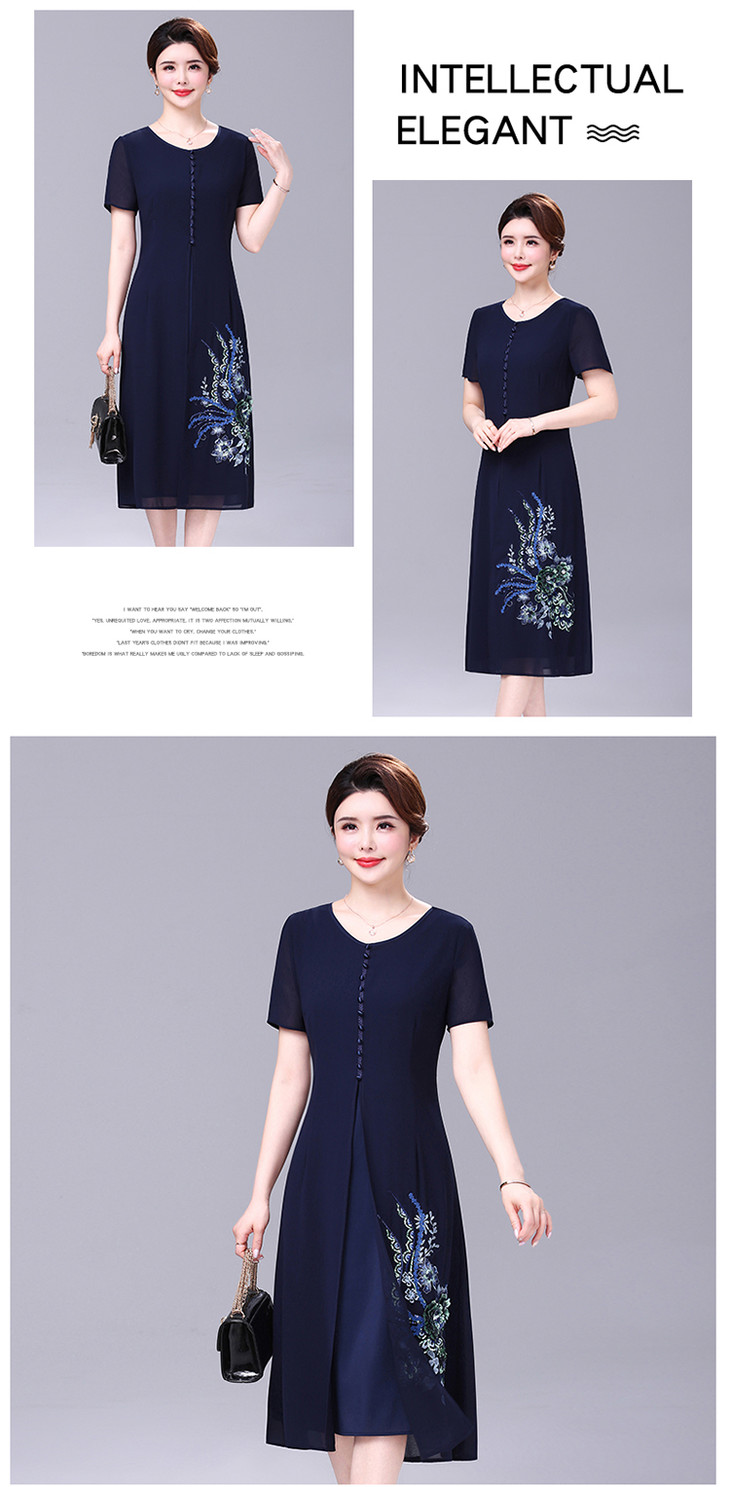YCE-A054-A939妈妈装过膝连衣裙 阔太太气质高贵长款显瘦裙子
