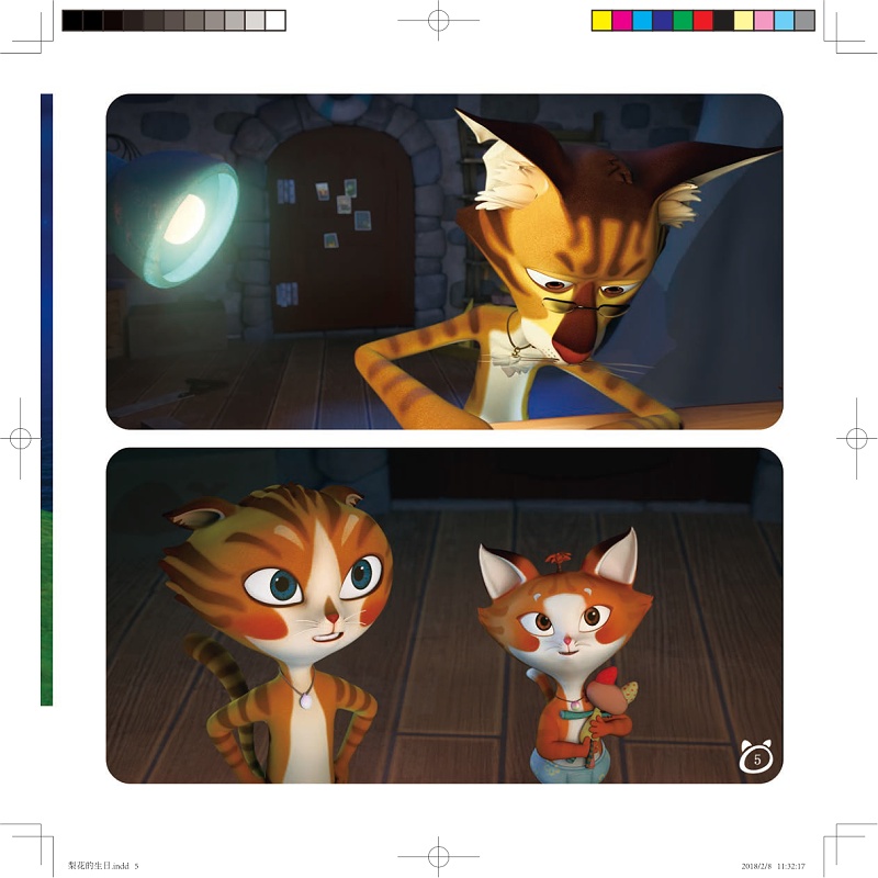 《猫村狂想曲》系列共10个故事,每个故事有1个主题词。 本册的主题词为:关爱 猫妈梨花生日在即,黑豹和小宝、美宝三人为了准备生日礼物伤透了脑筋。黑豹为了兑现当年的诺言,拿着自己特别设计的新鱼竿去钓传说中的“深海双尾鱼”,小宝则占用了猫妈梨花的厨房决定做一个最美味的蛋糕,而美宝则从巴丽身上获得启发,决定做一个美丽的花环送给妈妈。时间一点点过去,黑豹被大鱼拖入海中;小宝将鸡蛋、面粉铺满了厨房;美宝的花环不小心掉下了山坡……夜晚,梨花回到家中,小猫们聚在一起为她唱着生日歌,鲜花、蛋糕、以及狼狈的黑豹拖着大大的深海双尾鱼出现在她面前。