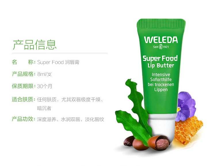 【品牌旗舰】WELEDA维蕾德skin food润唇膏8ml 补水保湿滋润