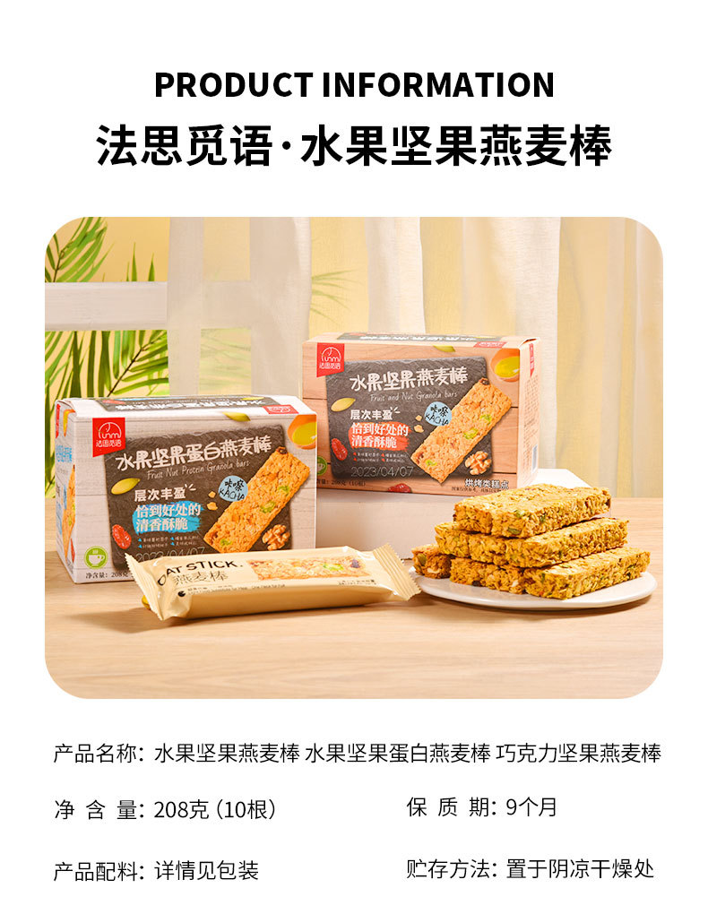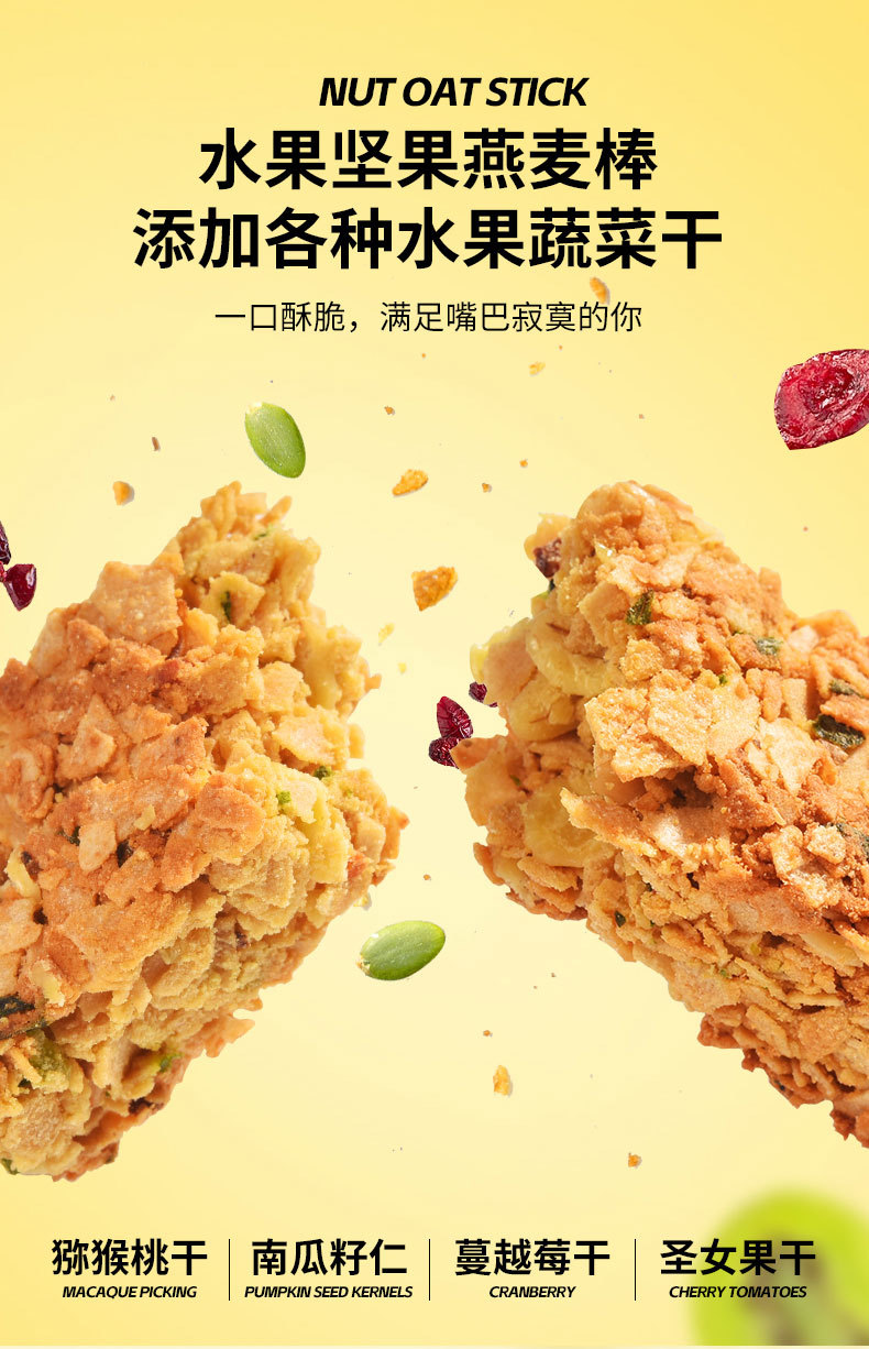 【健身粗粮!饱腹抗饿】法思觅语水果坚果蔬菜蛋白棒燕麦谷物能量棒健身粗粮饱腹代餐棒。xb