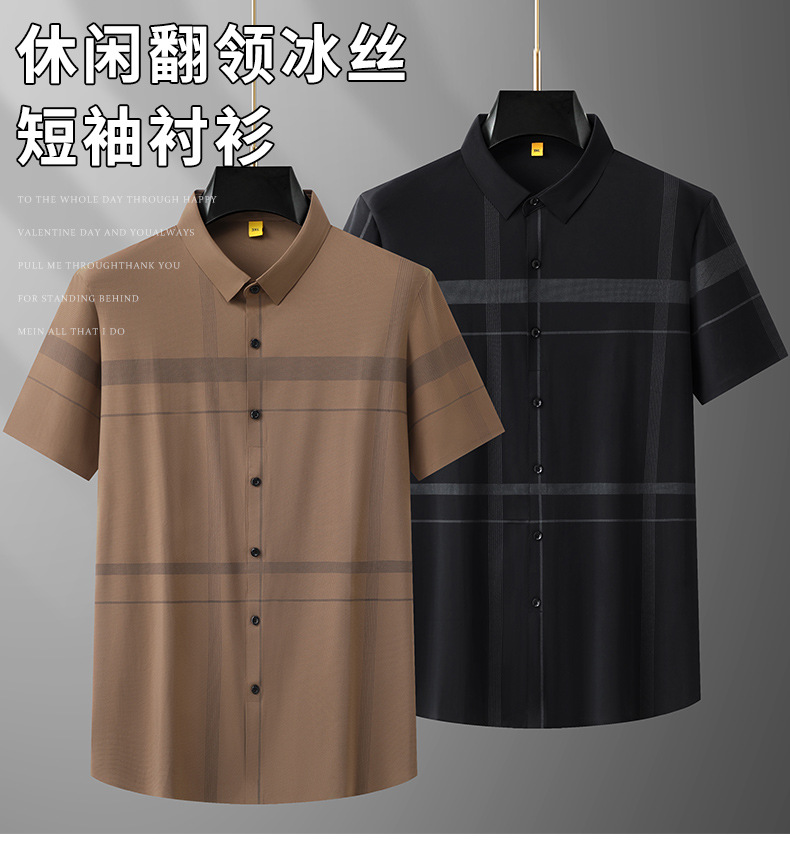 【封口款】【冰丝弹力】【DG】大依优型大码套头短袖衬衫加肥大码男士冰丝半袖衬衣POLO衫夏季薄款肥佬时尚休闲