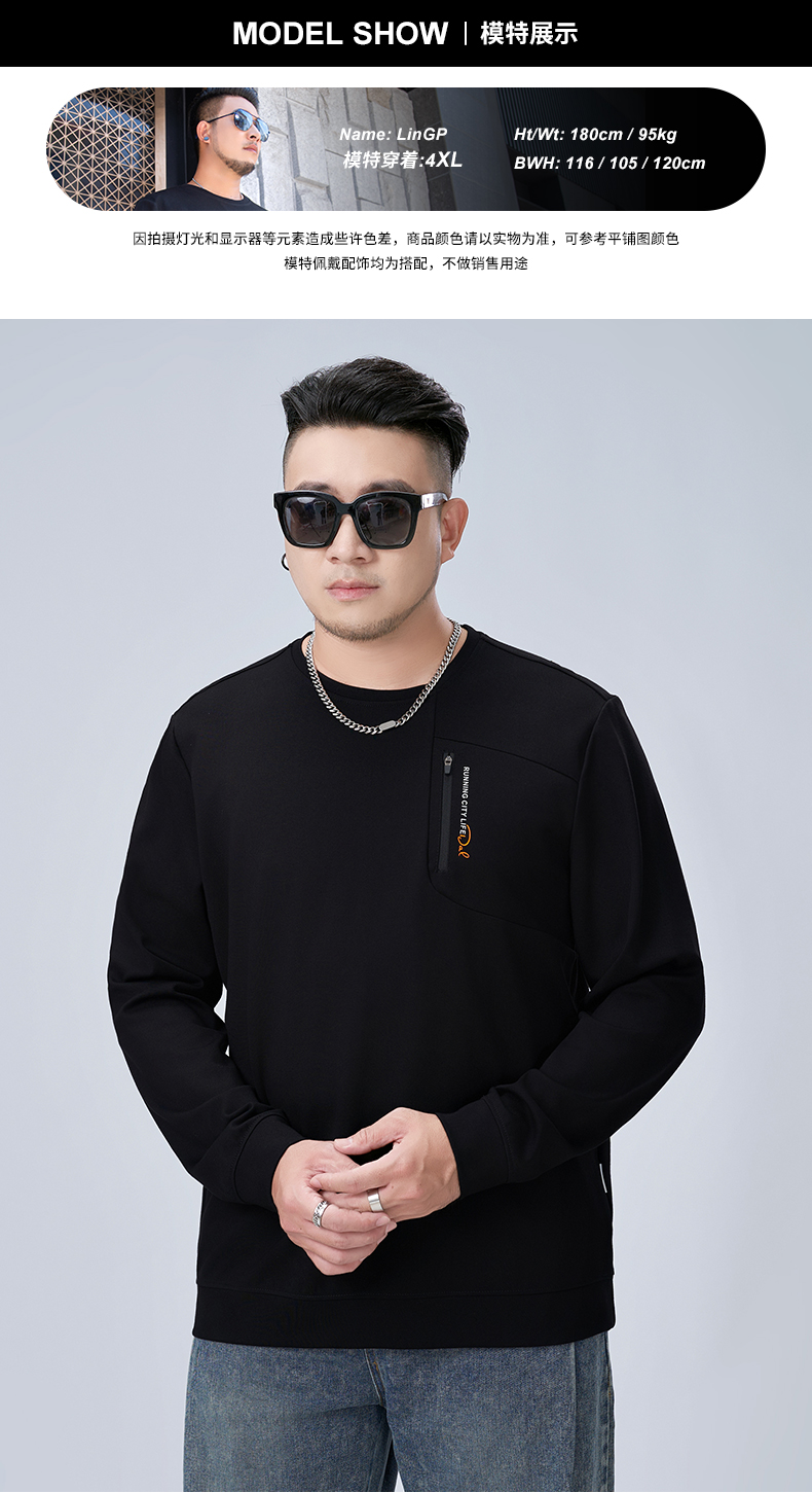 【新款DMH】大依优型大码男装圆领卫衣简约宽松上衣男士胖子打底衫300斤