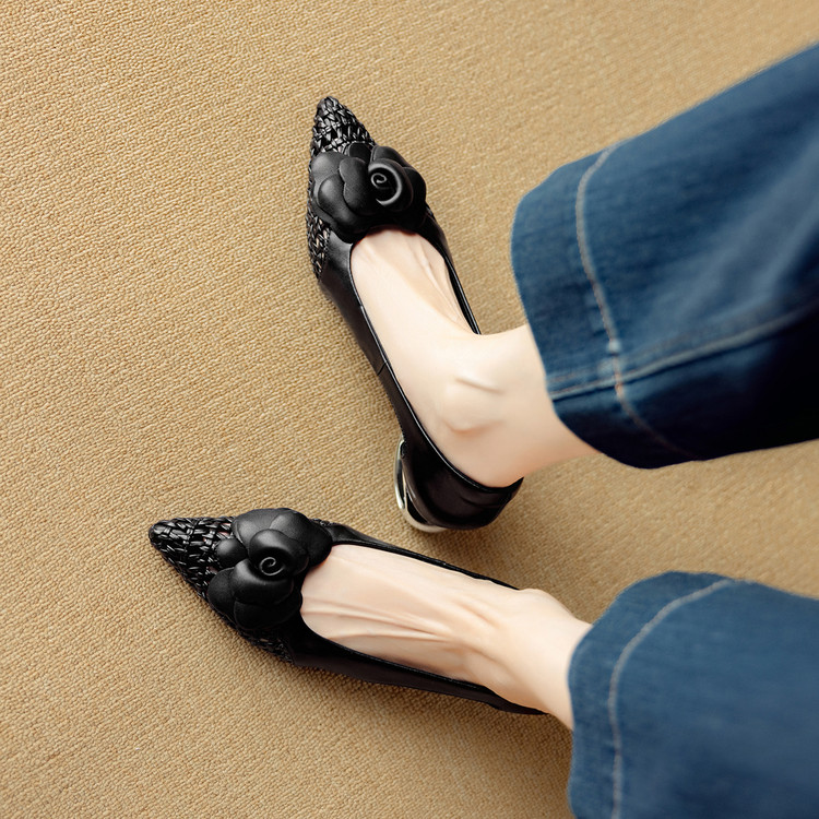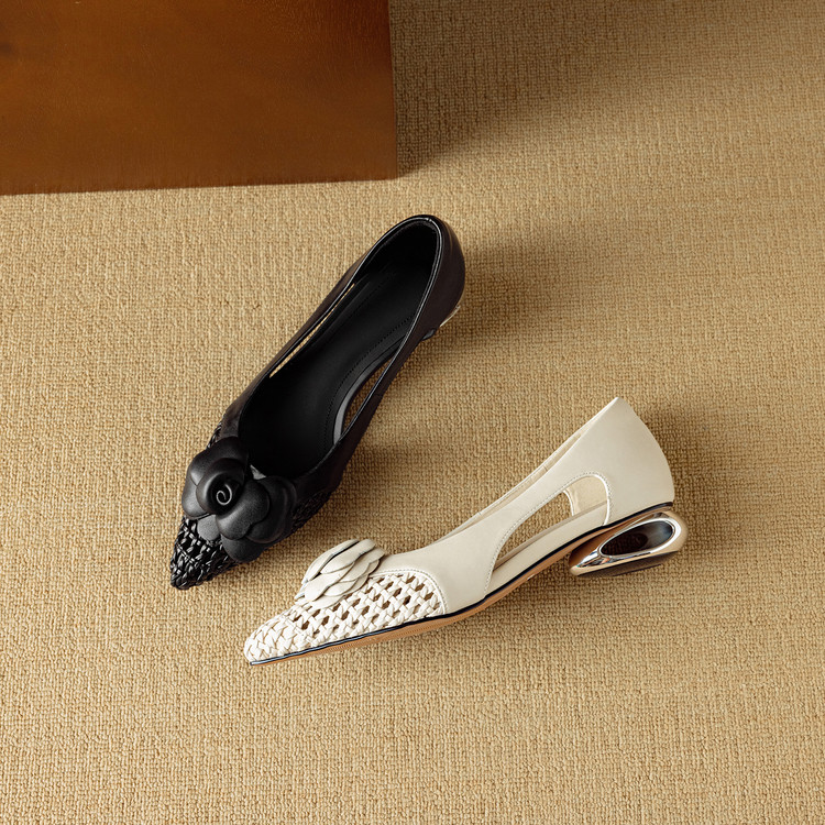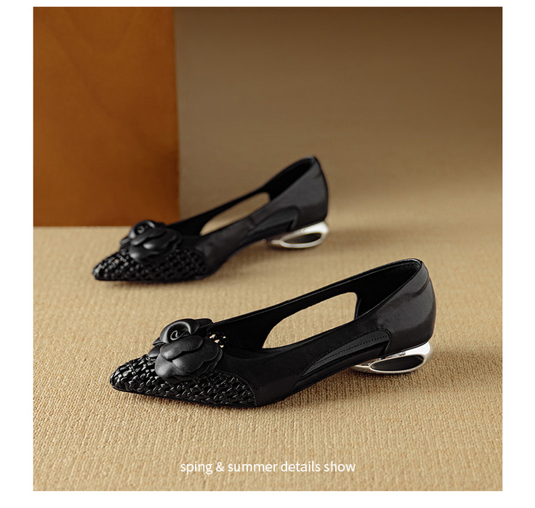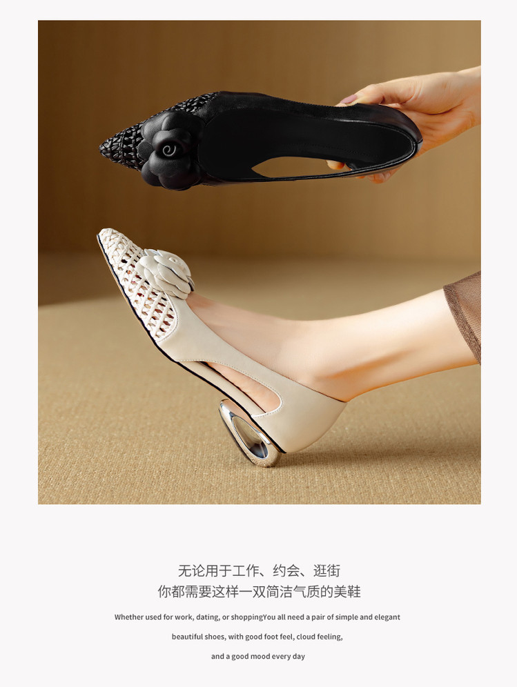 【预售5天】山茶花编织尖头单鞋女夏真皮镂空透气低跟侧空凉鞋配裙子DB&M6381
