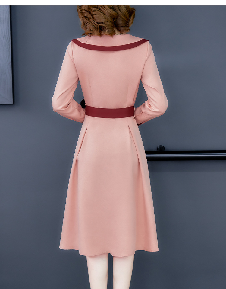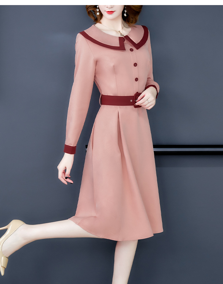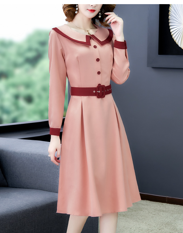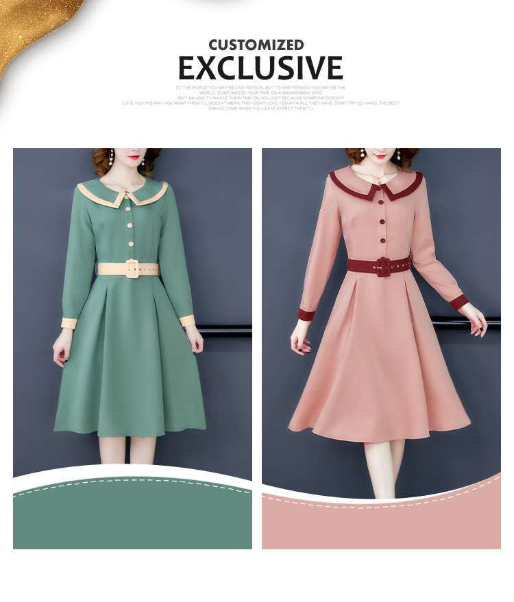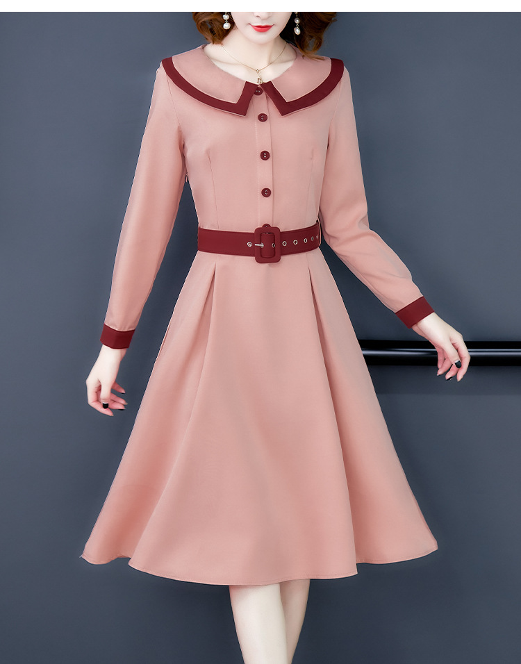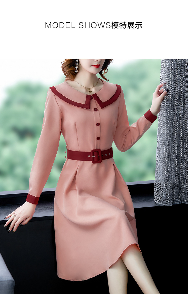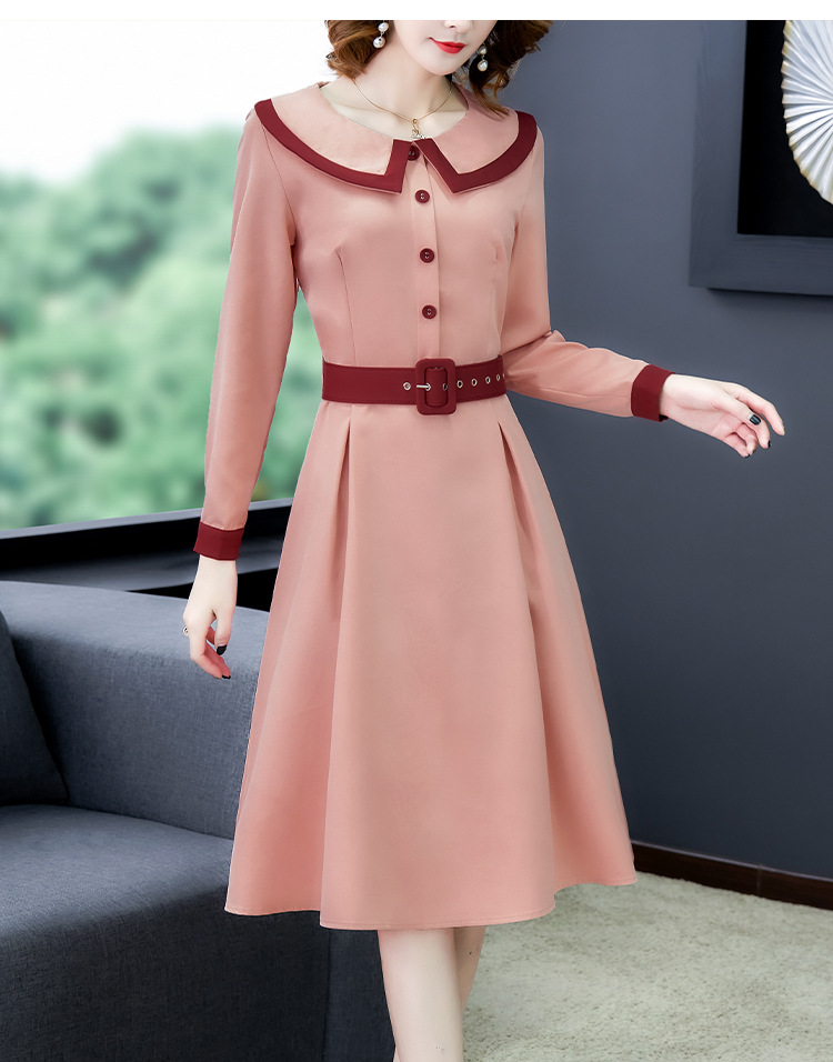 AHM-ybb6692新款时尚优雅OL气质拼接娃娃领名媛淑女A字裙ZXH