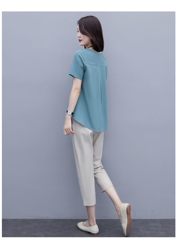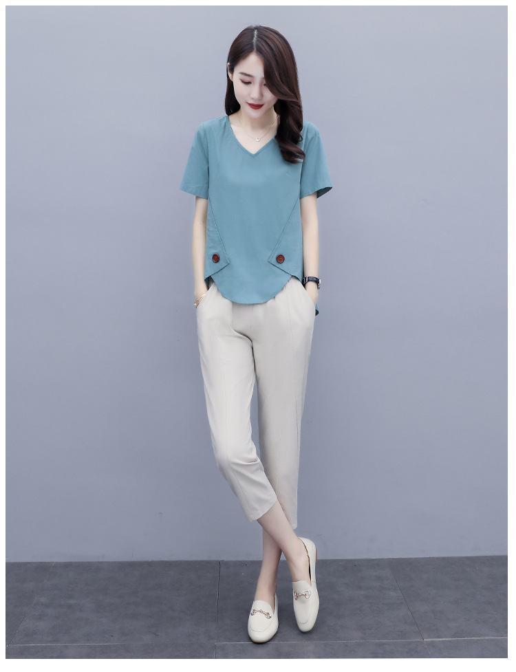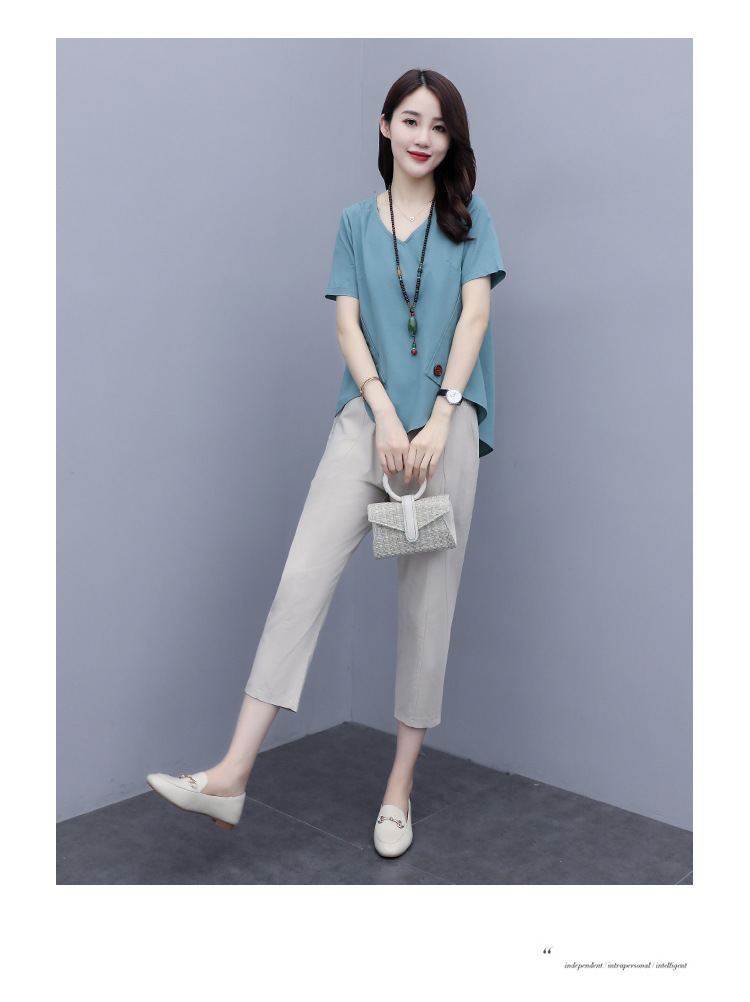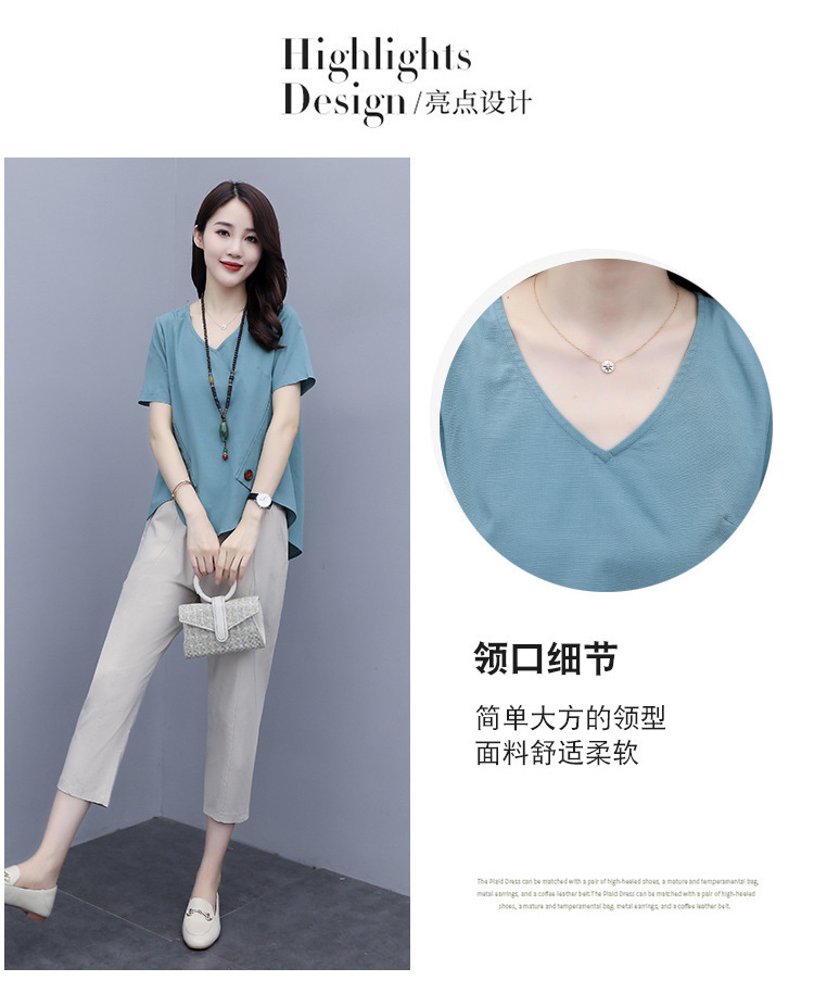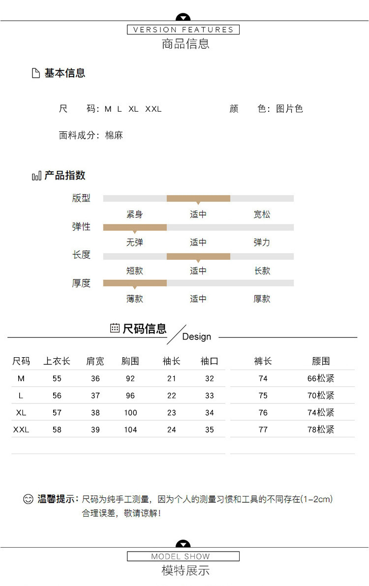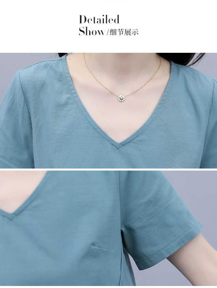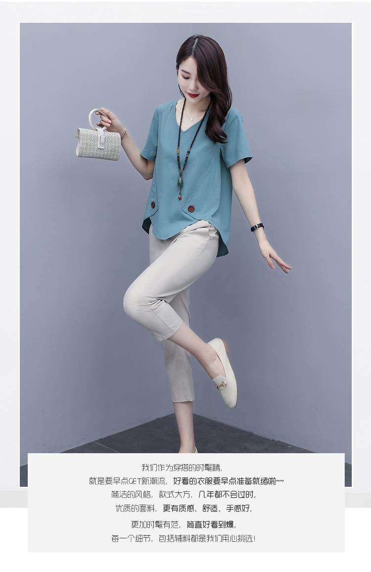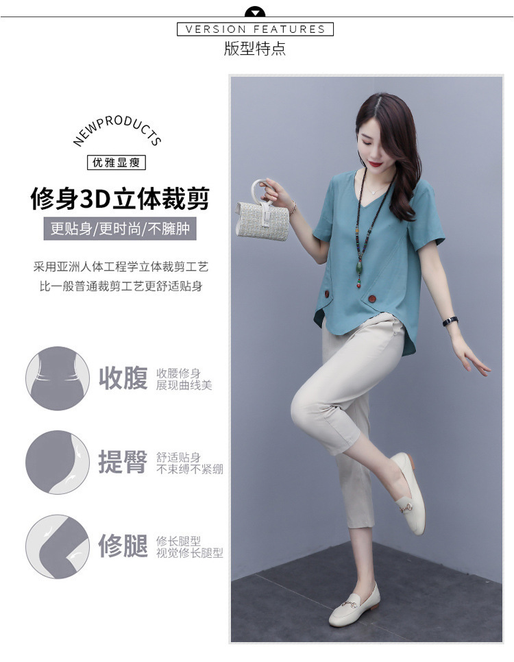 YRH-纯色棉麻套装2020气质宽松显瘦亚麻两件套