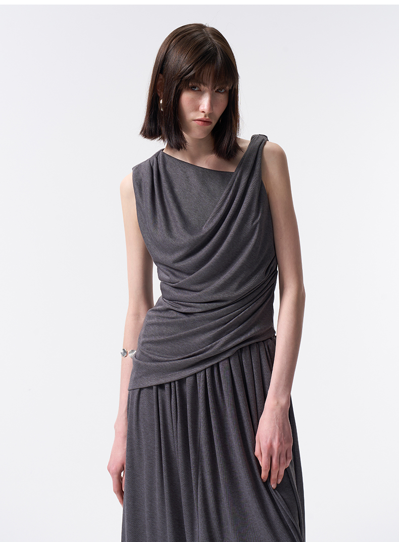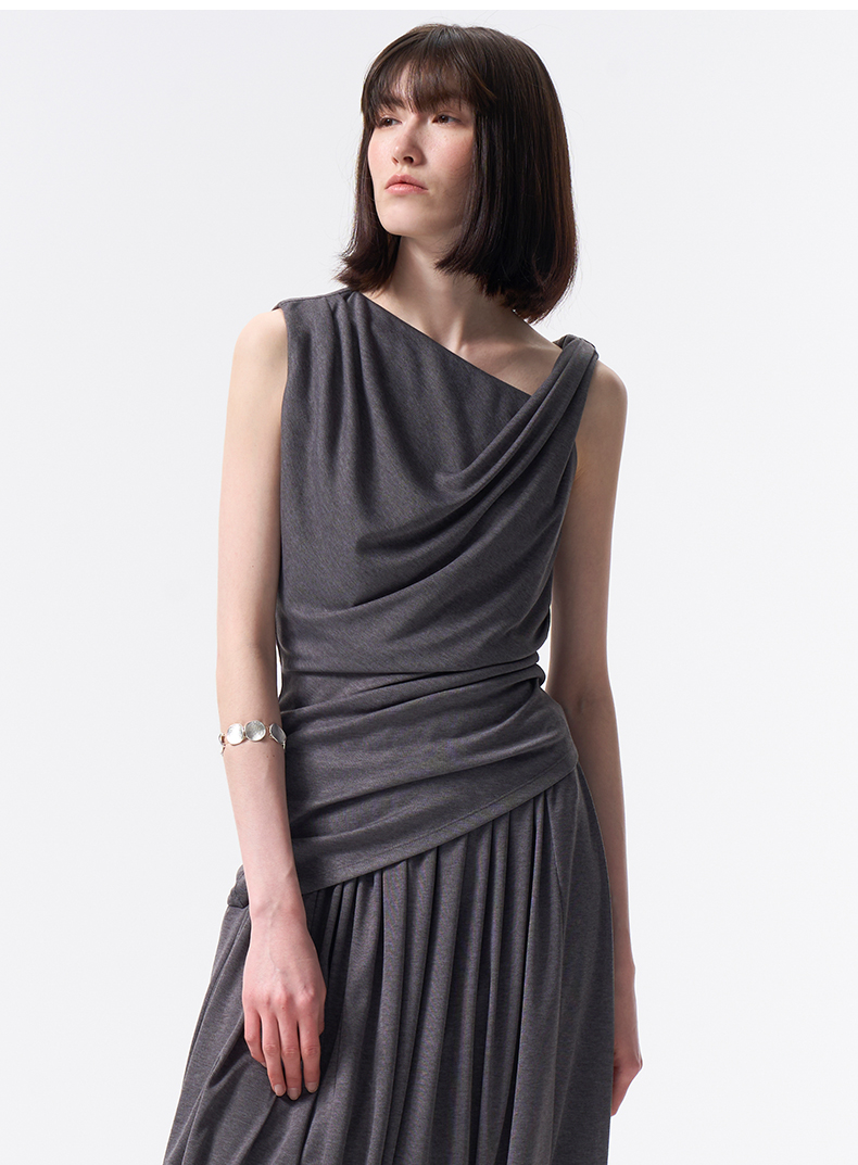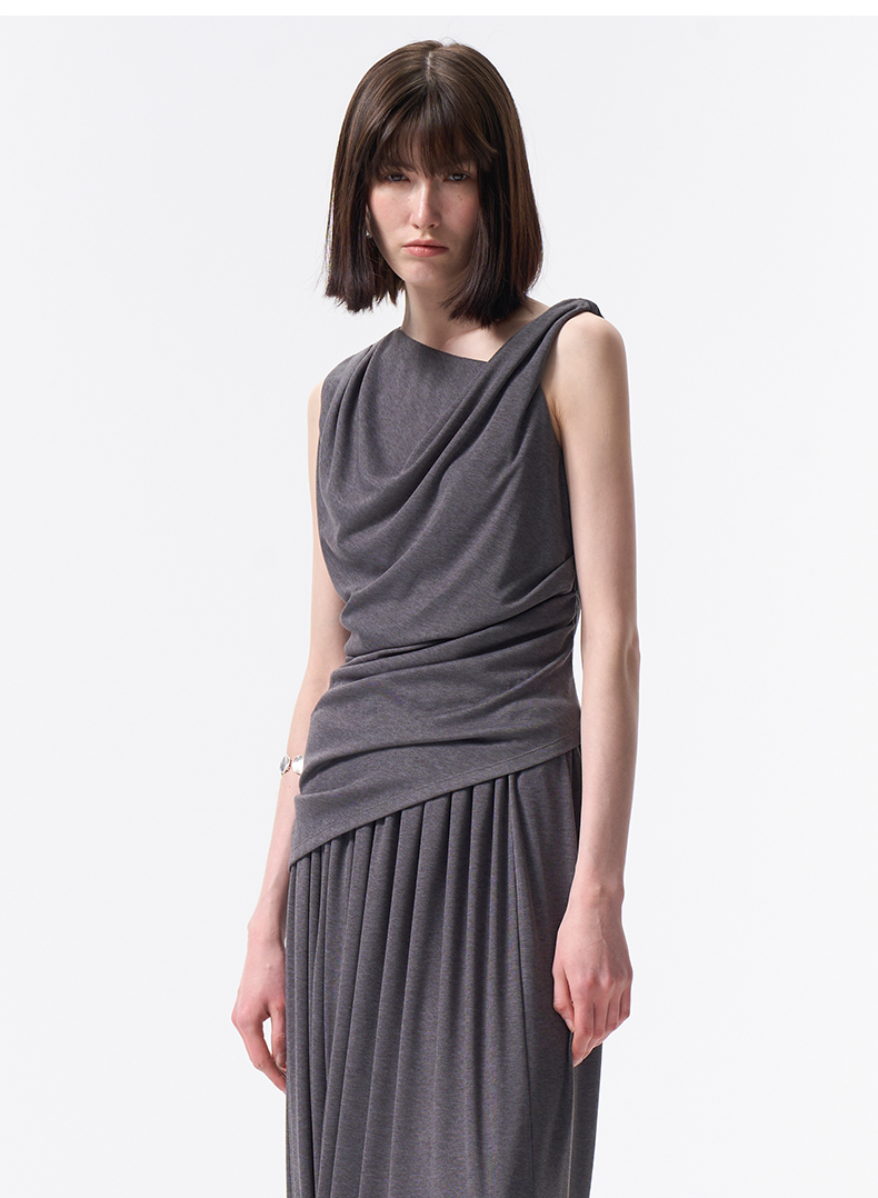 VIMAGE纬漫纪2026夏季新款小众设计气质遮肉显瘦无袖上衣V2513223