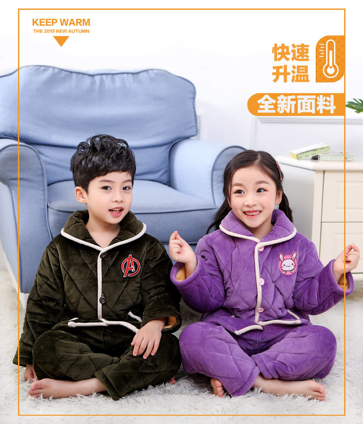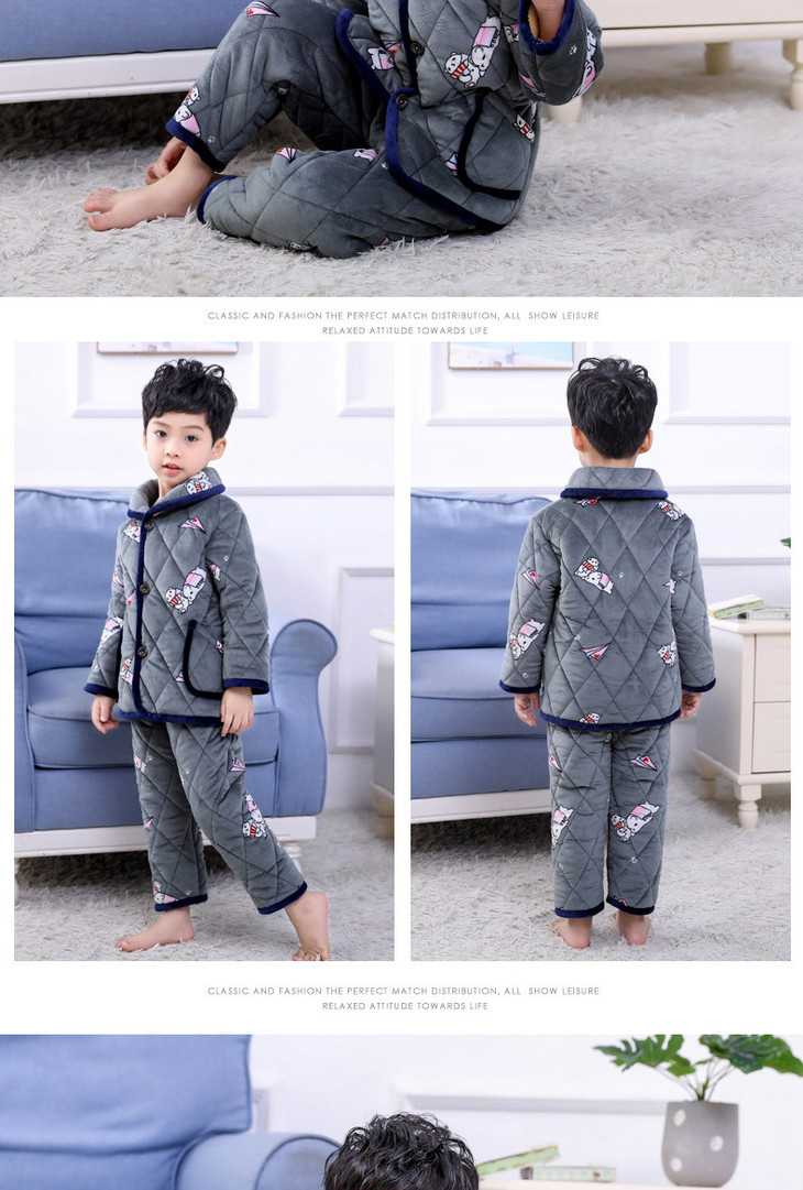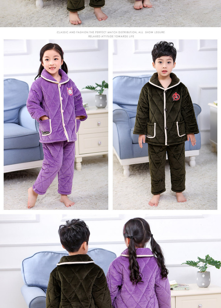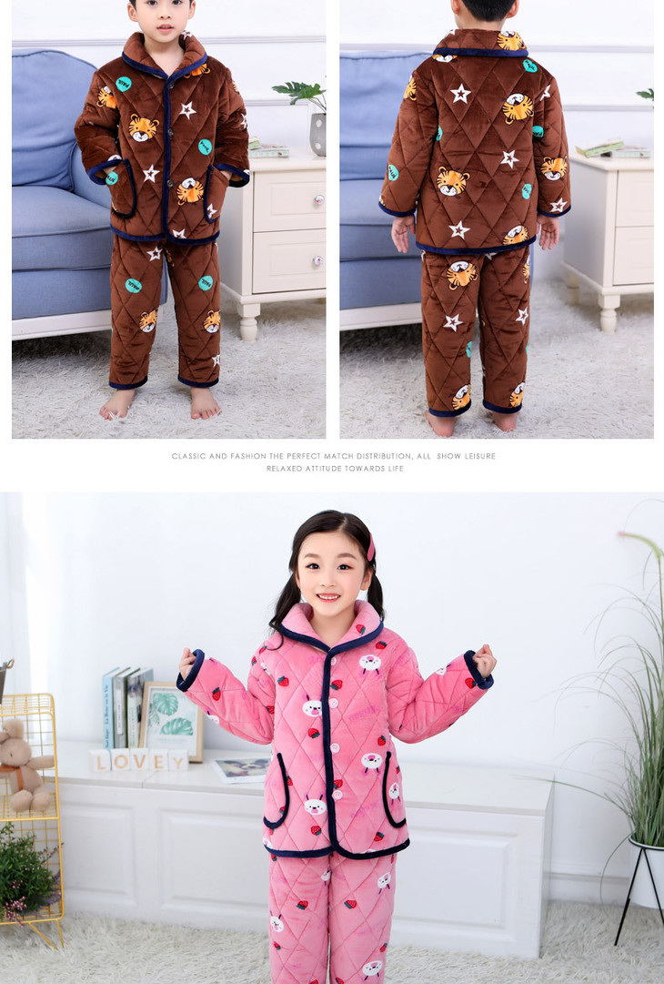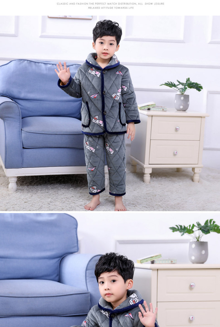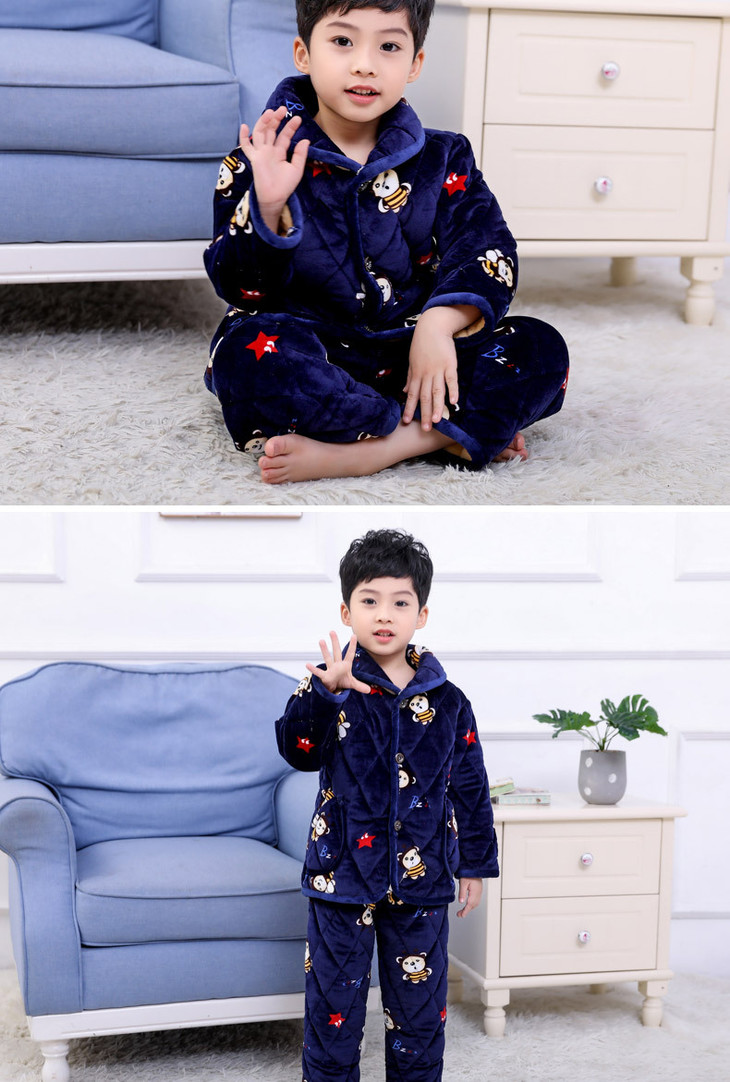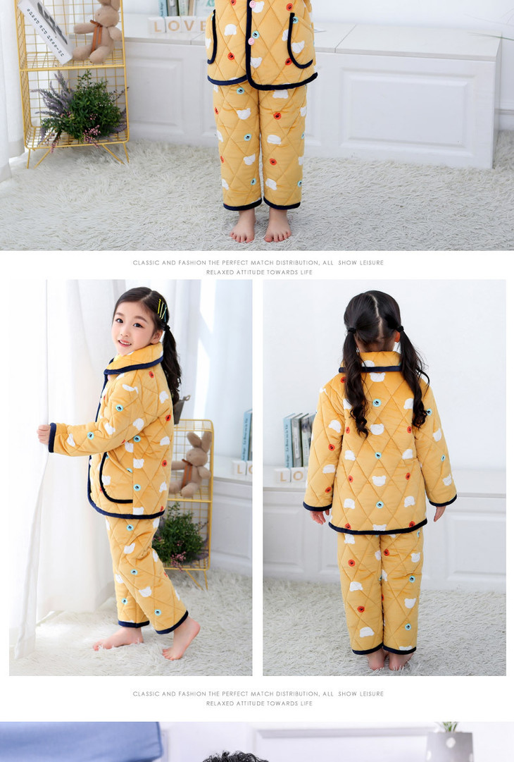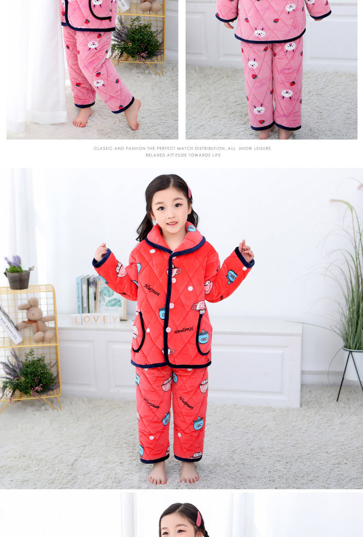 XH-J秋冬新款儿童法兰绒睡衣水晶绒三层夹棉套装