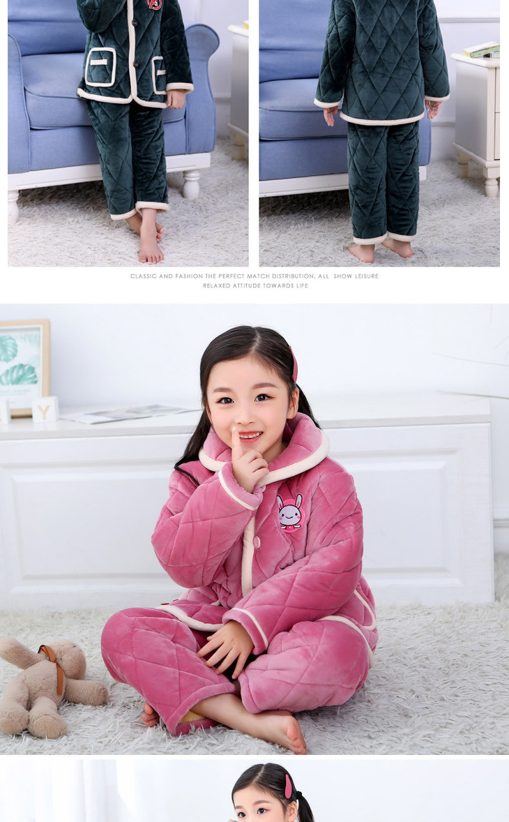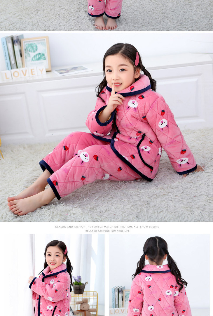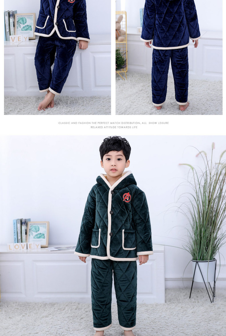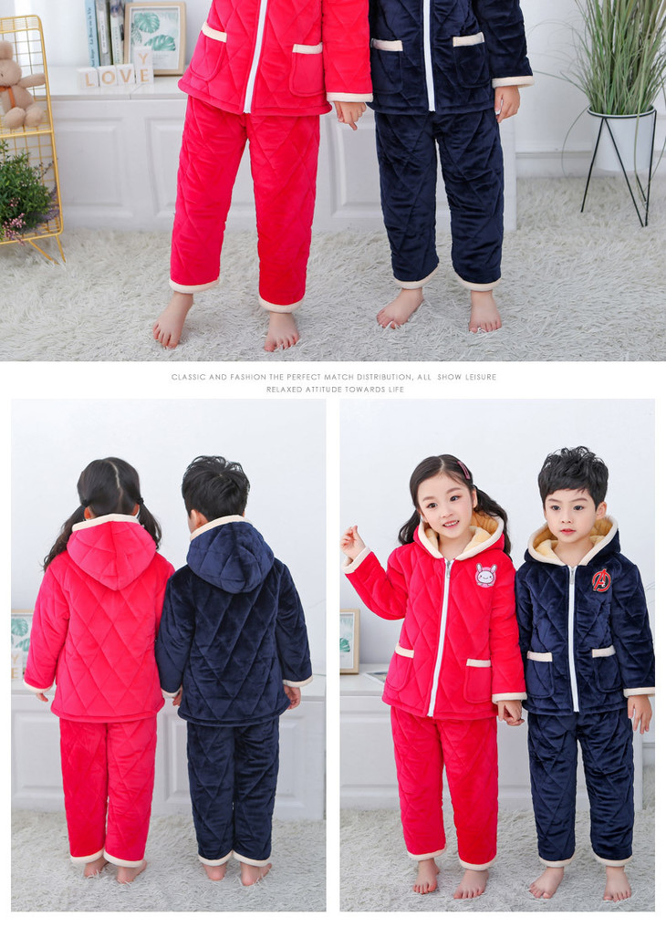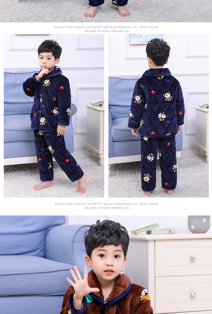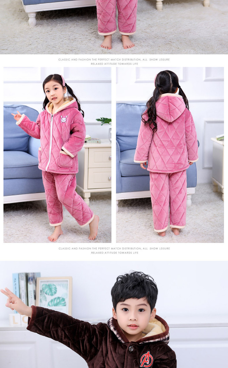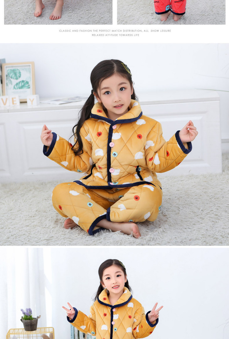 XH-J秋冬新款儿童法兰绒睡衣水晶绒三层夹棉套装