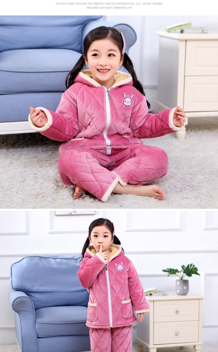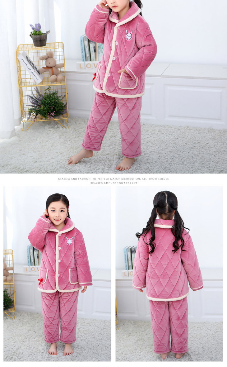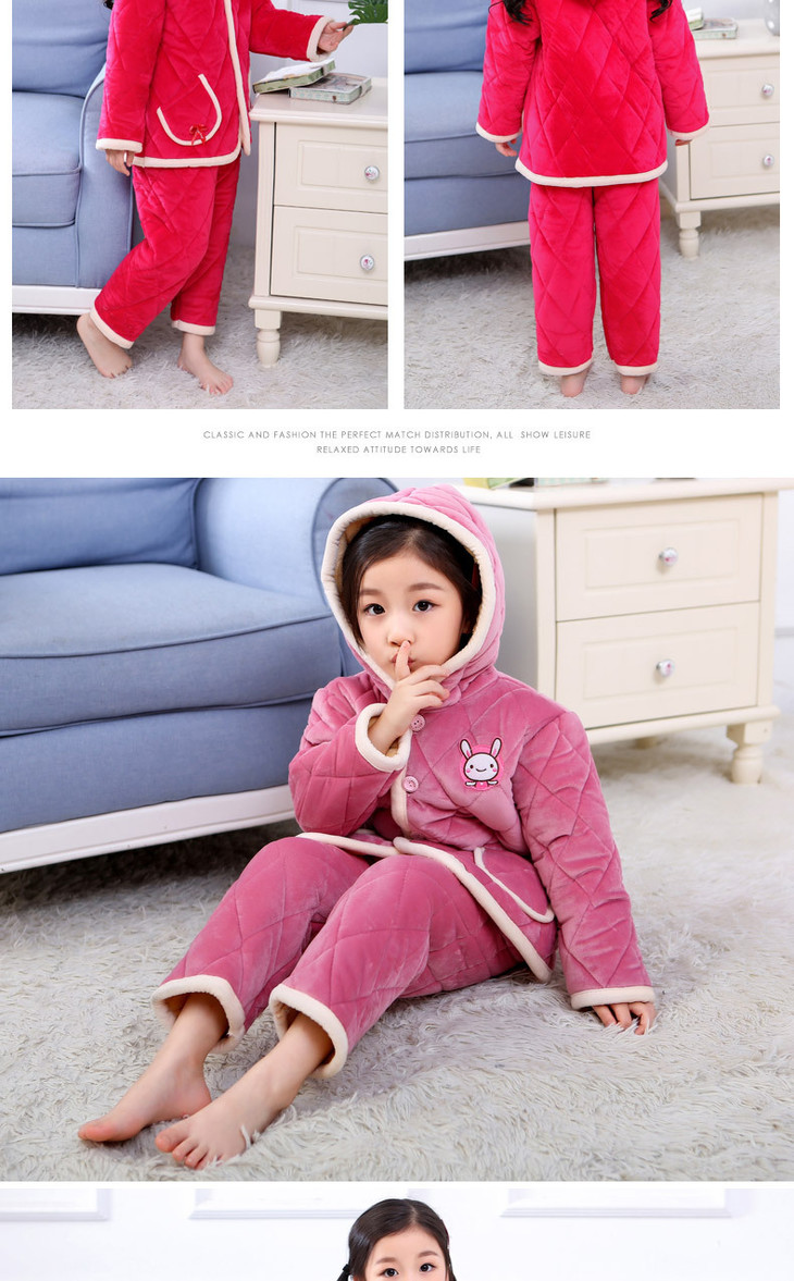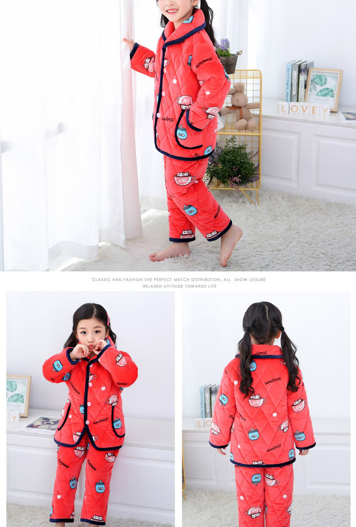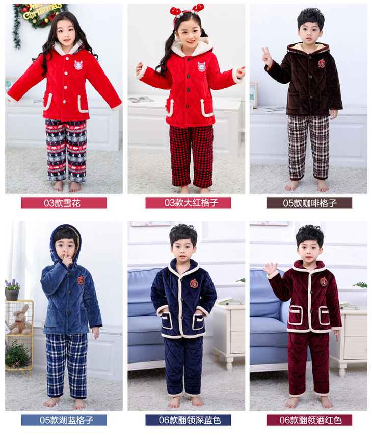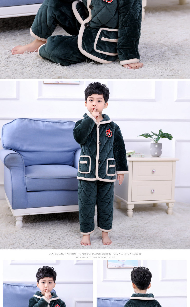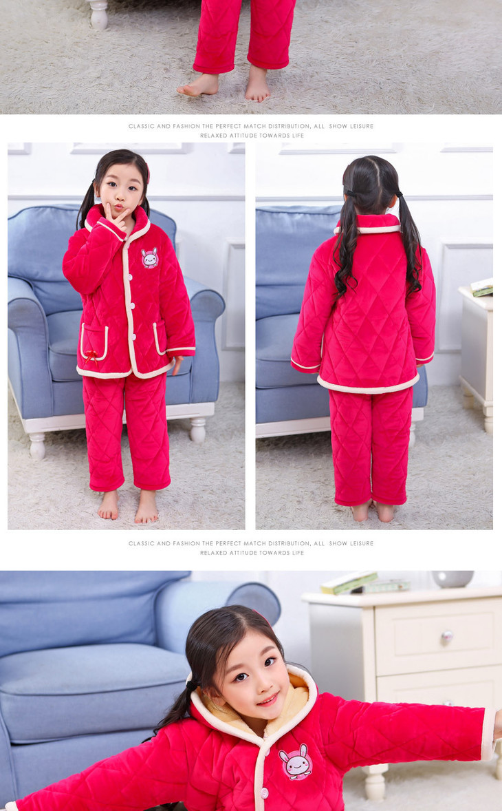 XH-J秋冬新款儿童法兰绒睡衣水晶绒三层夹棉套装
