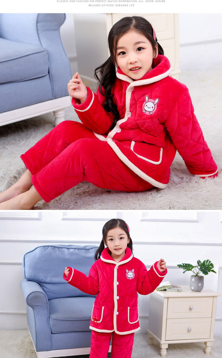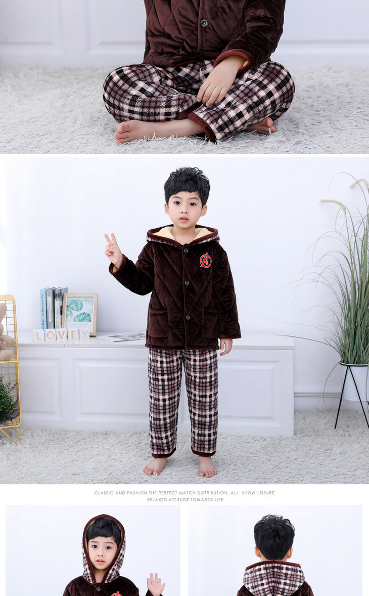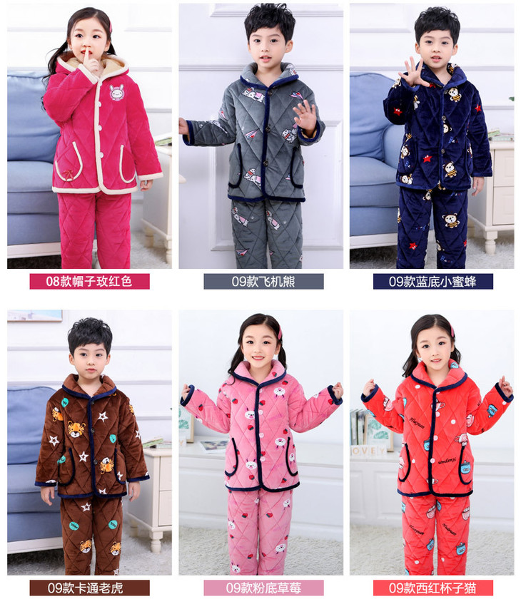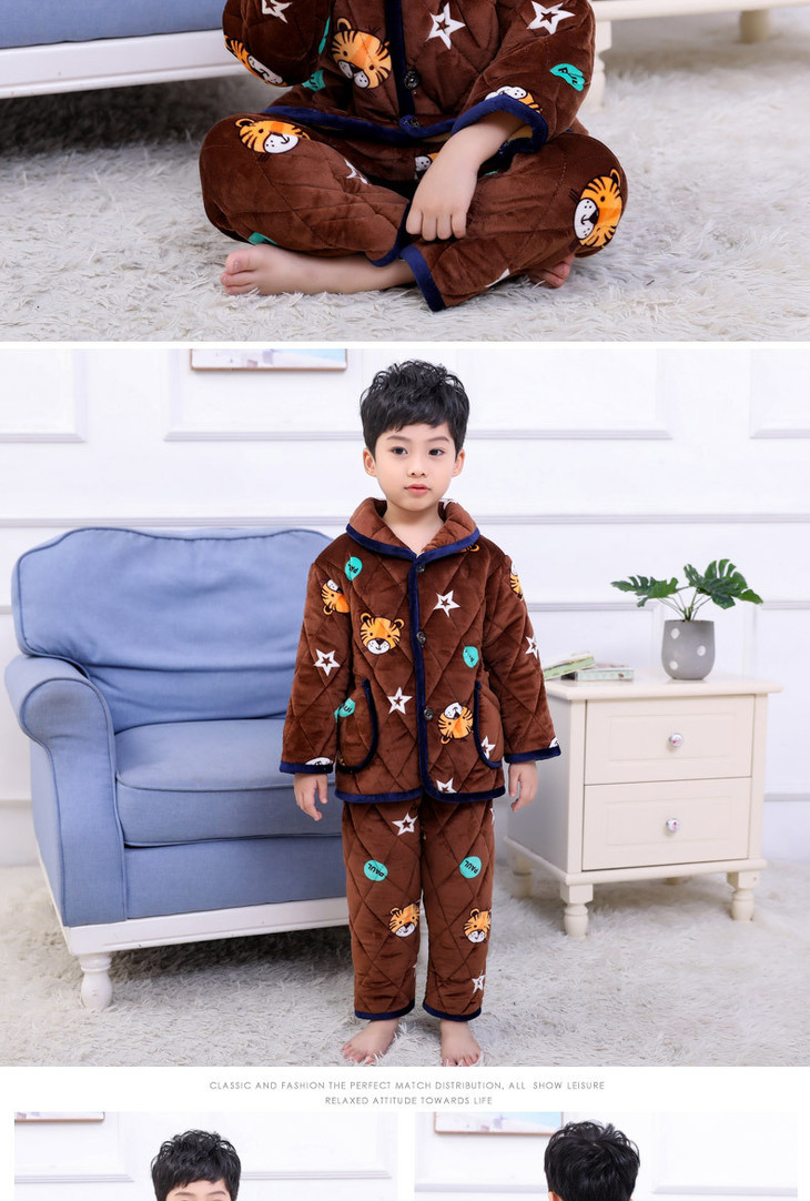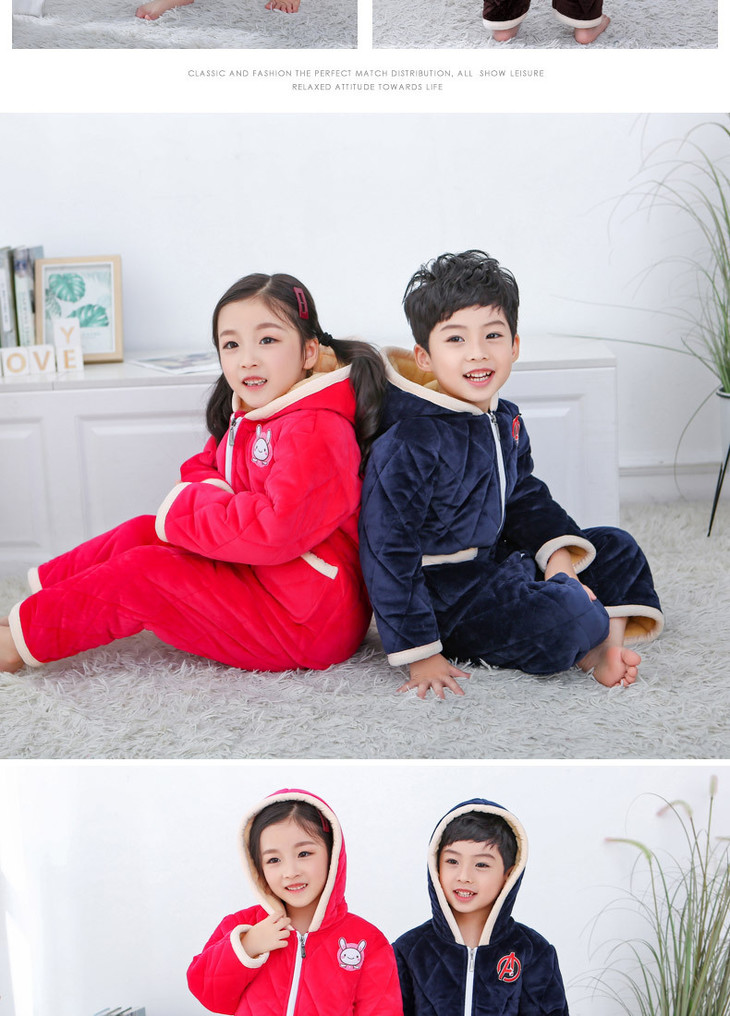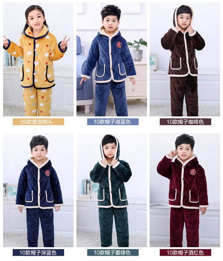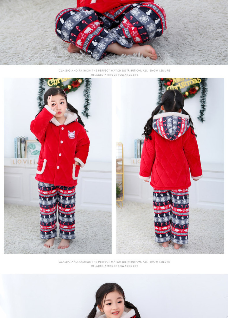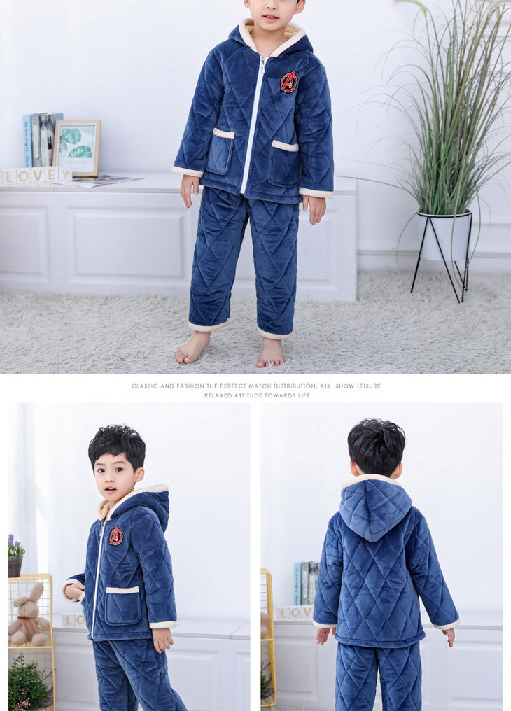 XH-J秋冬新款儿童法兰绒睡衣水晶绒三层夹棉套装