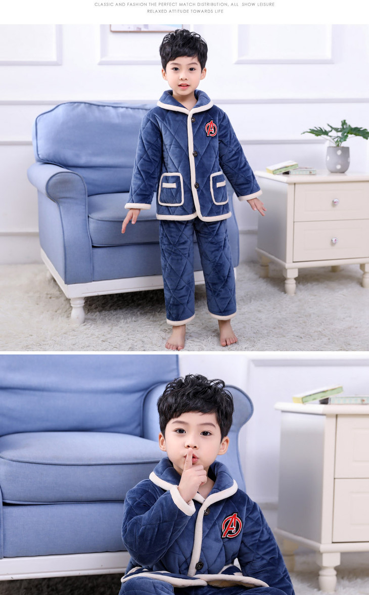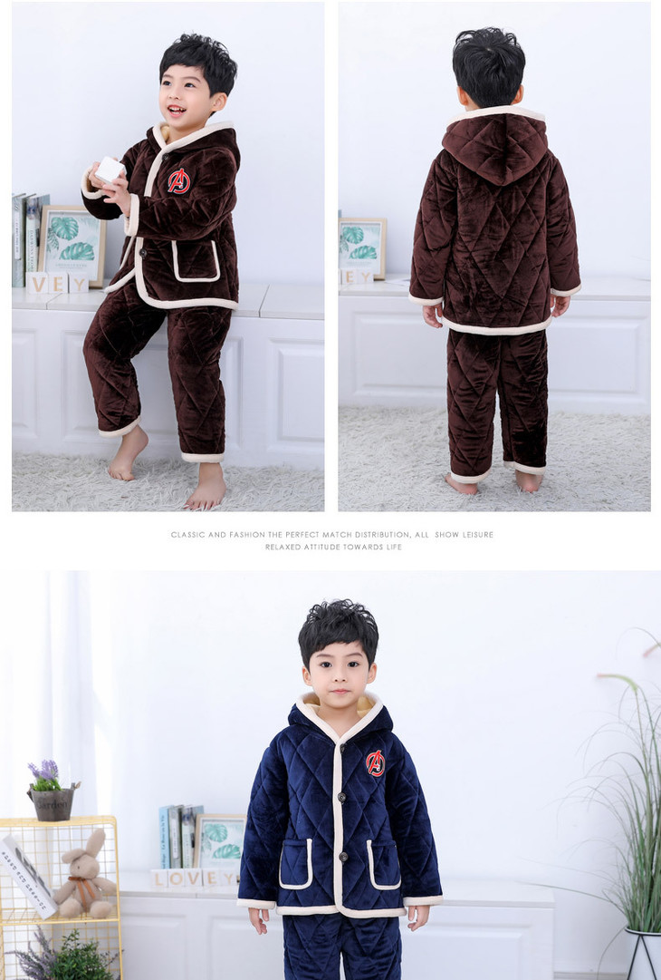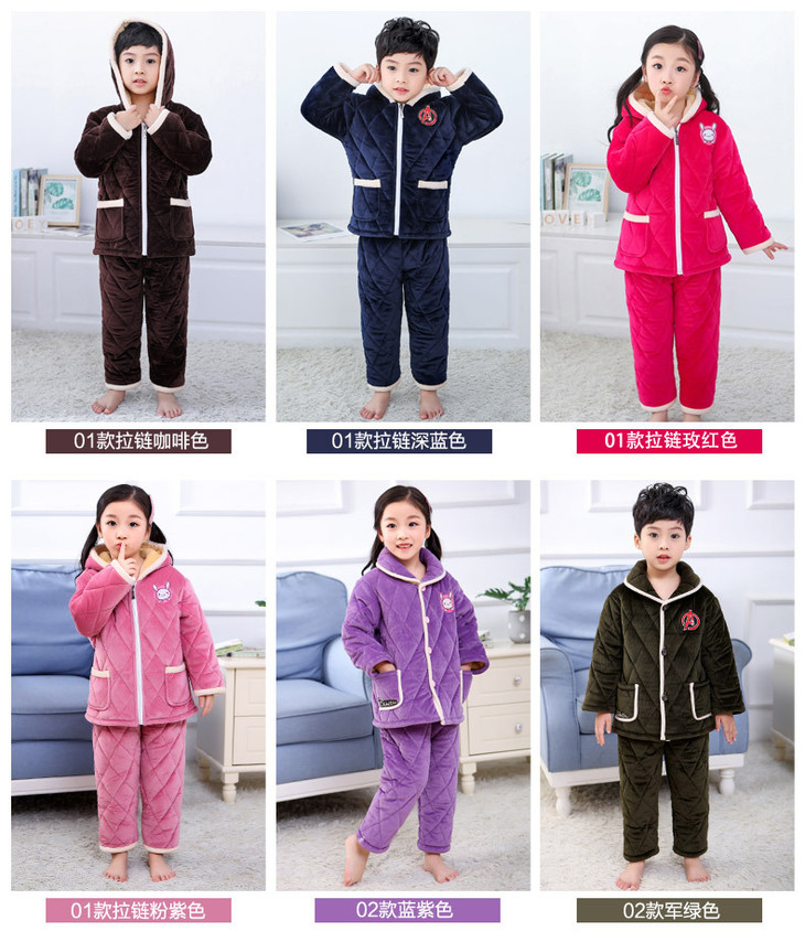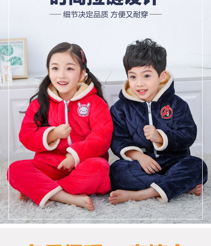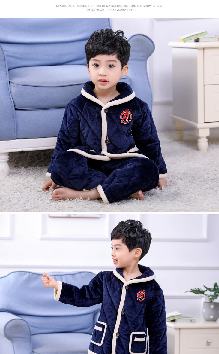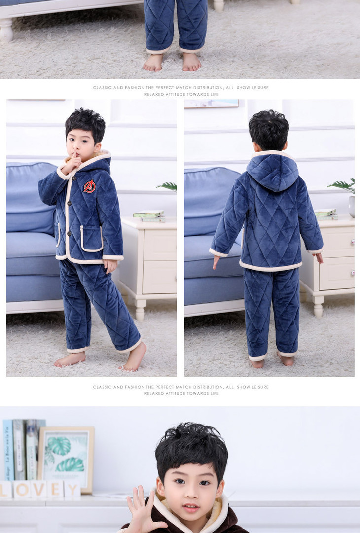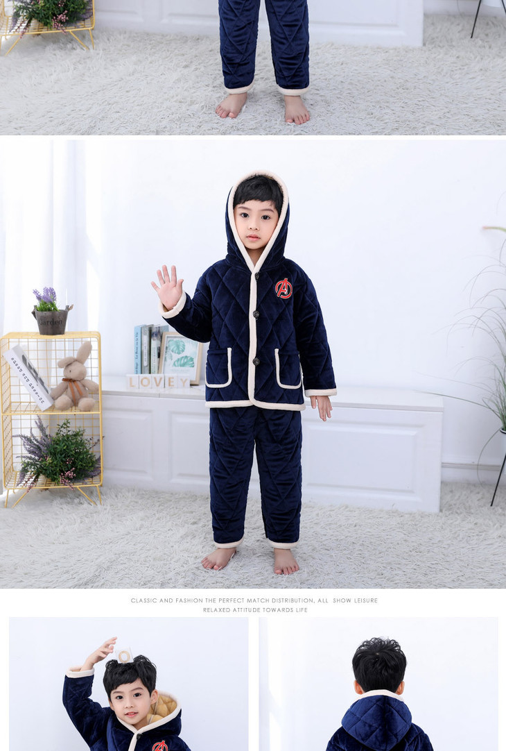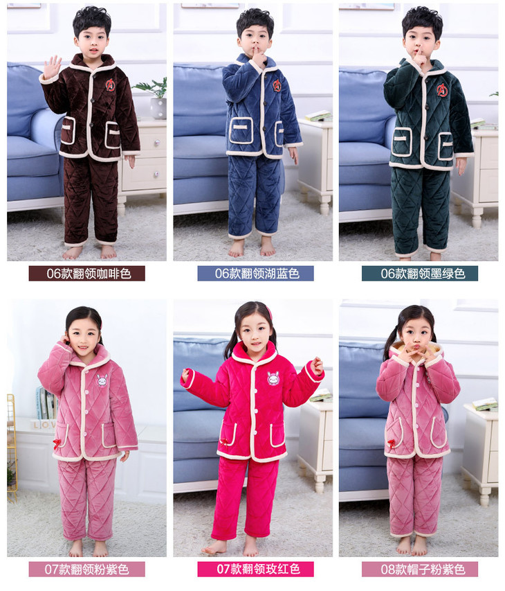 XH-J秋冬新款儿童法兰绒睡衣水晶绒三层夹棉套装