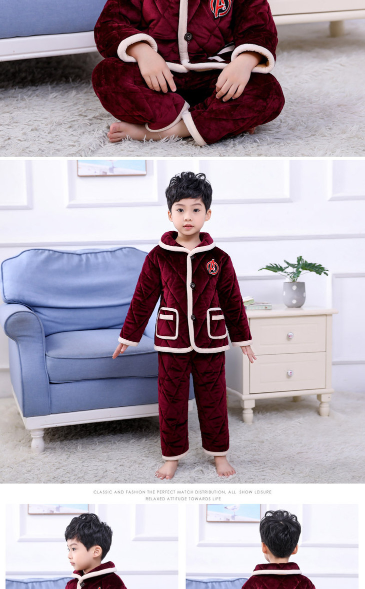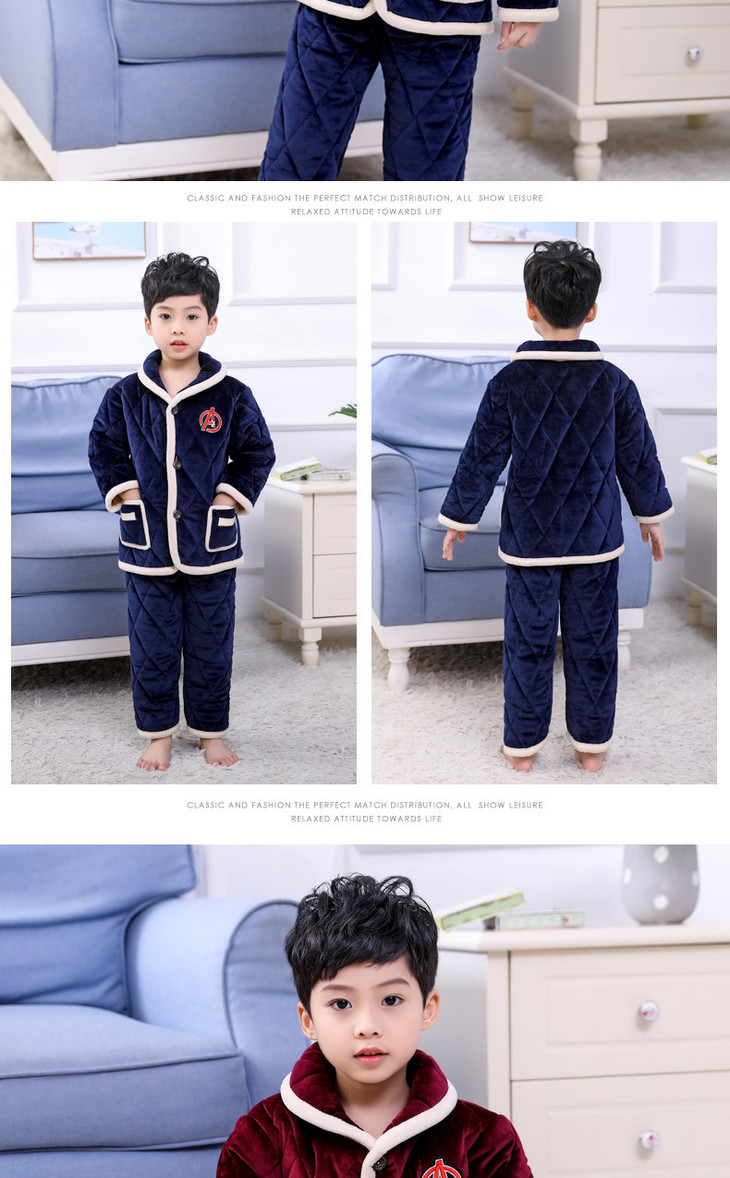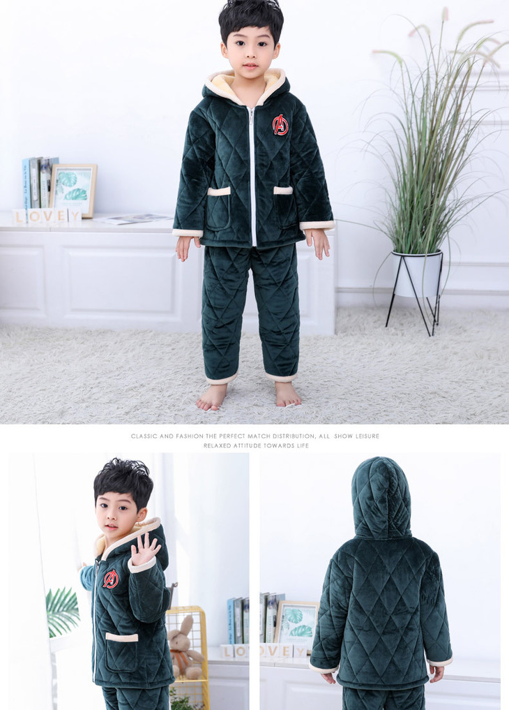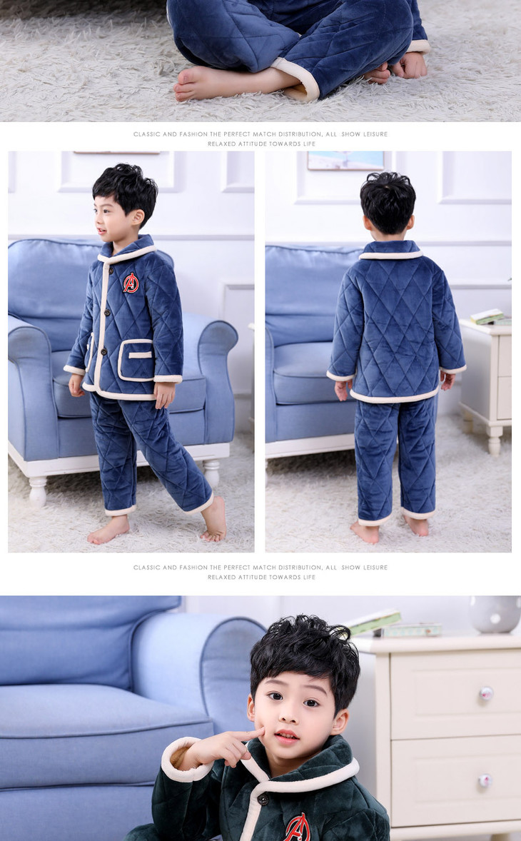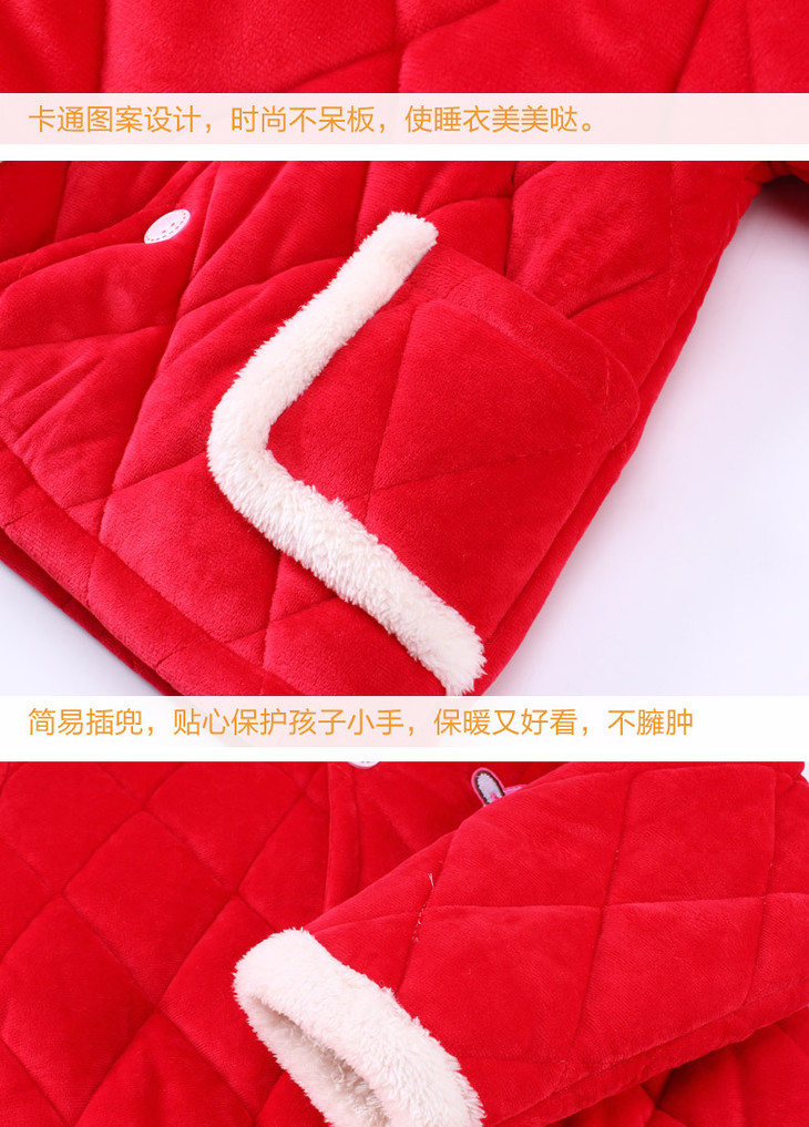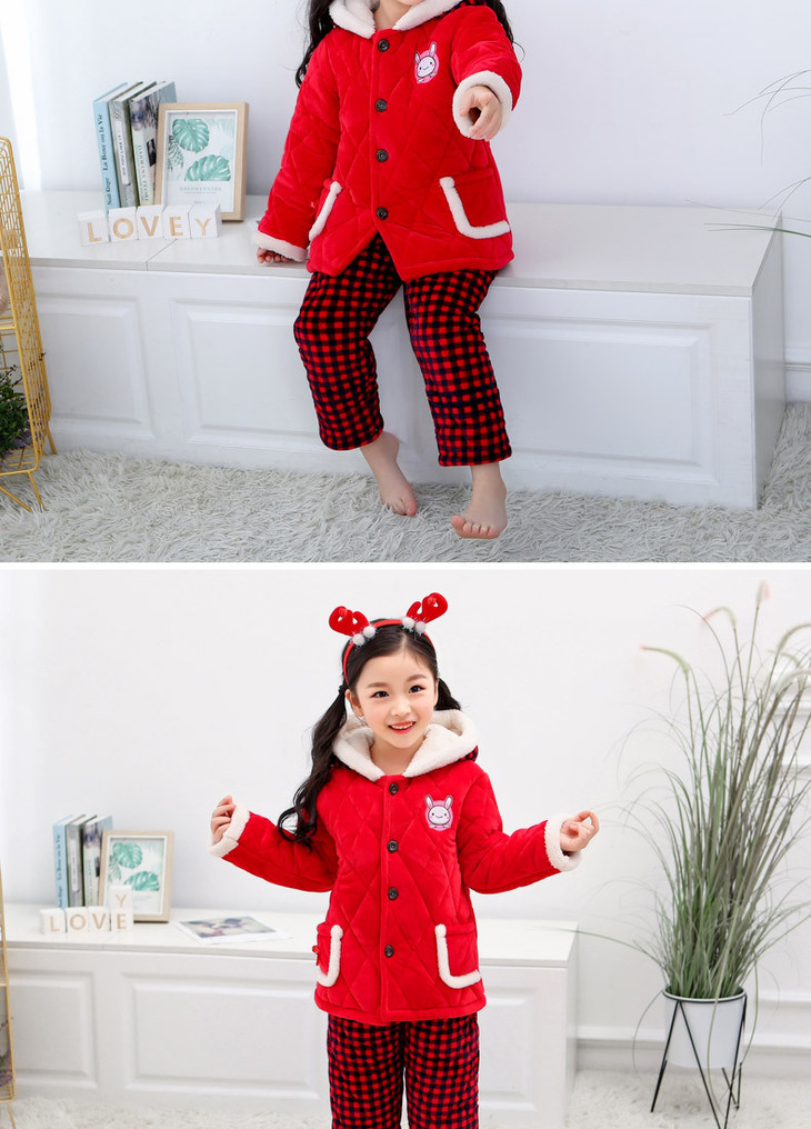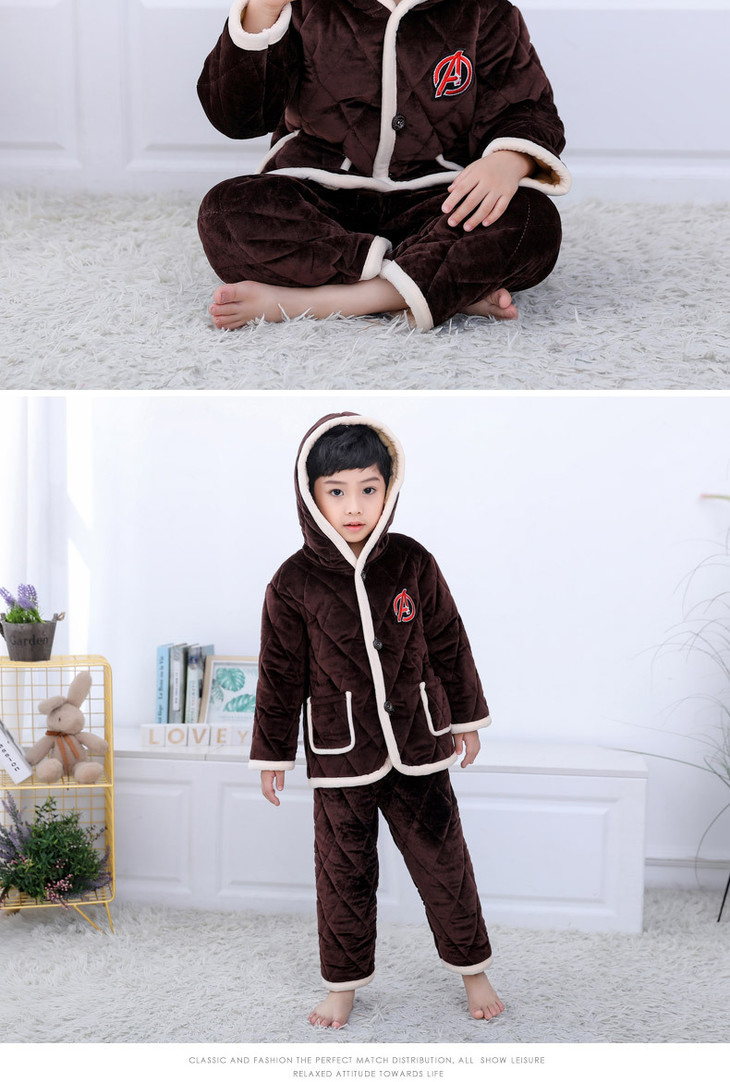 XH-J秋冬新款儿童法兰绒睡衣水晶绒三层夹棉套装