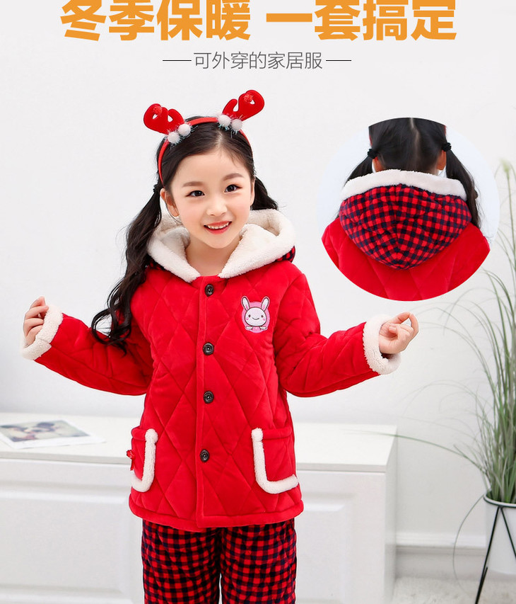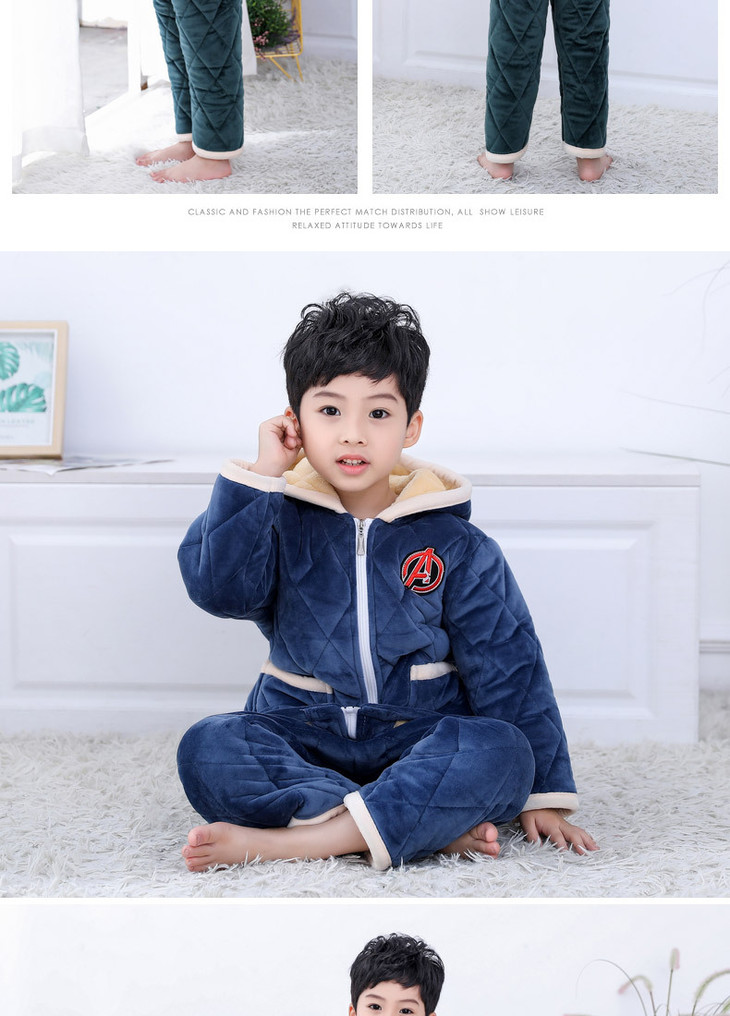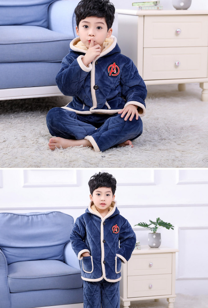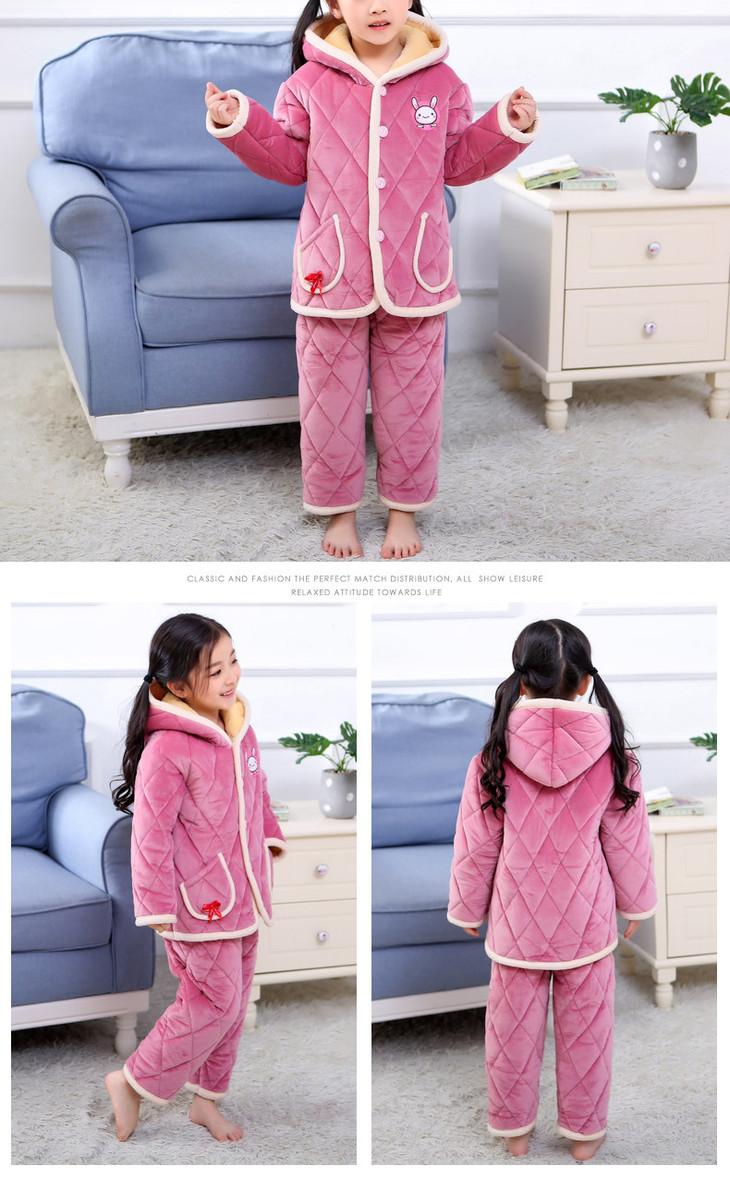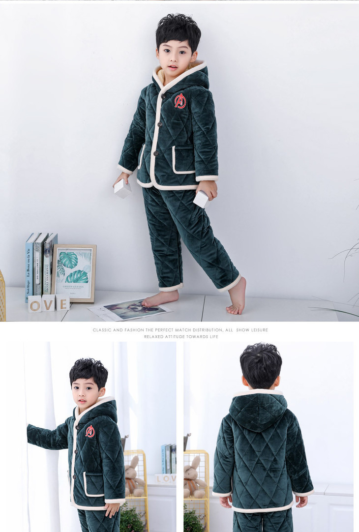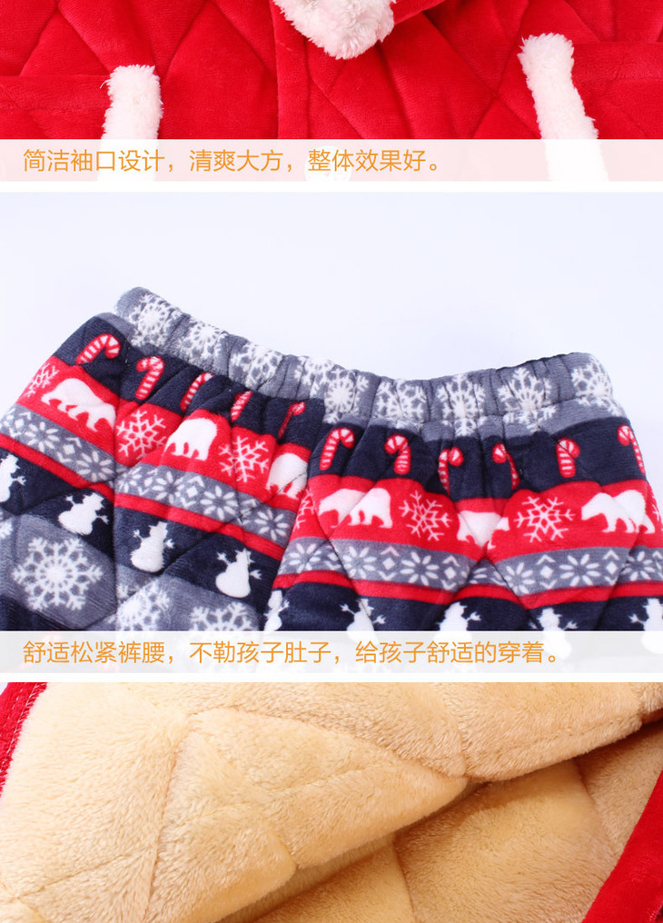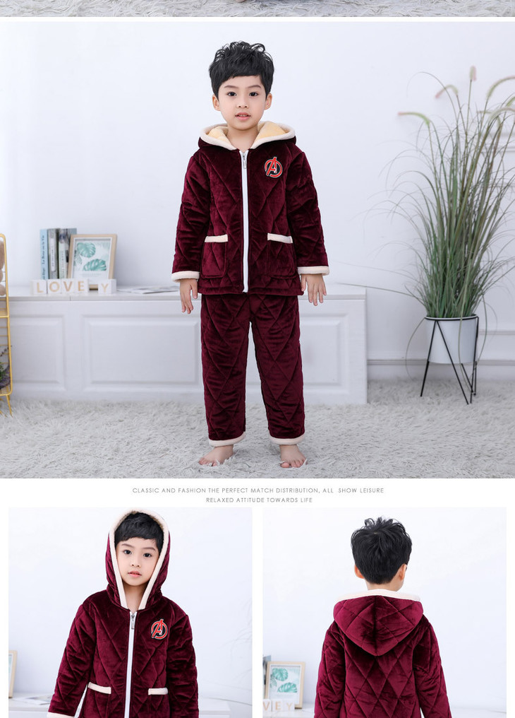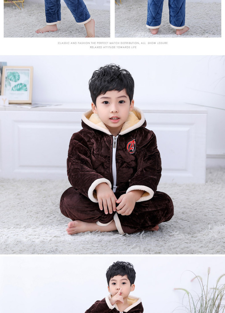 XH-J秋冬新款儿童法兰绒睡衣水晶绒三层夹棉套装