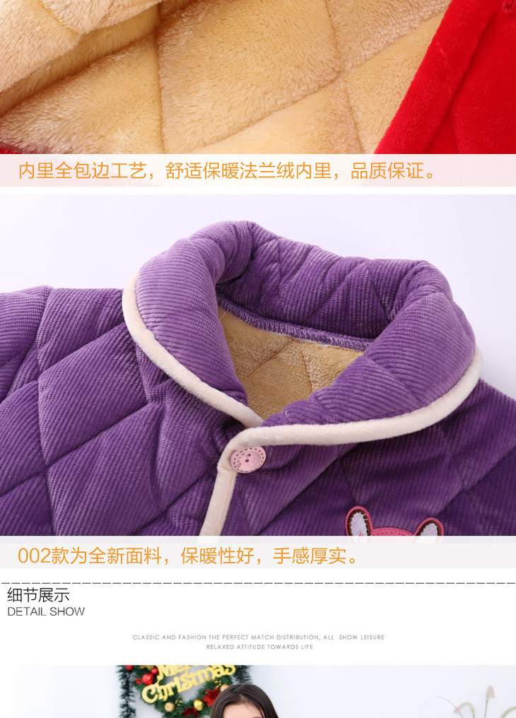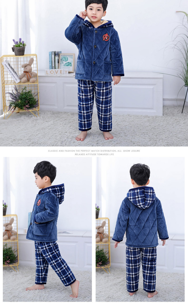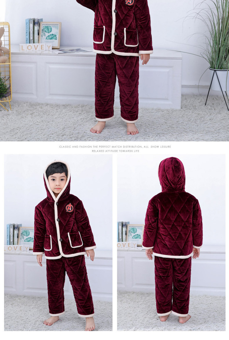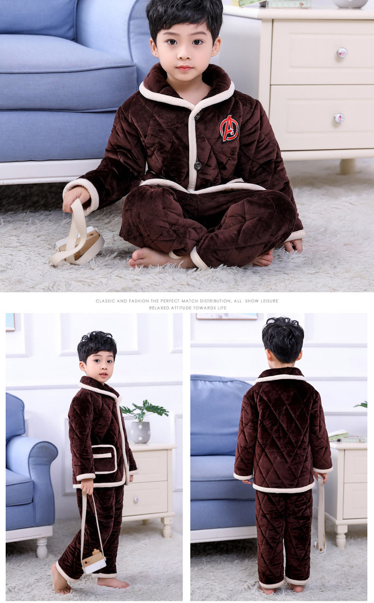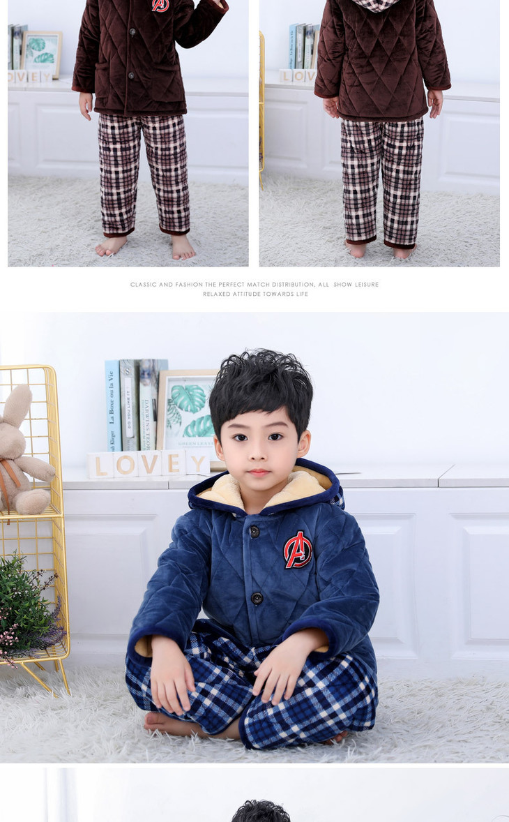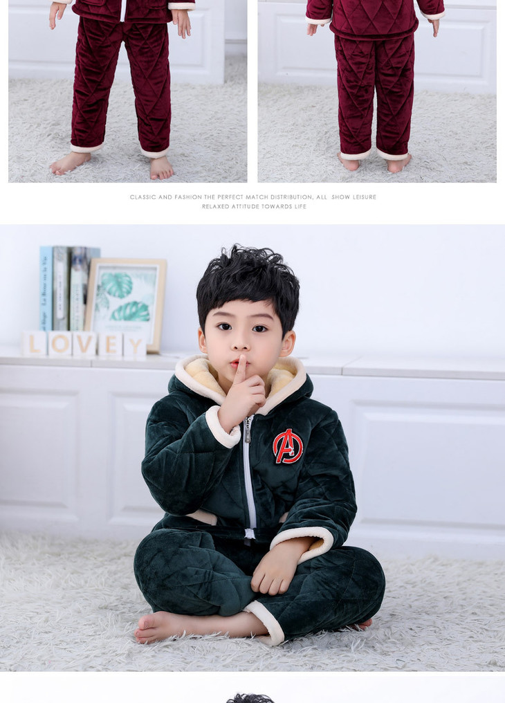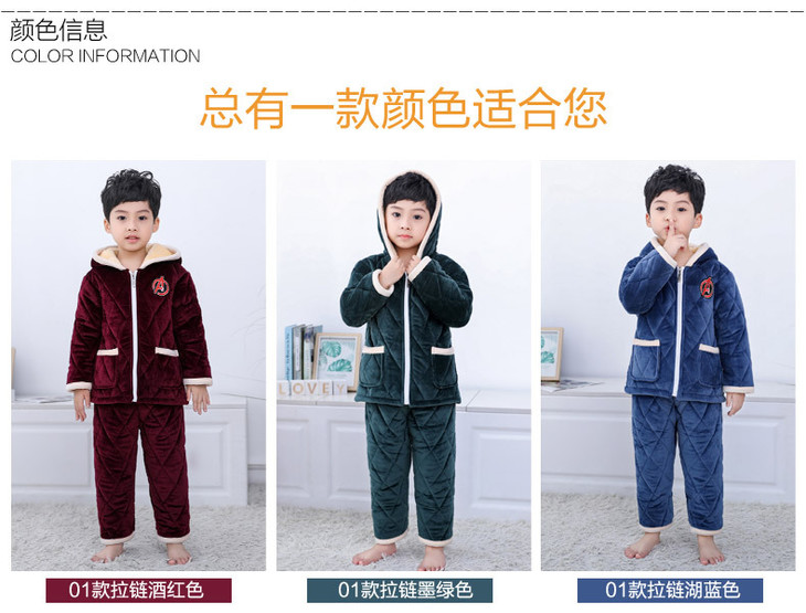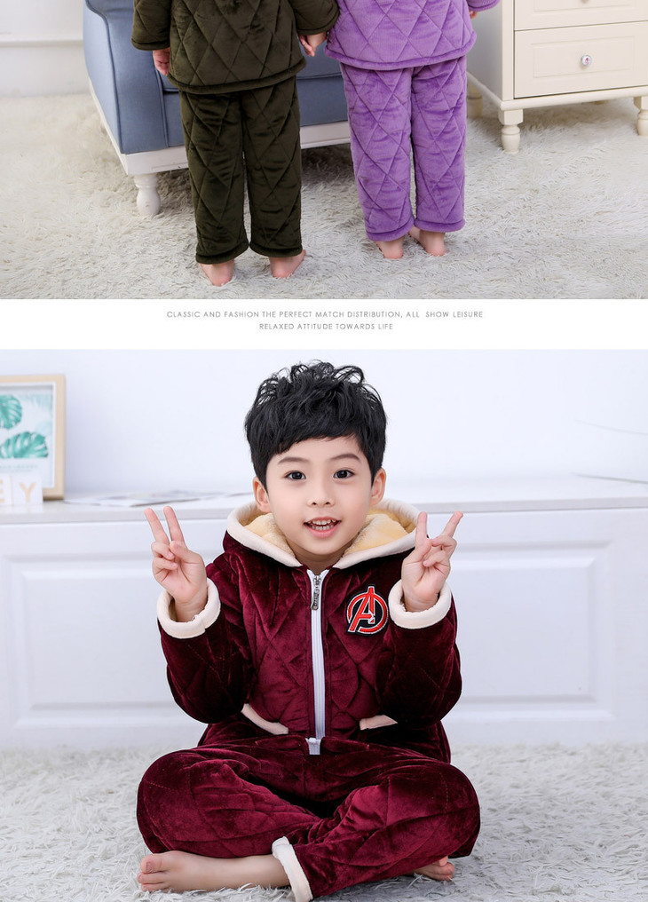 XH-J秋冬新款儿童法兰绒睡衣水晶绒三层夹棉套装