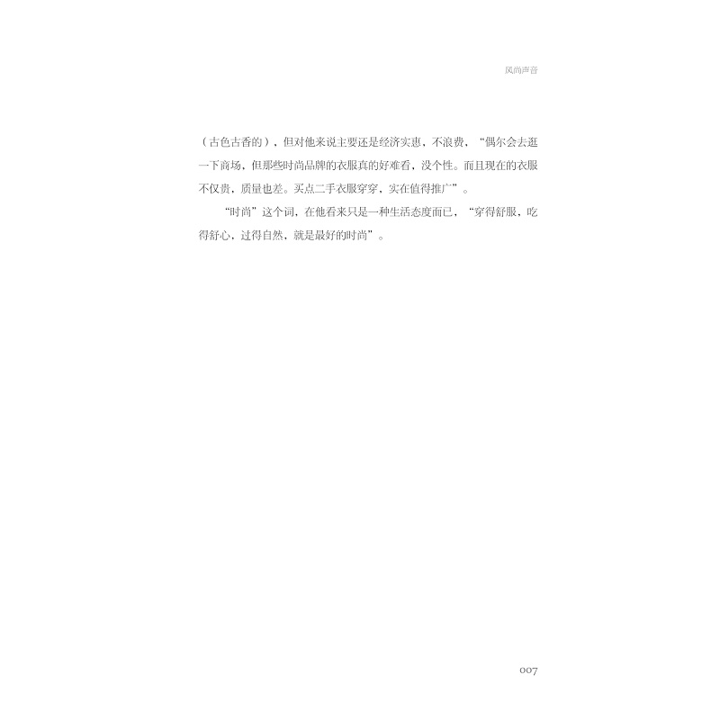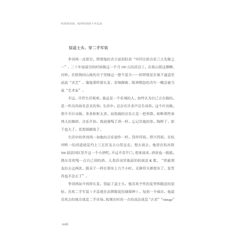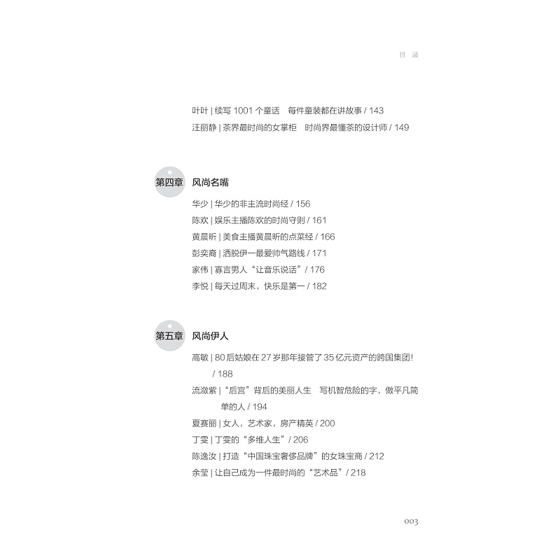 本书作者曾任时尚版主编、首席记者,有丰富的一线采访经历。本书稿将作者做媒体记者时策划的“封面人物”栏目中的故事集结成书,栏目采访了各行各业有突出成绩的领军人物,他们是隐身于各行各业、拥有某种时尚生活方式和风尚智慧的意见领袖,书稿分为“新一代逐梦者”,“城市漫游者”,“怪咖艺术新势力”等内容,阐述了他们的人生理念、工作目标,人生信条等,展示了新时代各行各业优秀人物的精神风貌。全书主旨在于让读者在表面华丽的文章中获得一些触动心灵的东西,使本书成为一本让人向往的精神读本。