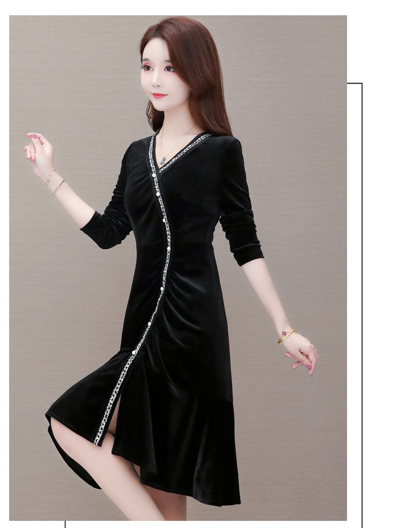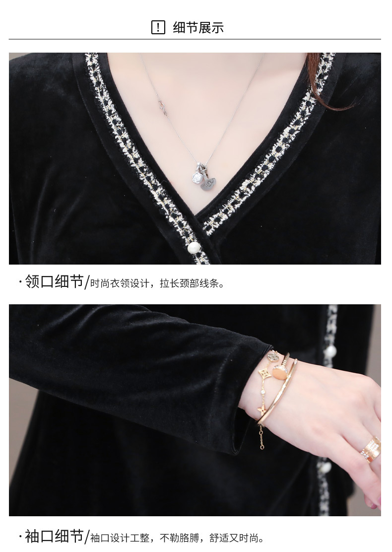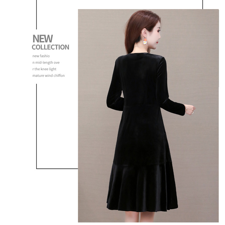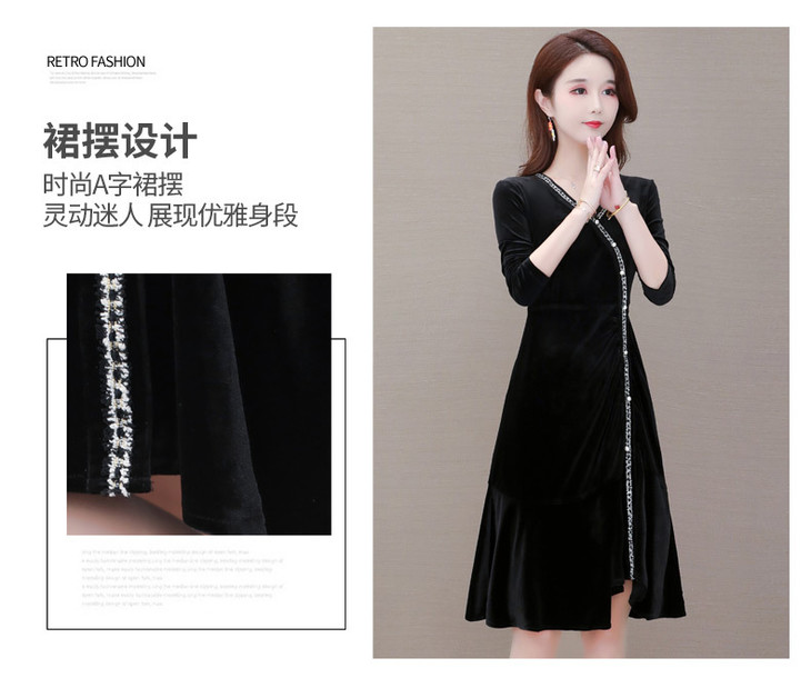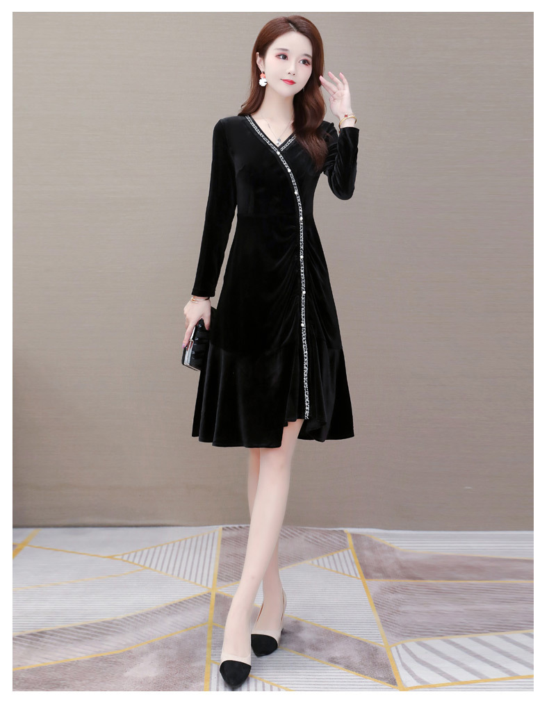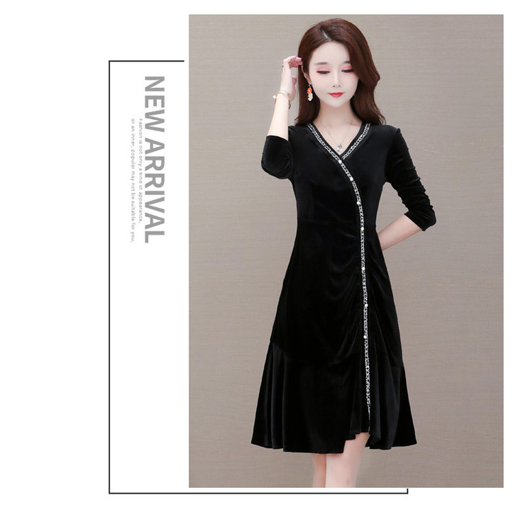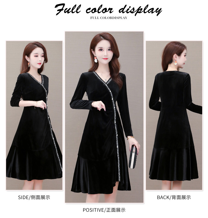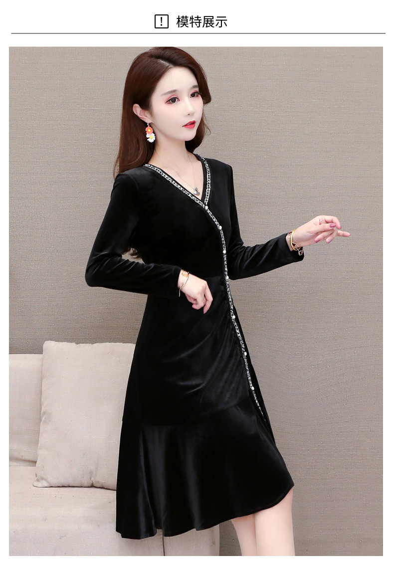 YWE-MY-M198修身显瘦V领长袖中长款金丝绒连衣裙【优】