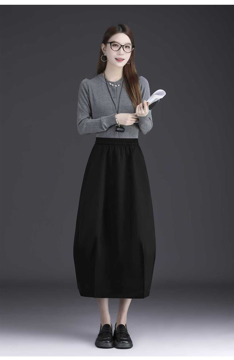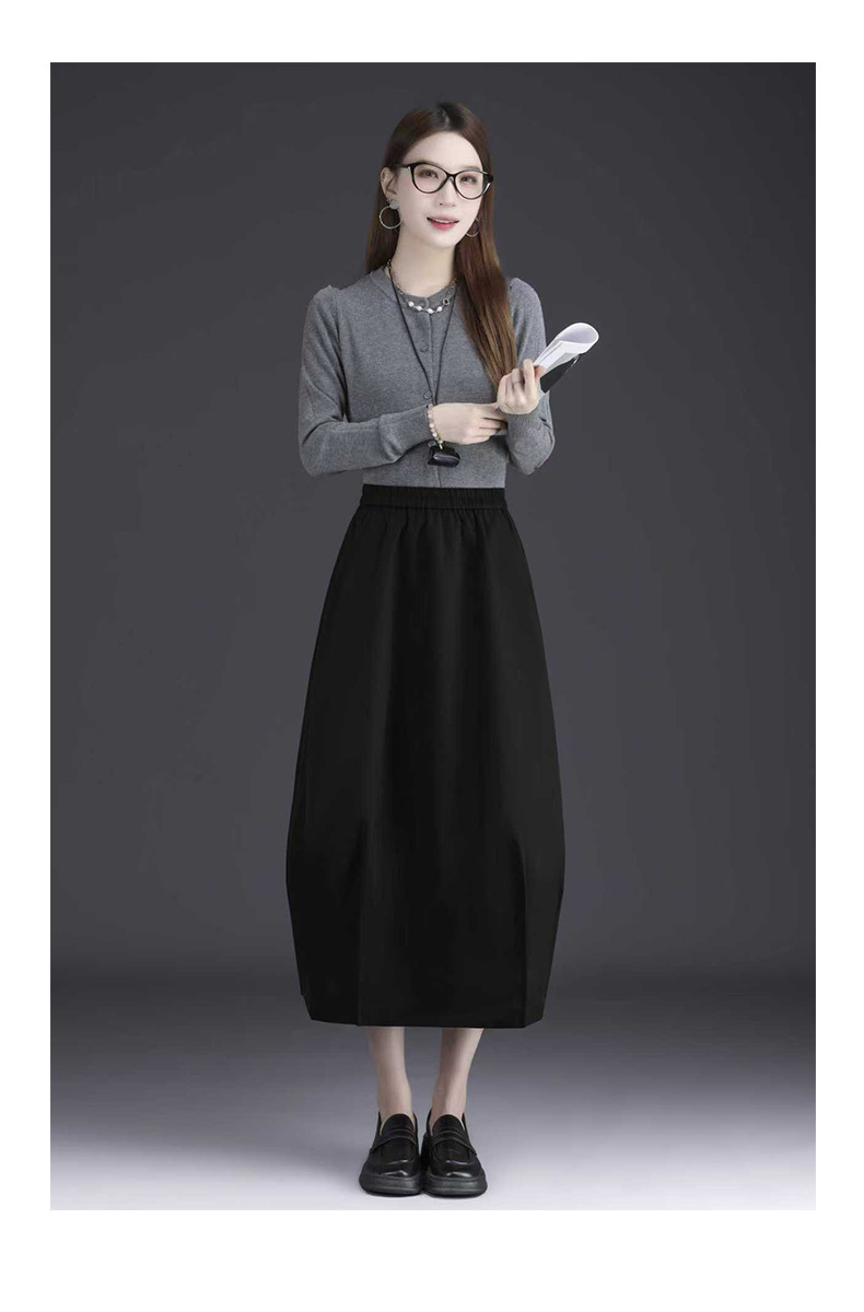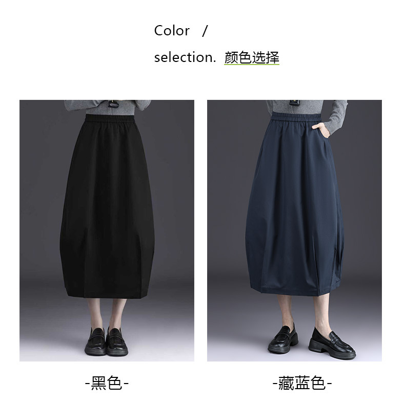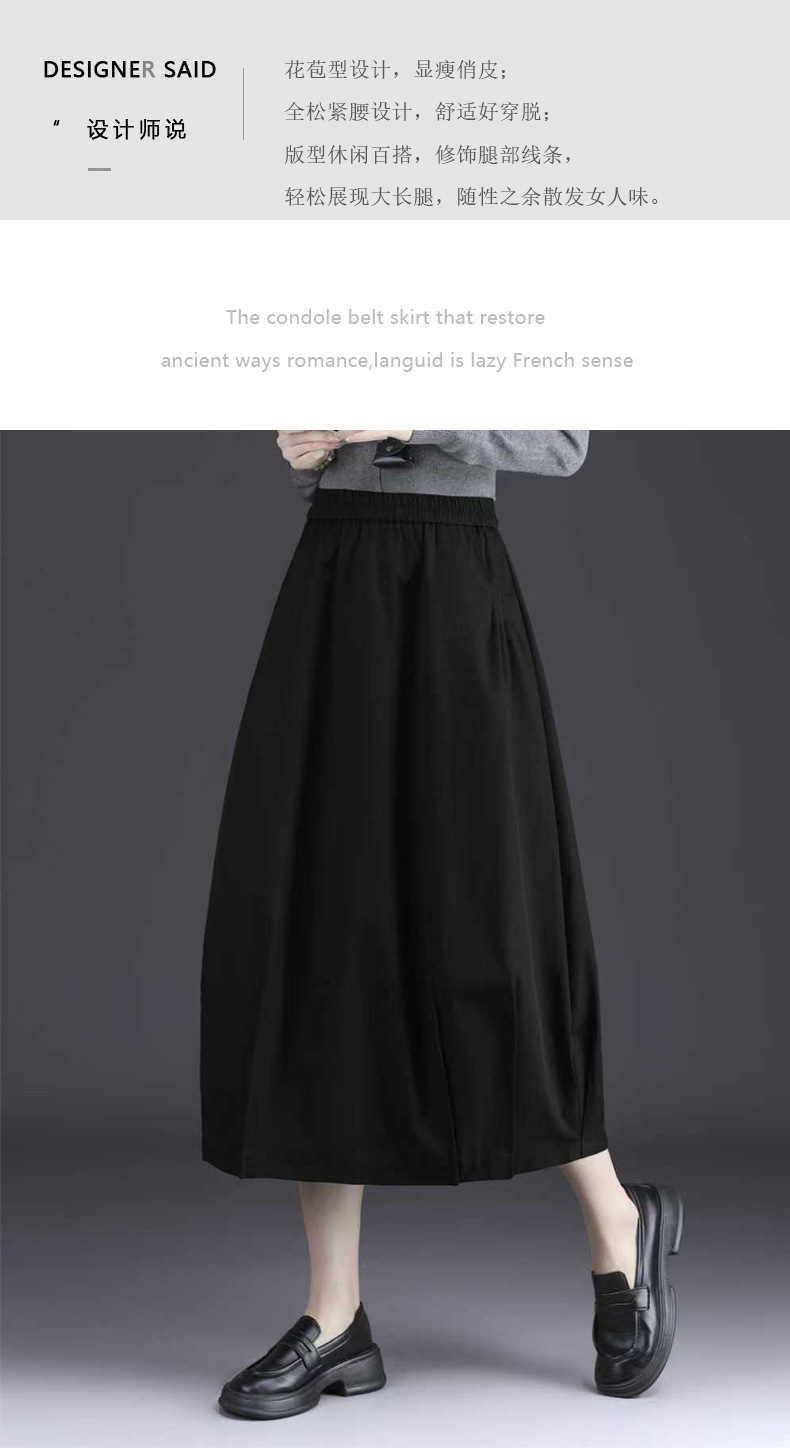 QYM 6991-Y松紧腰花苞裙半身裙百褶高腰洋气灯笼裙