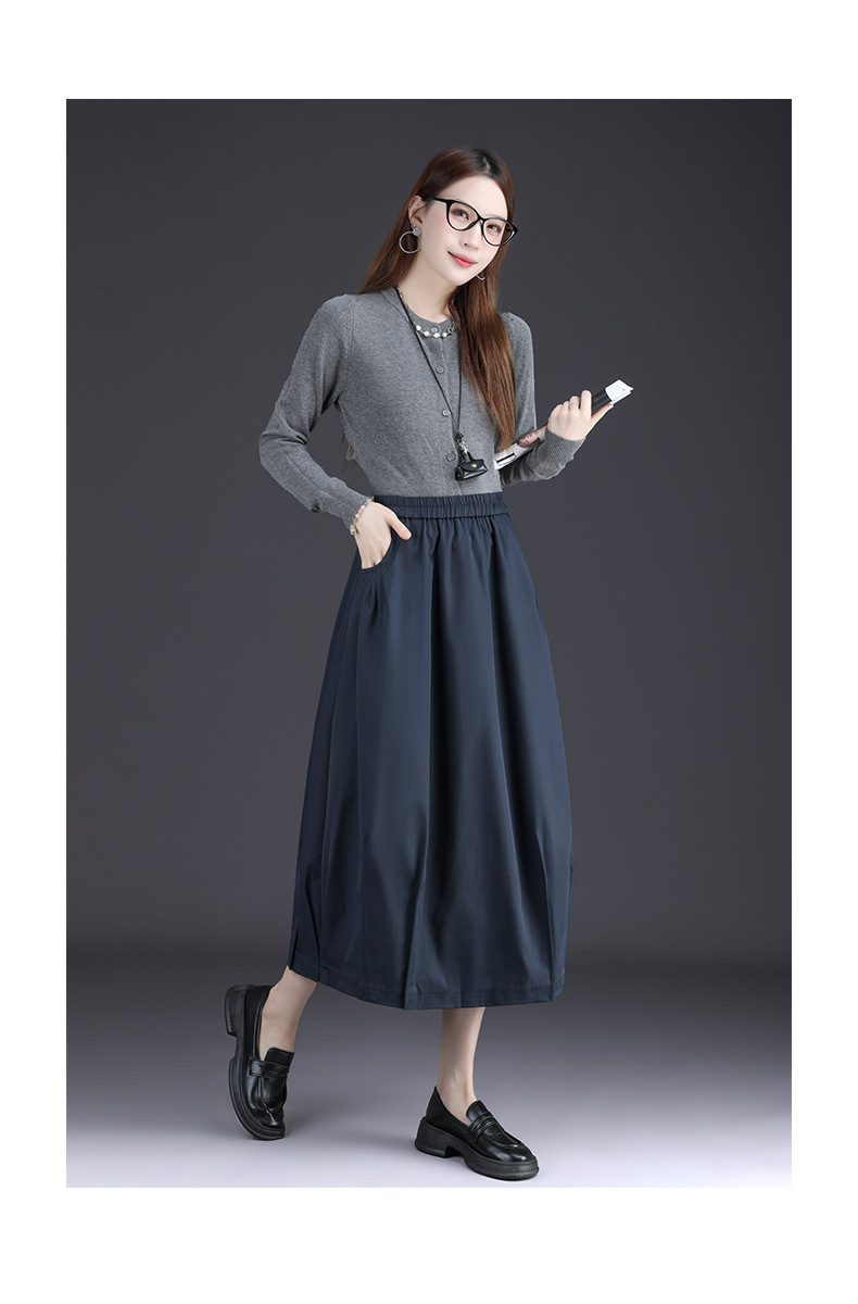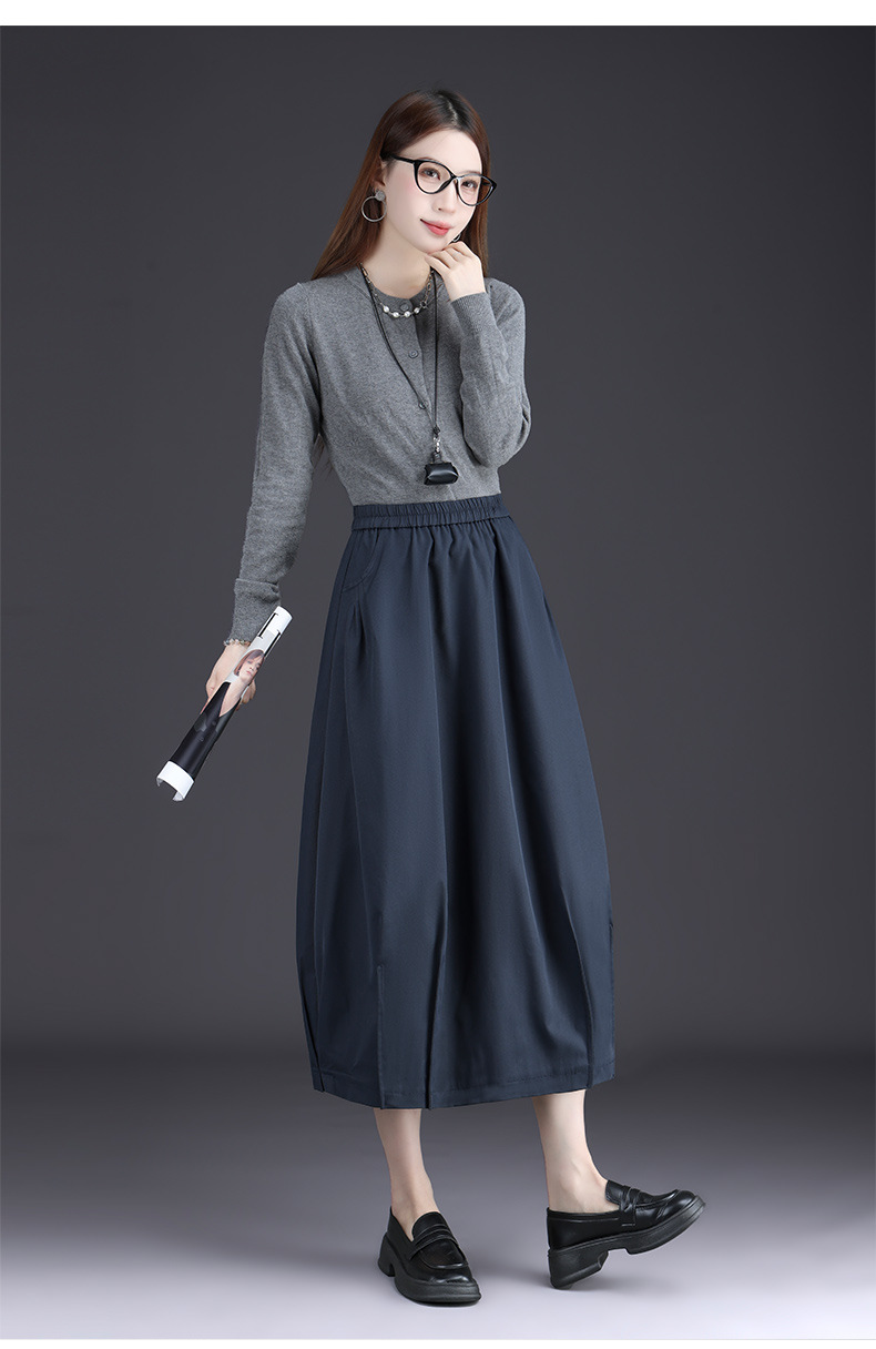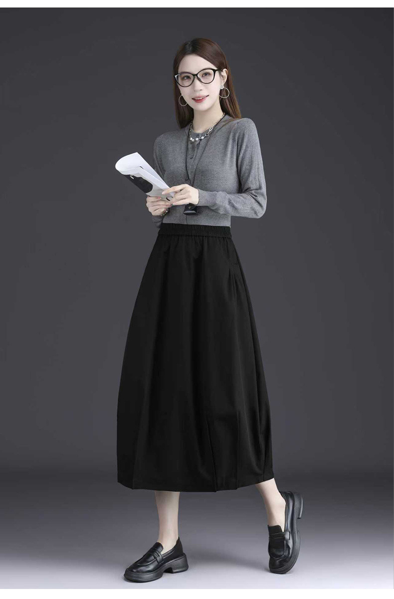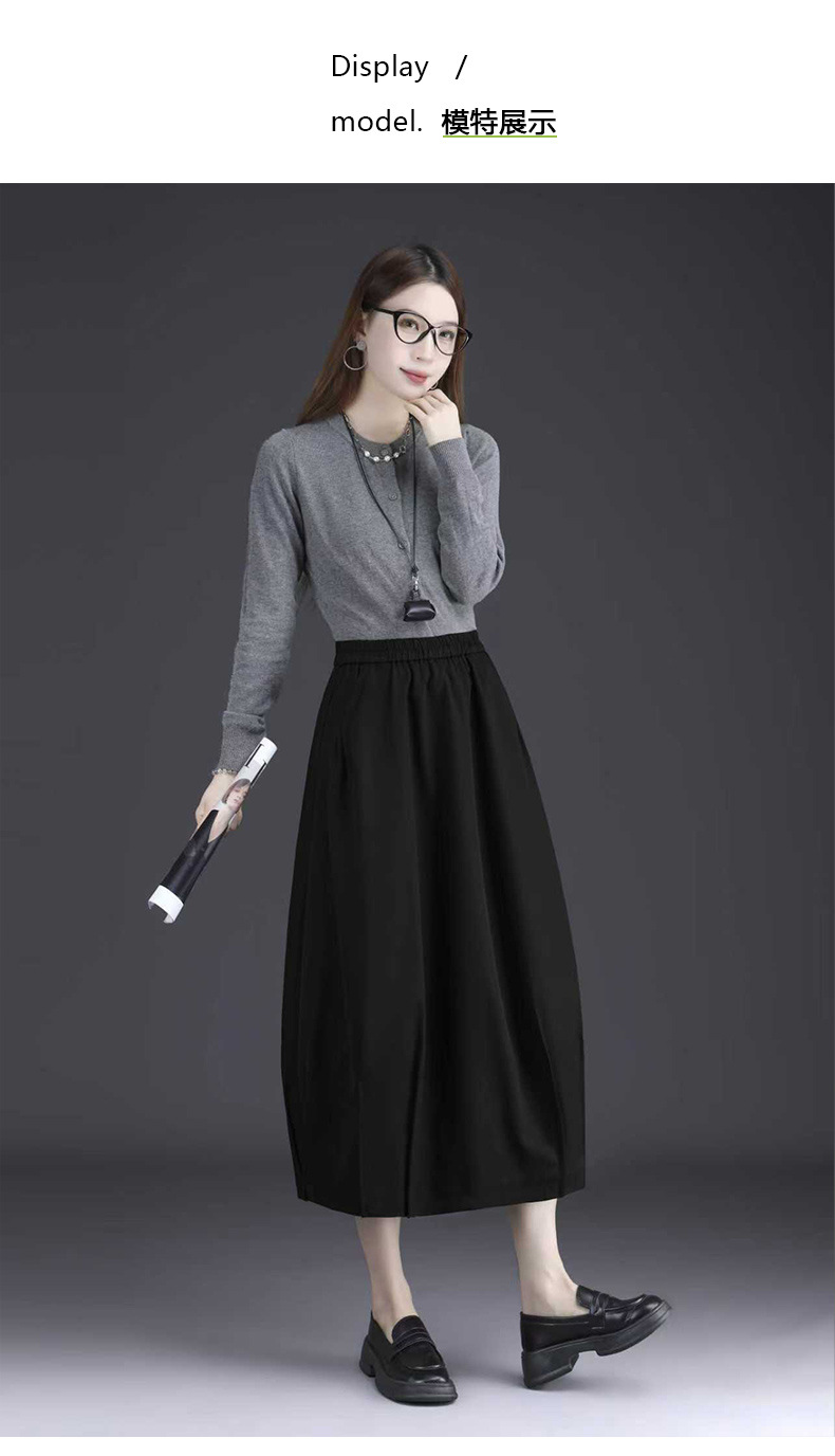 QYM 6991-Y松紧腰花苞裙半身裙百褶高腰洋气灯笼裙