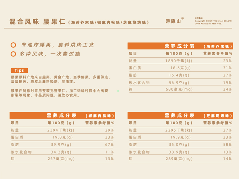 浔隐山 混合风味腰果仁 150g/盒6袋独立包装 零食坚果特产小吃