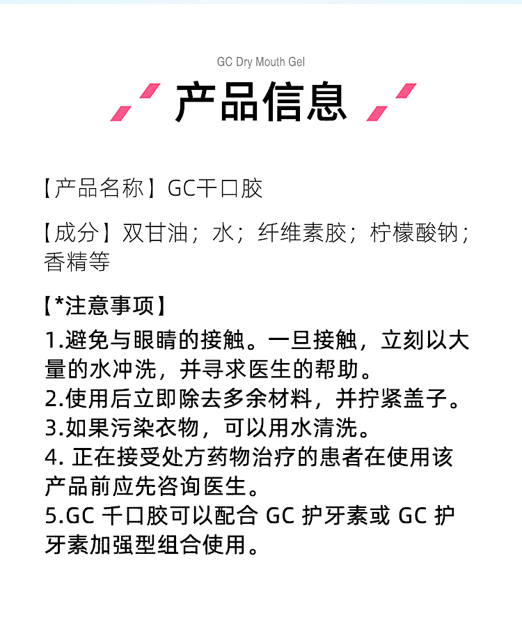 【品牌直发】包邮!日本进口GC干口胶口腔保湿啫喱膏40g