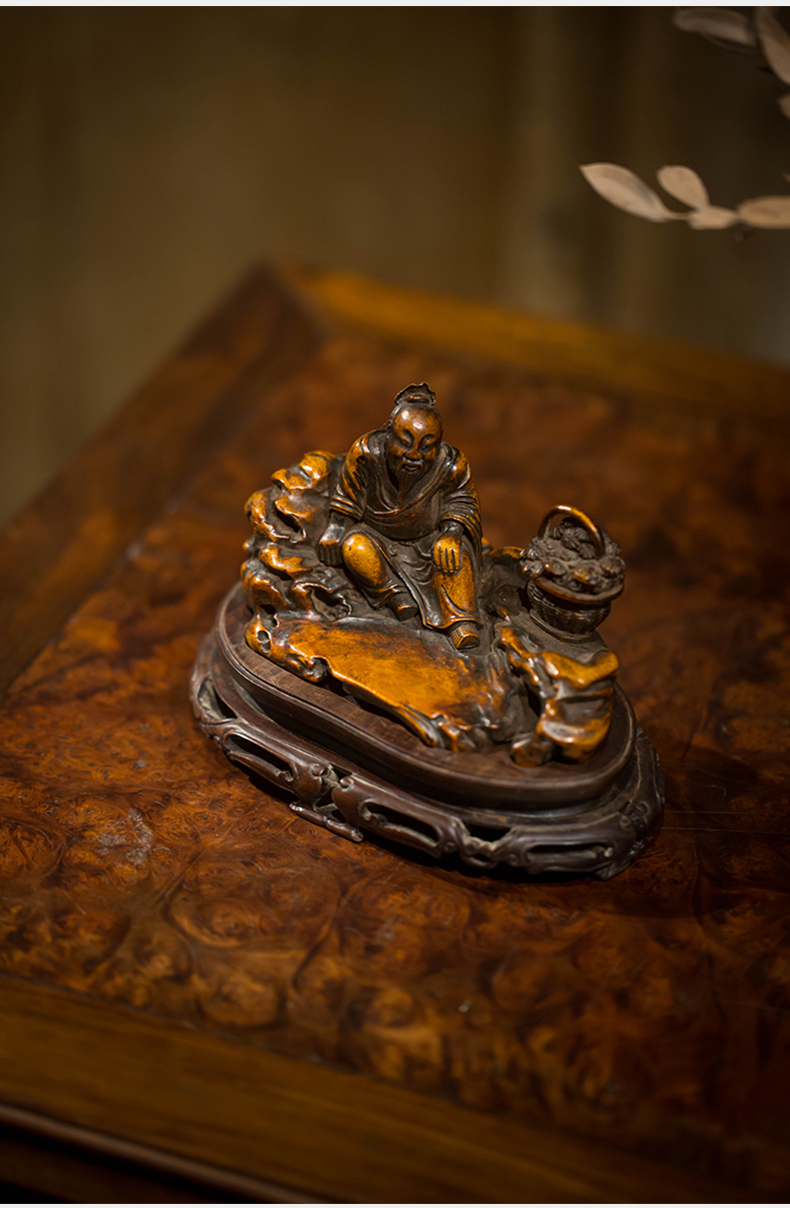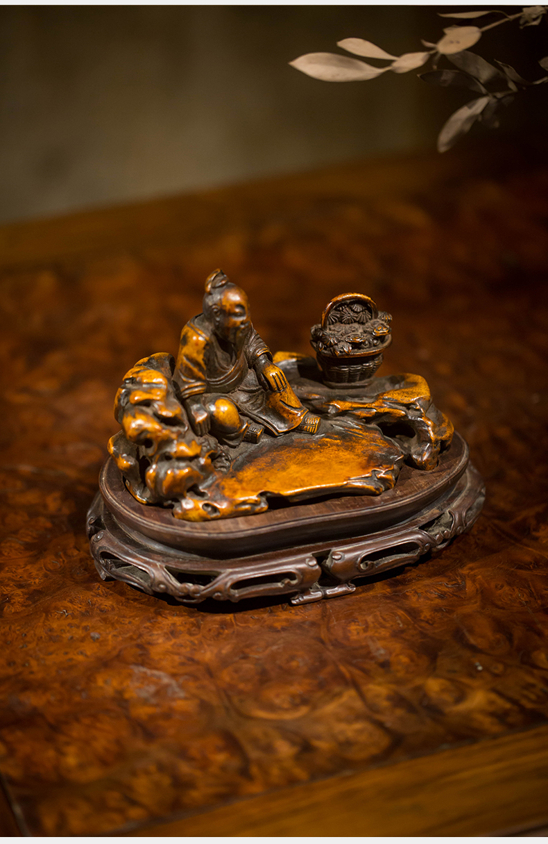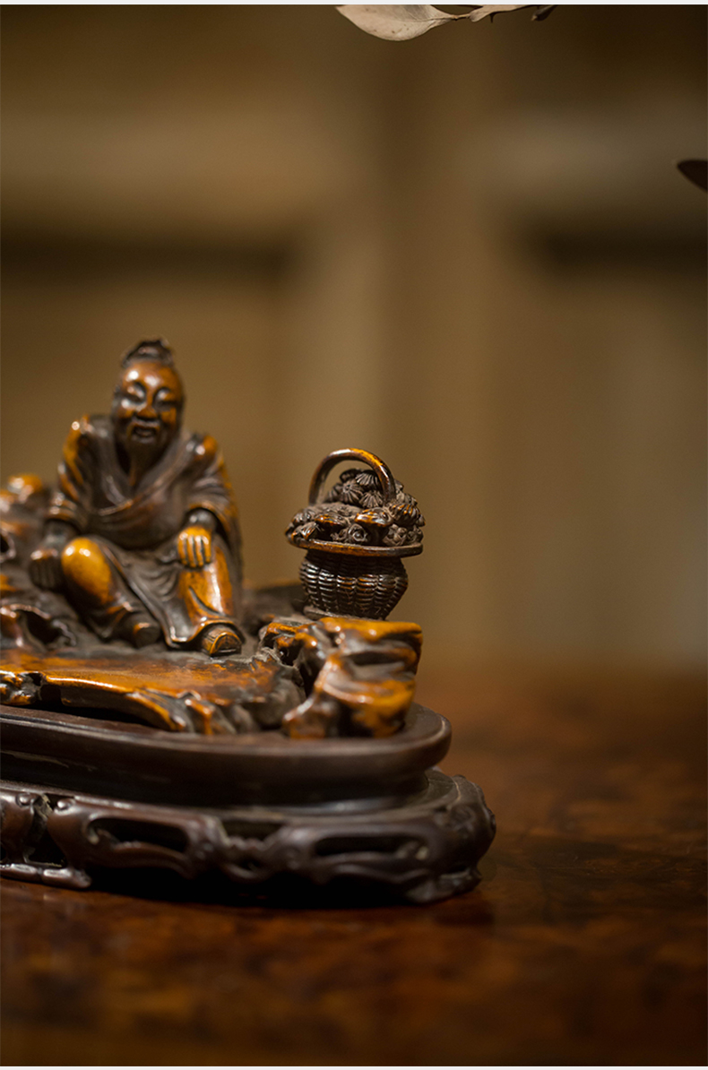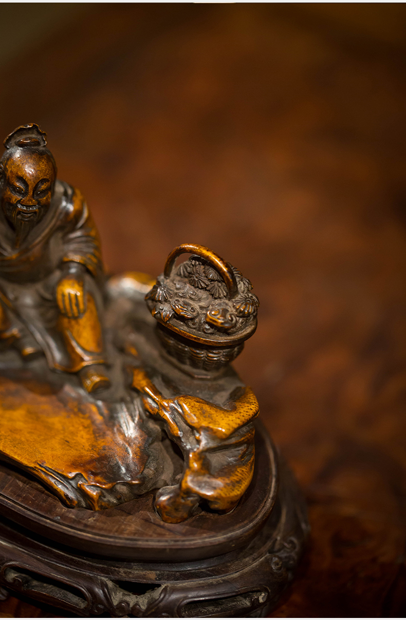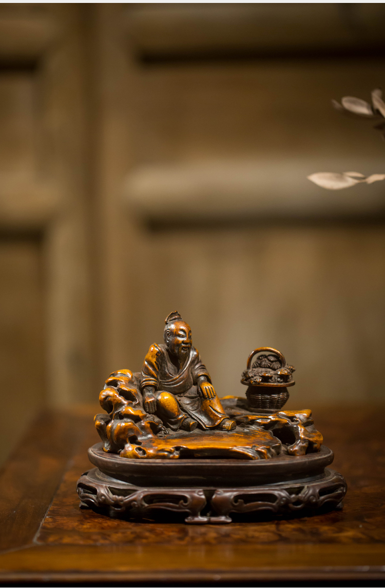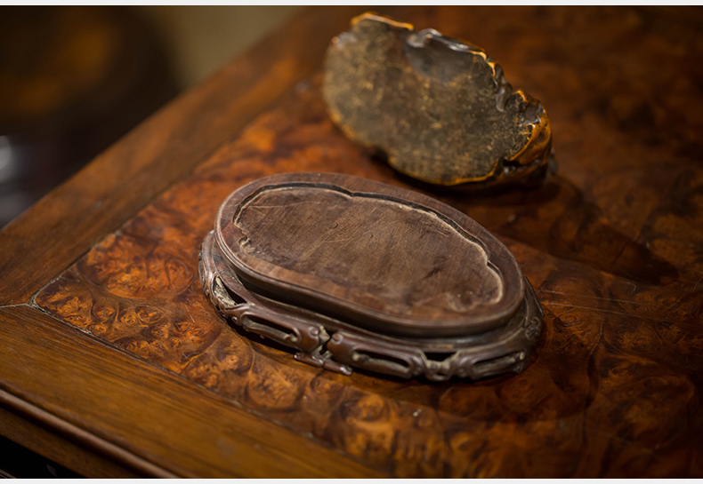 二十世纪 红木嵌云石透雕拐子纹百灵台