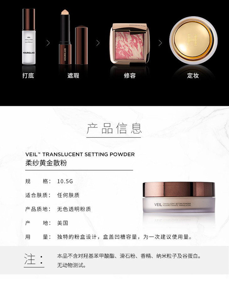 HourglassVeil Translucent Setting Powder黄金柔纱定妆散粉10.5g(006930)