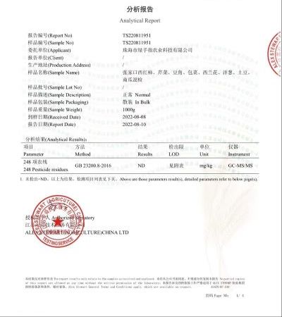 2022年8月,我们到张家口进行了现场抽检,248项农残均未检出~