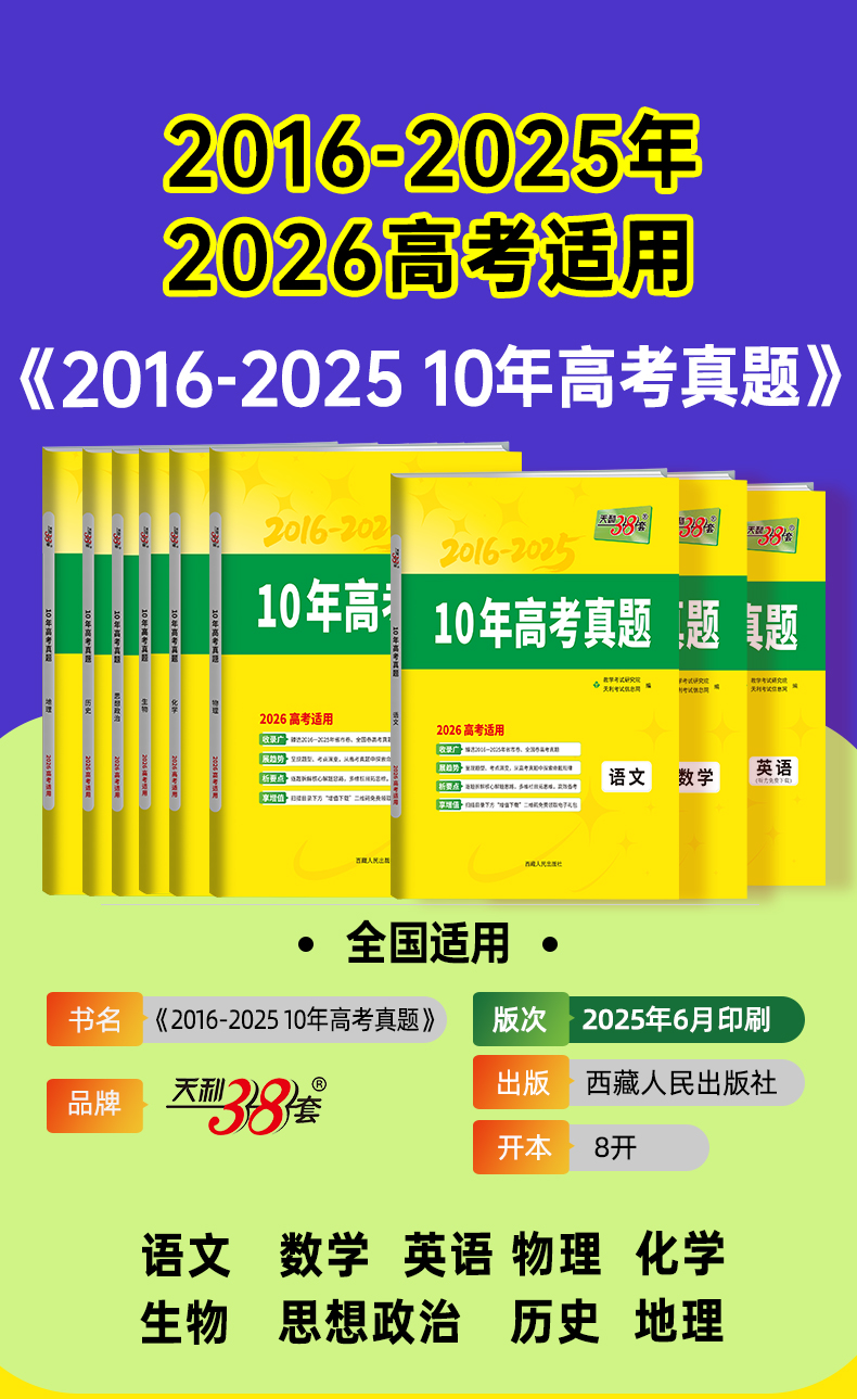 2026天利38套十年高考真题数学语文英语物理化学生物政治历史地理新高考全国卷2016-2025高考真题汇编