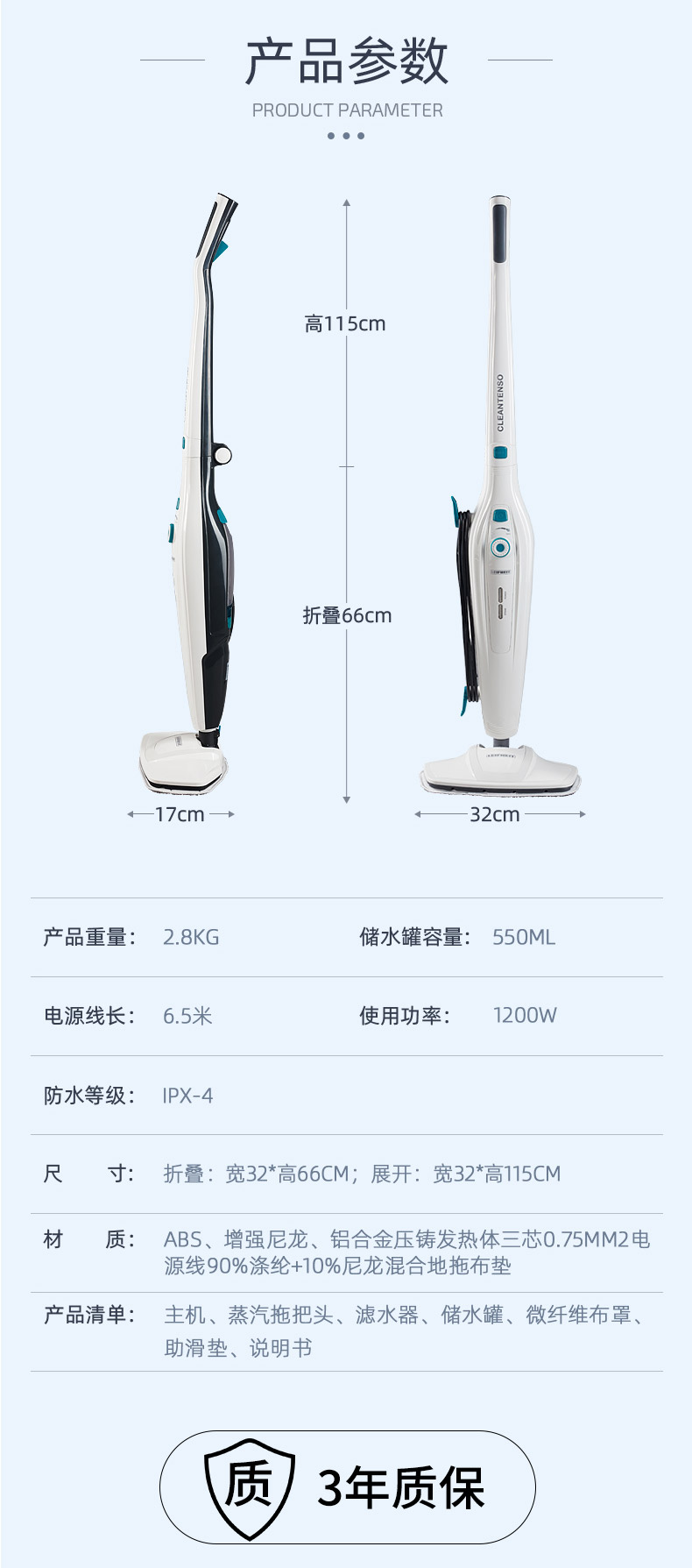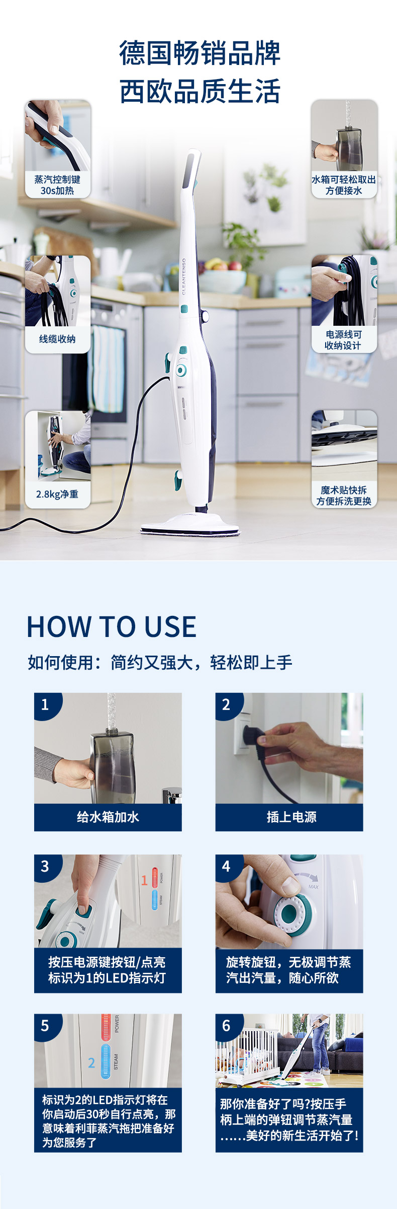 利菲CleanTenso 蒸汽拖把
