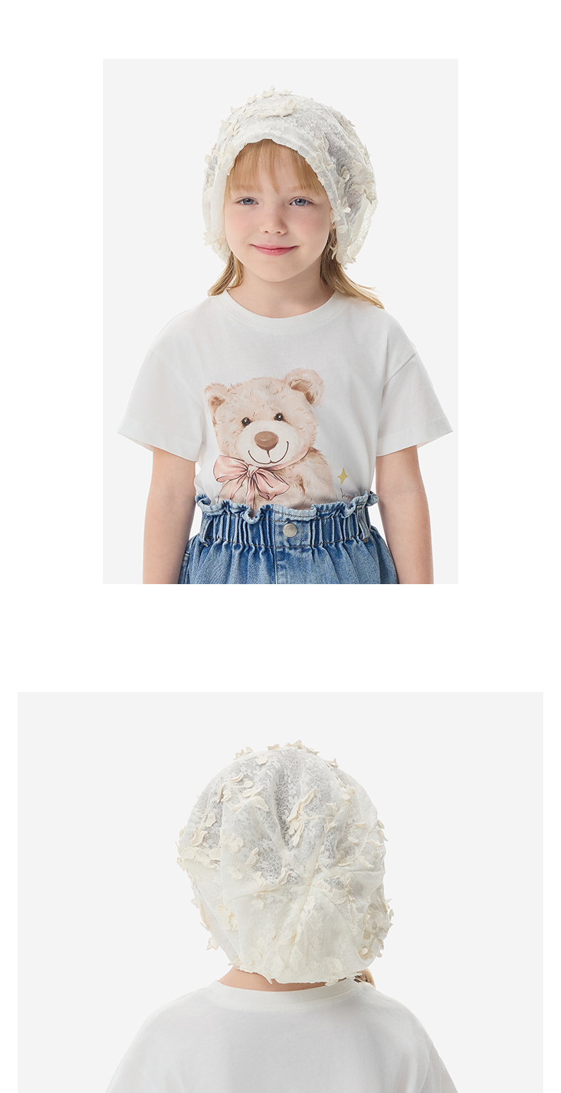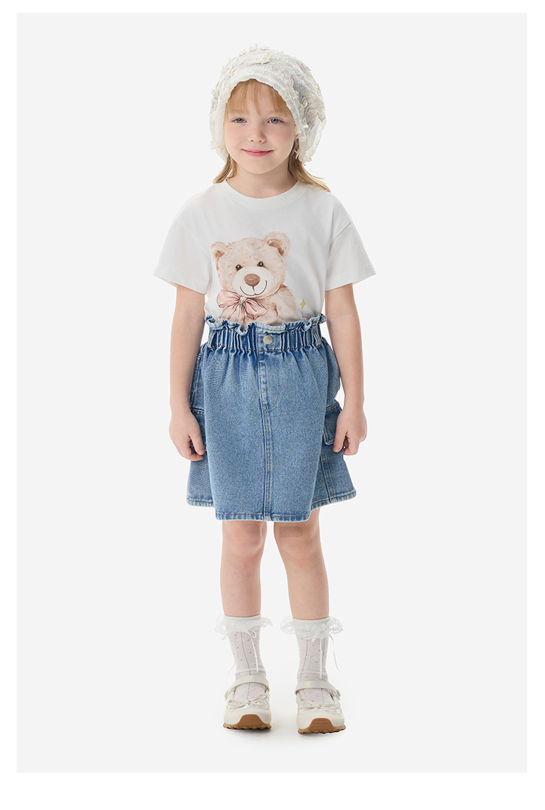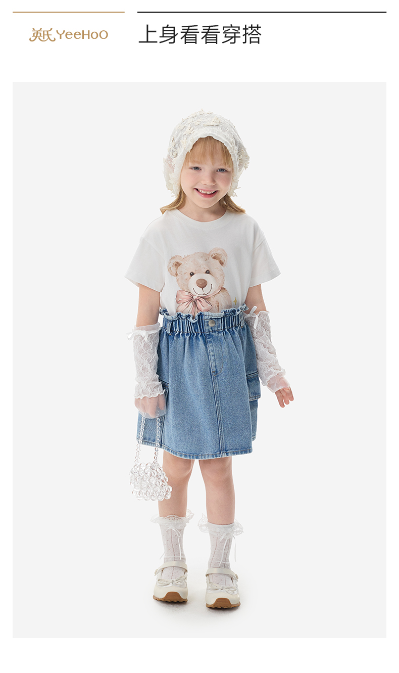 英氏儿童衣服女童夏季百搭短袖圆领T恤纯棉白色卡通休闲套头衫