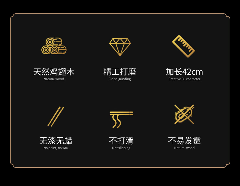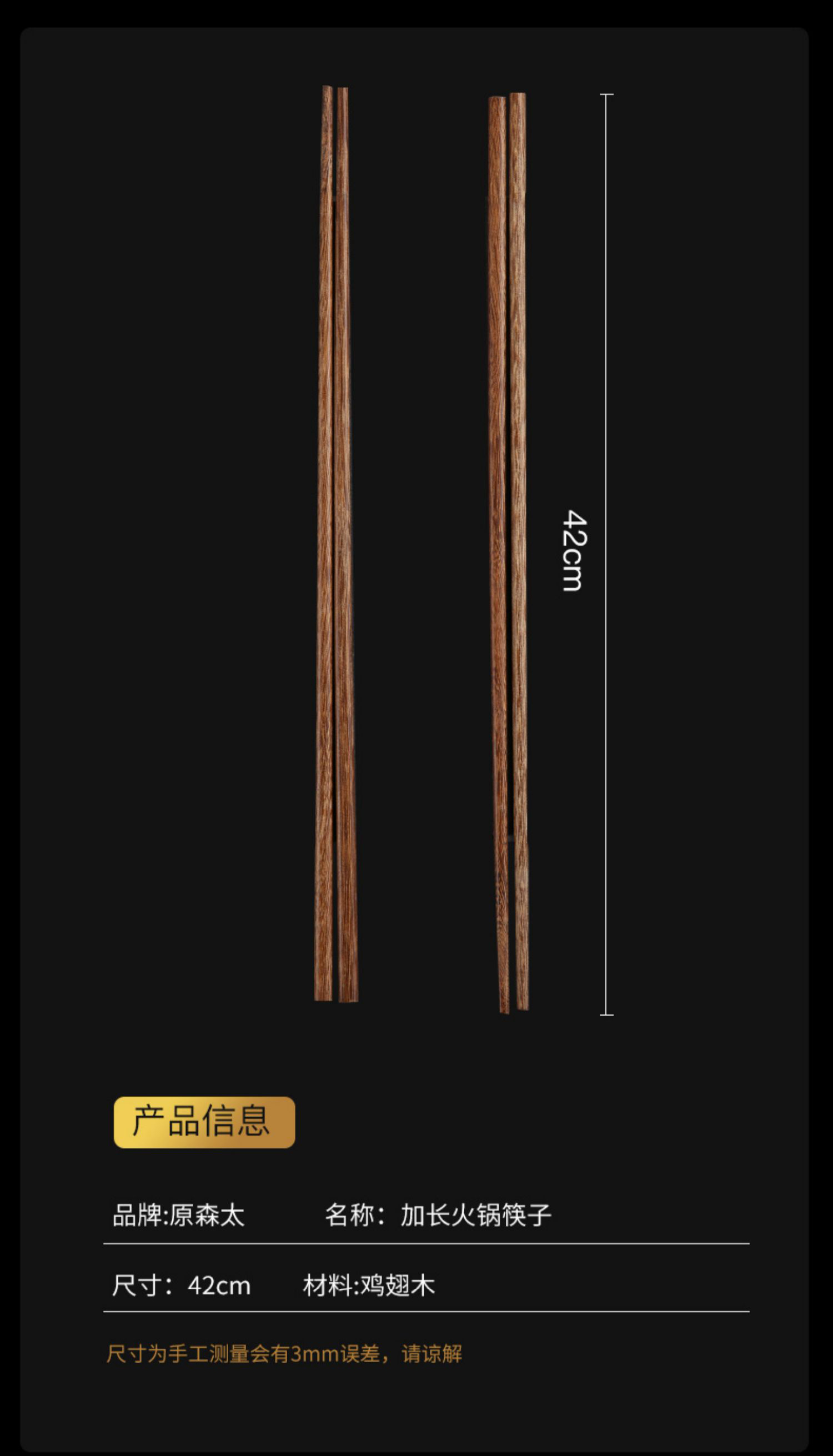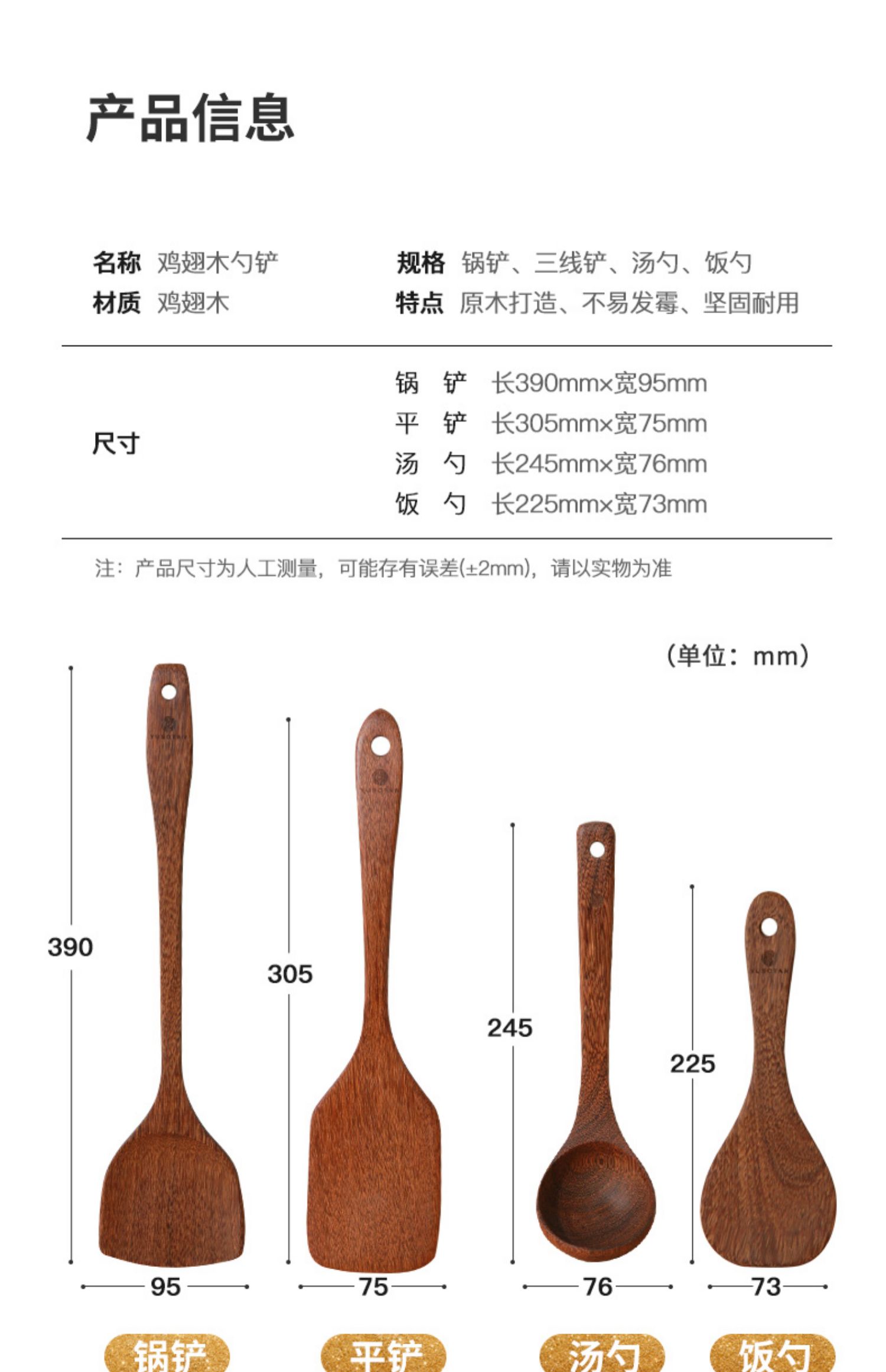 原森太鸡翅木筷子 锅铲 饭勺 平铲 汤勺 无漆无蜡,精工打磨无毛刺 经久耐用不易发霉