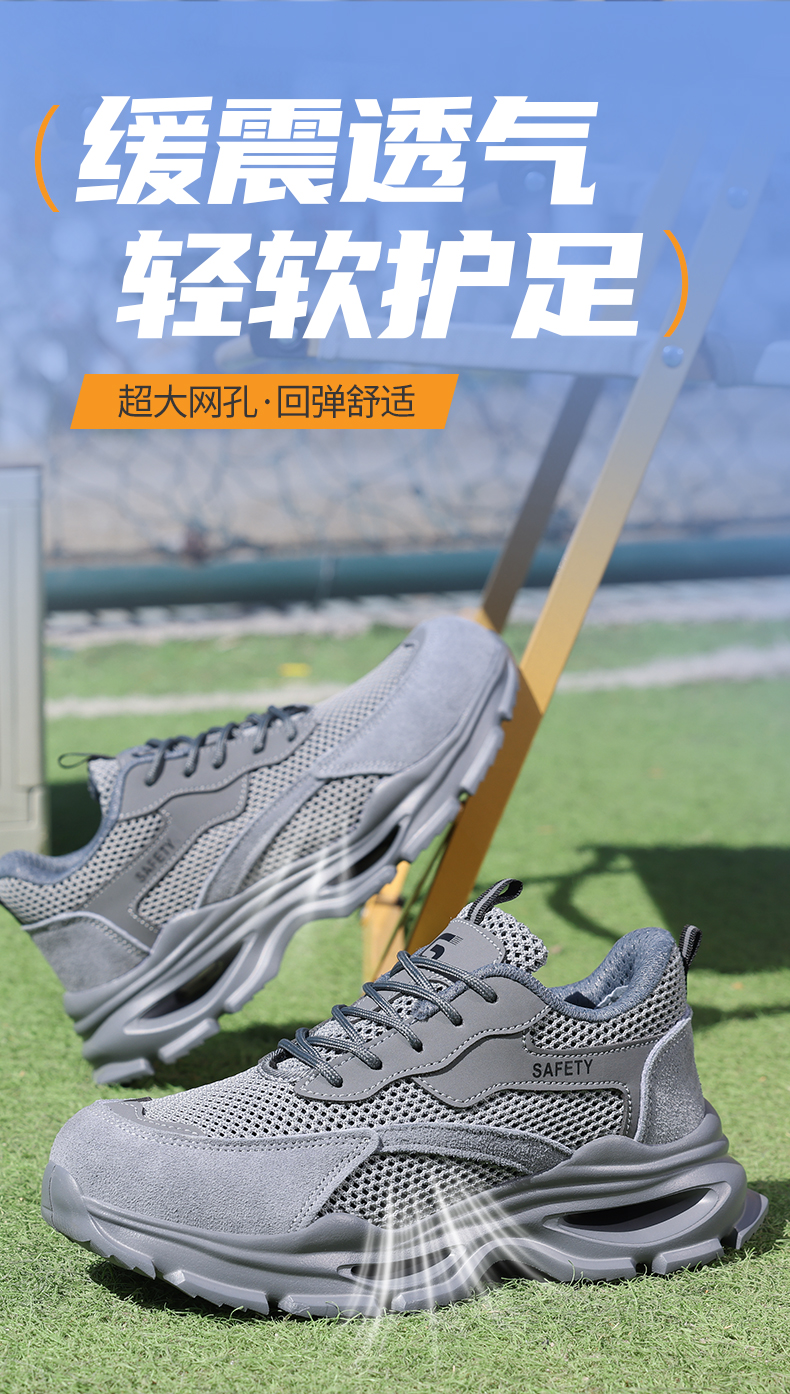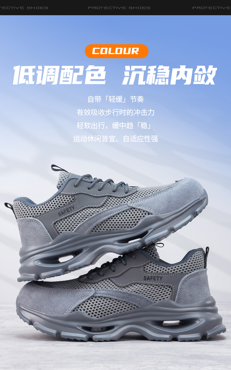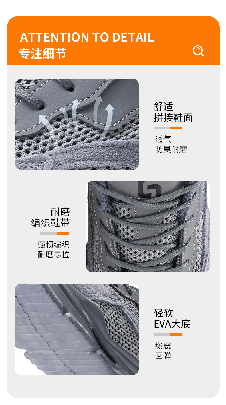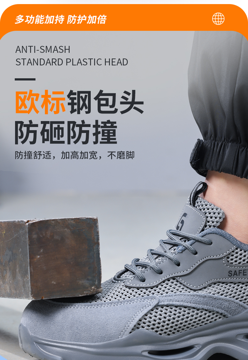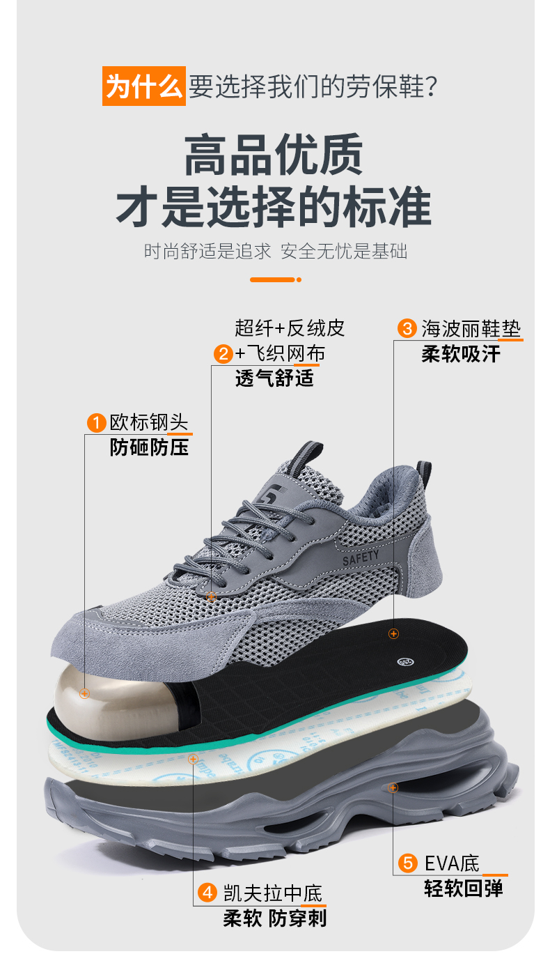 2025新款夏季款劳保鞋防砸防刺穿欧标钢包头凯夫拉底EVA底灰色低帮安全鞋