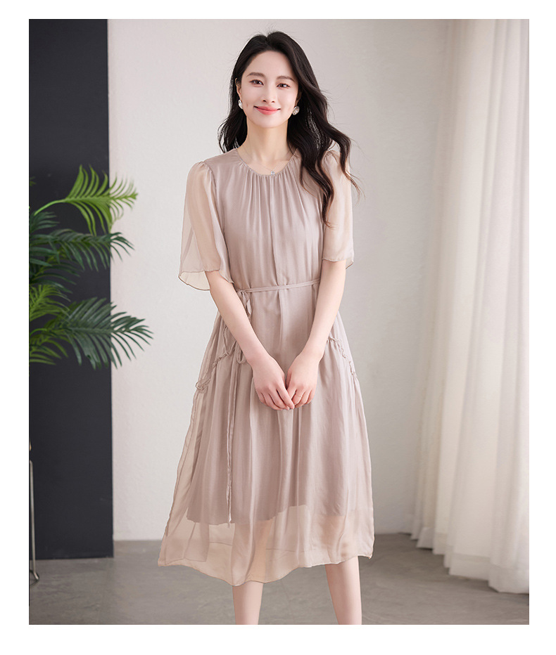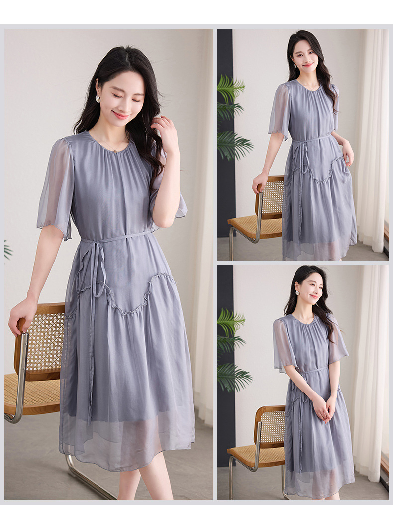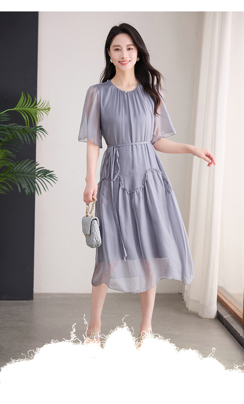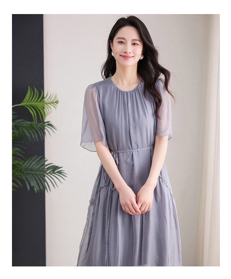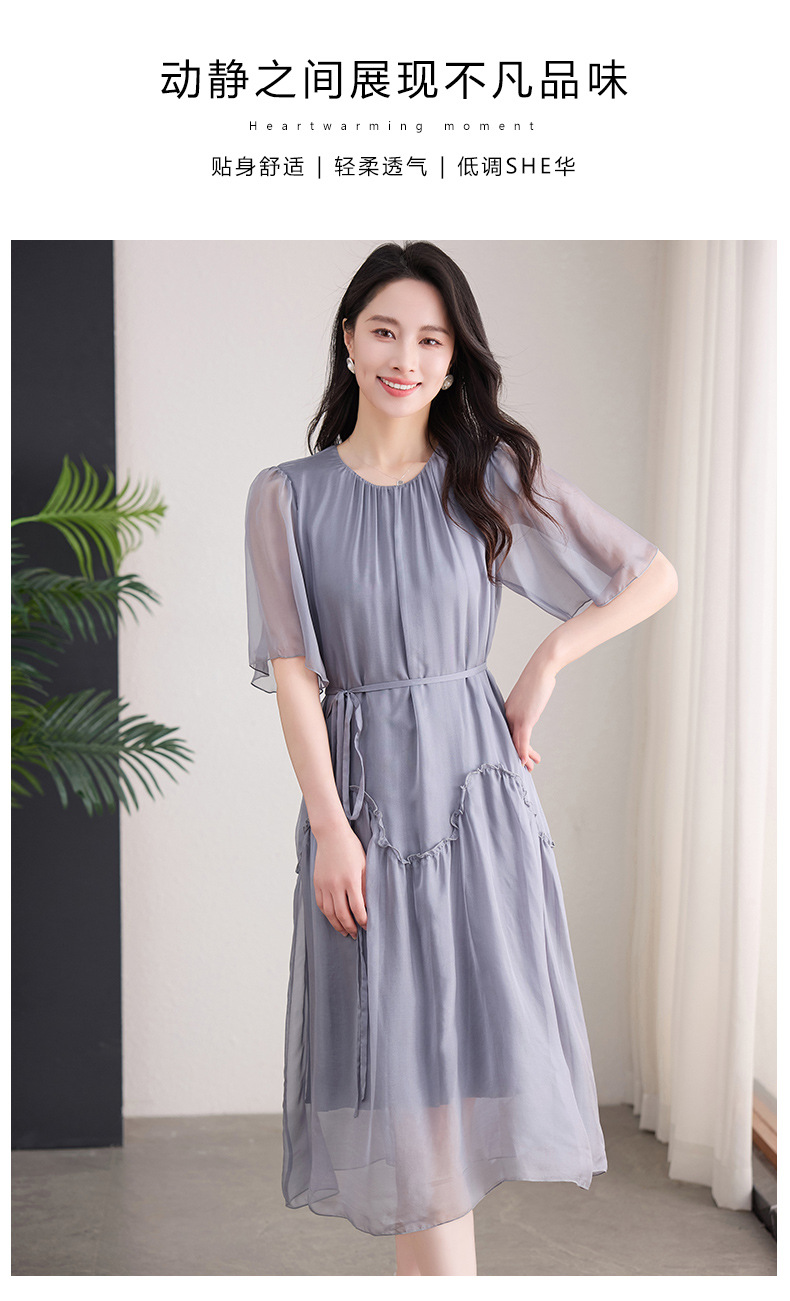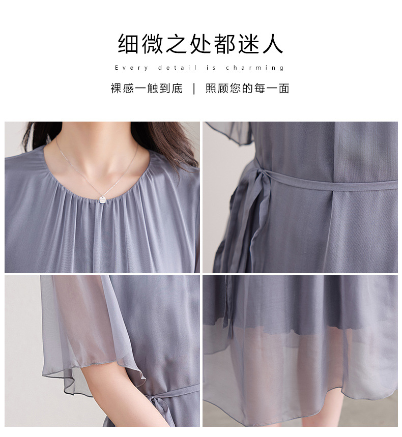 丁摩 纯色真丝连衣裙桑蚕丝气质飘逸裙子538