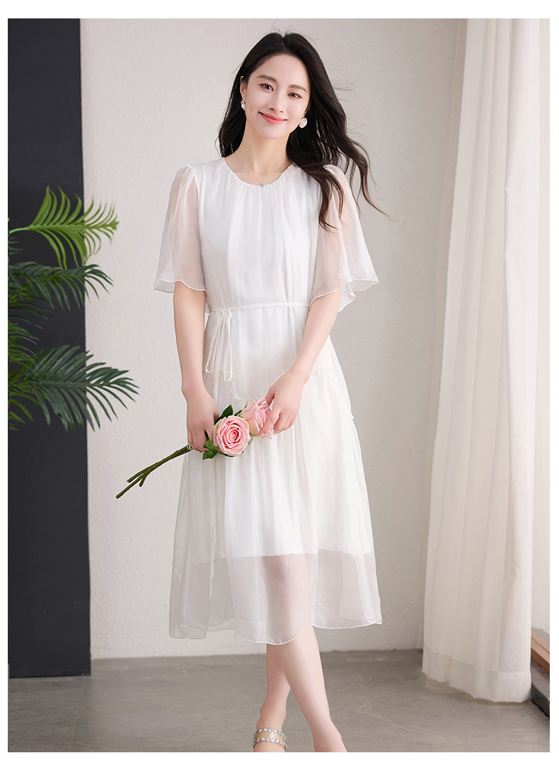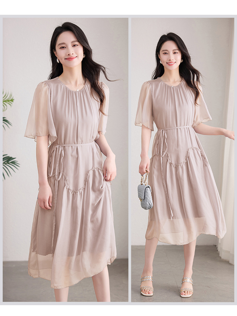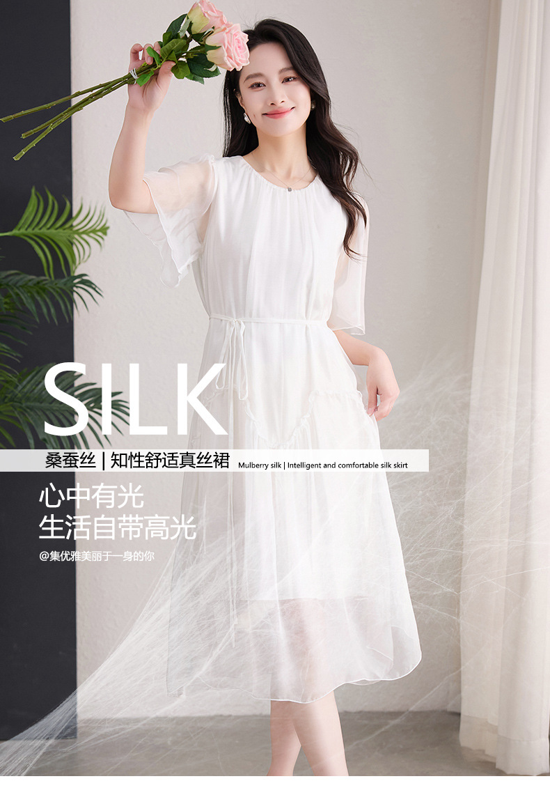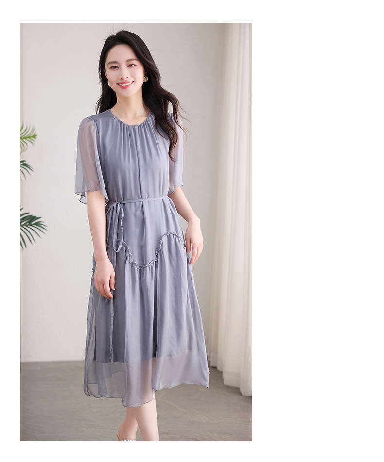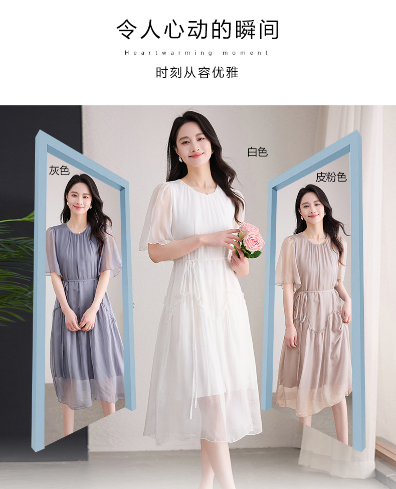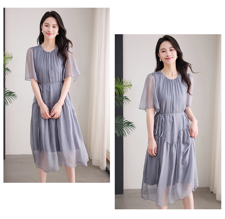 丁摩 纯色真丝连衣裙桑蚕丝气质飘逸裙子538