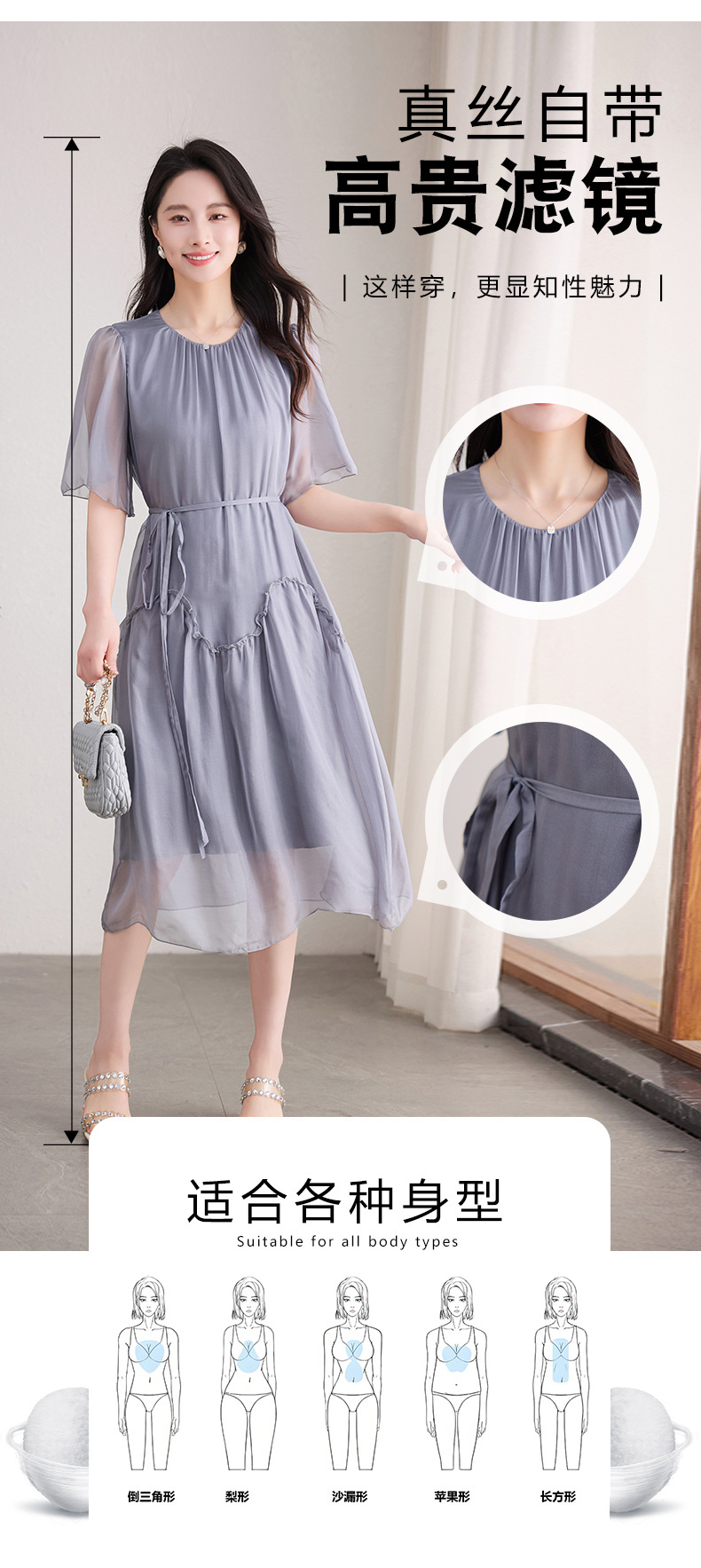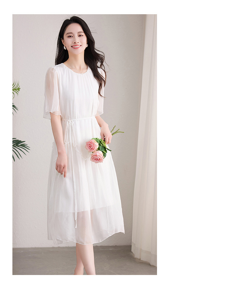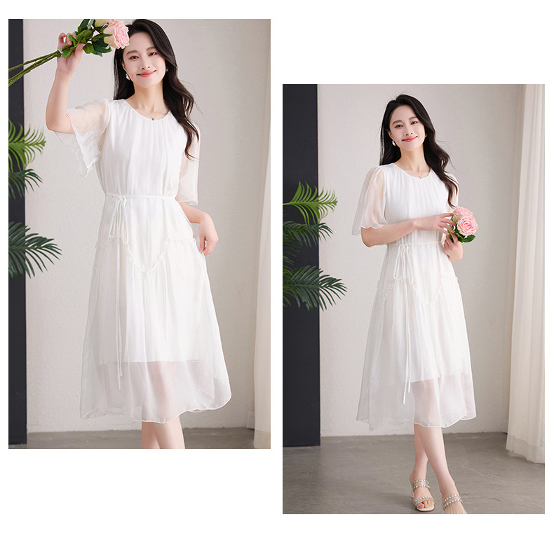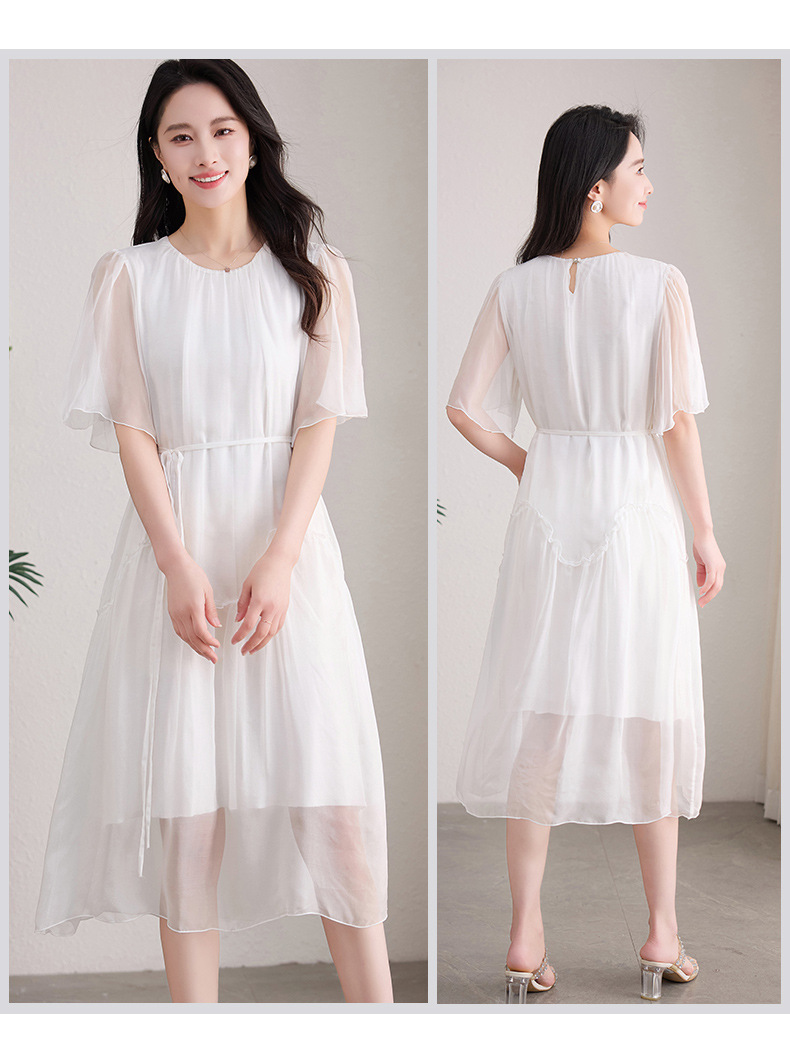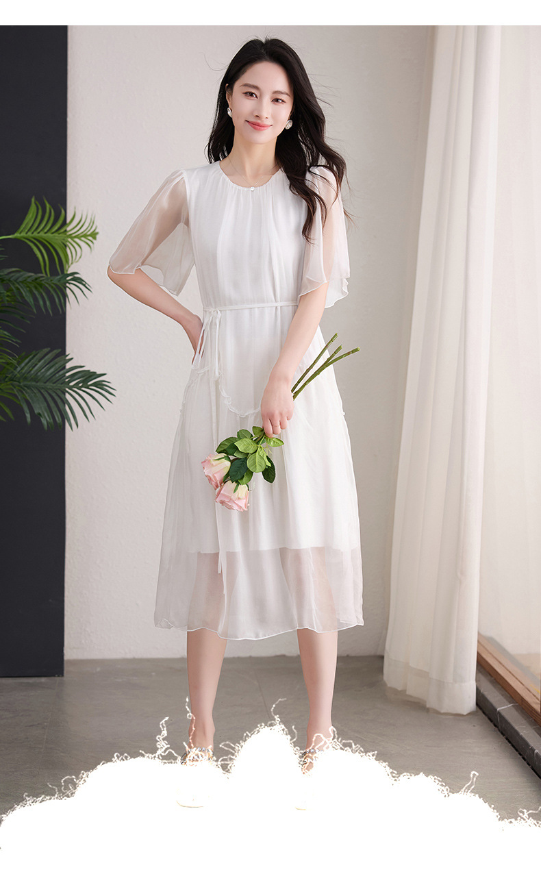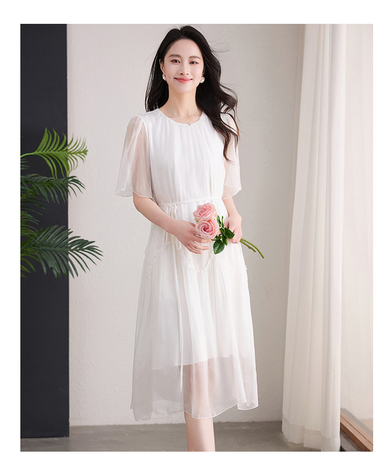 丁摩 纯色真丝连衣裙桑蚕丝气质飘逸裙子538