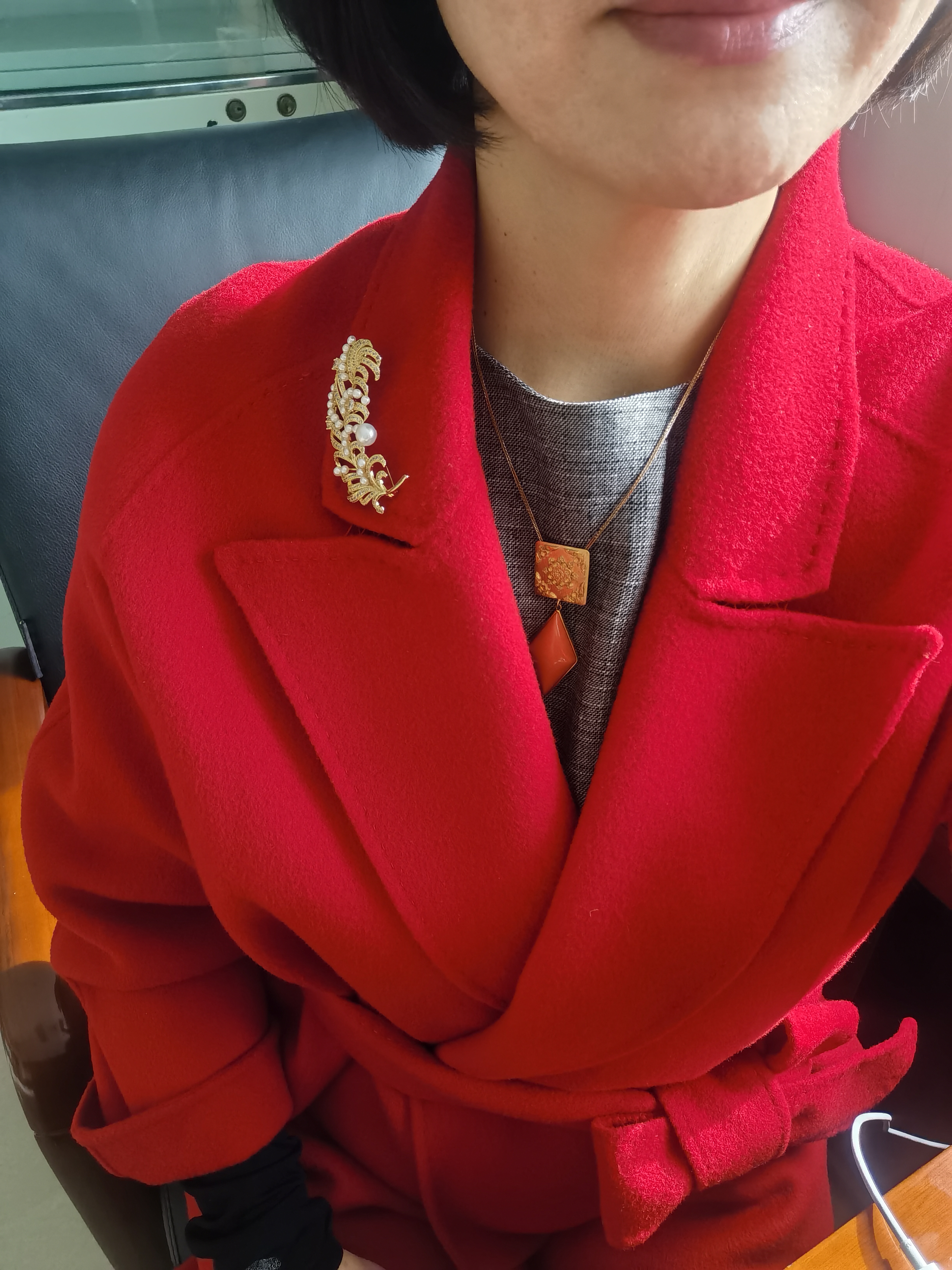 大羽毛珍珠胸花