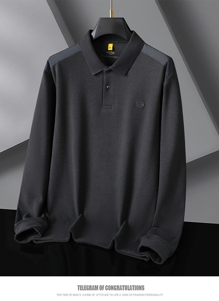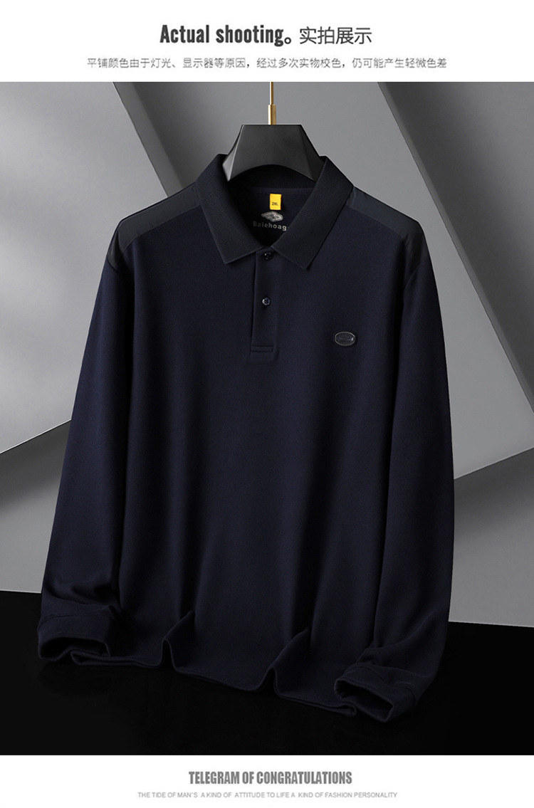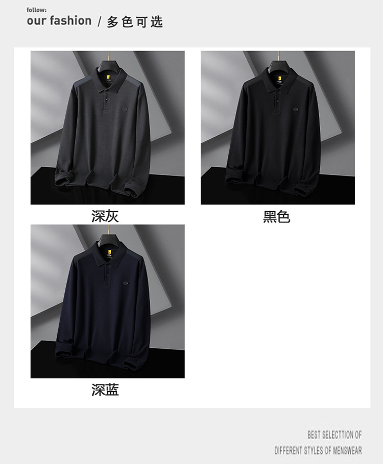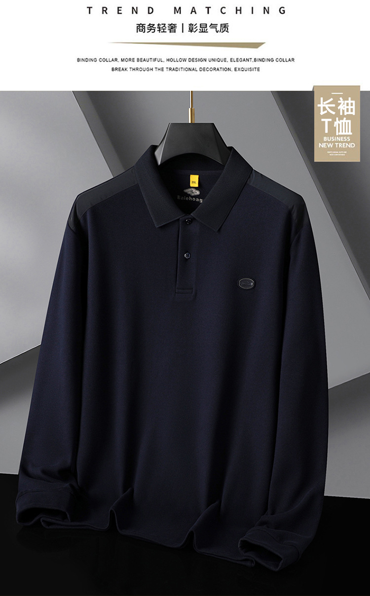 【桑蚕丝+驼绒】【DG】大依优型大码男装新款长袖POLO男士加肥加大码商务休闲翻领长袖T恤打底衫