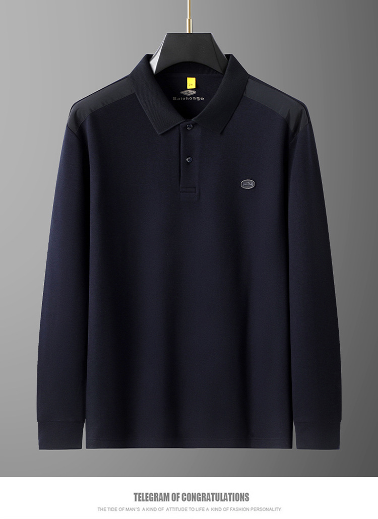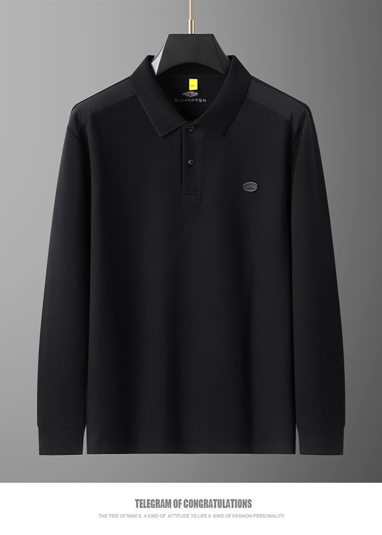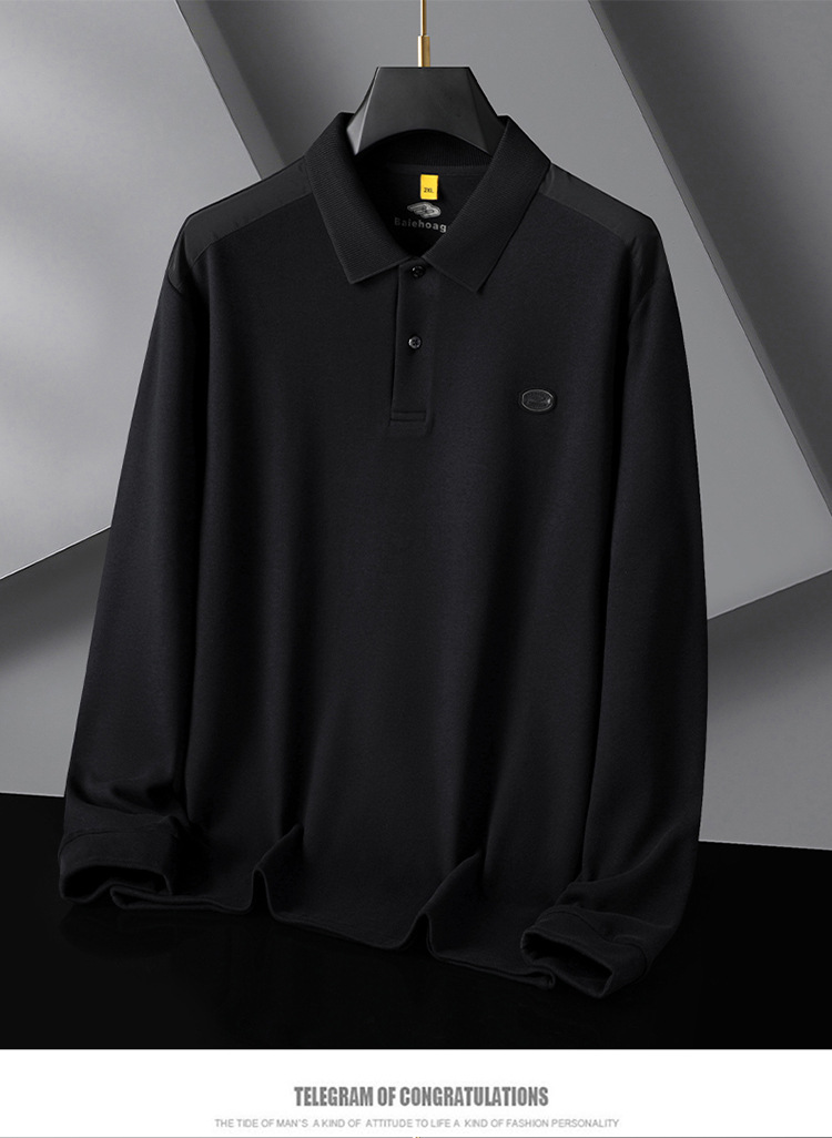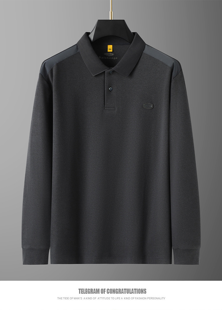 【桑蚕丝+驼绒】【DG】大依优型大码男装新款长袖POLO男士加肥加大码商务休闲翻领长袖T恤打底衫