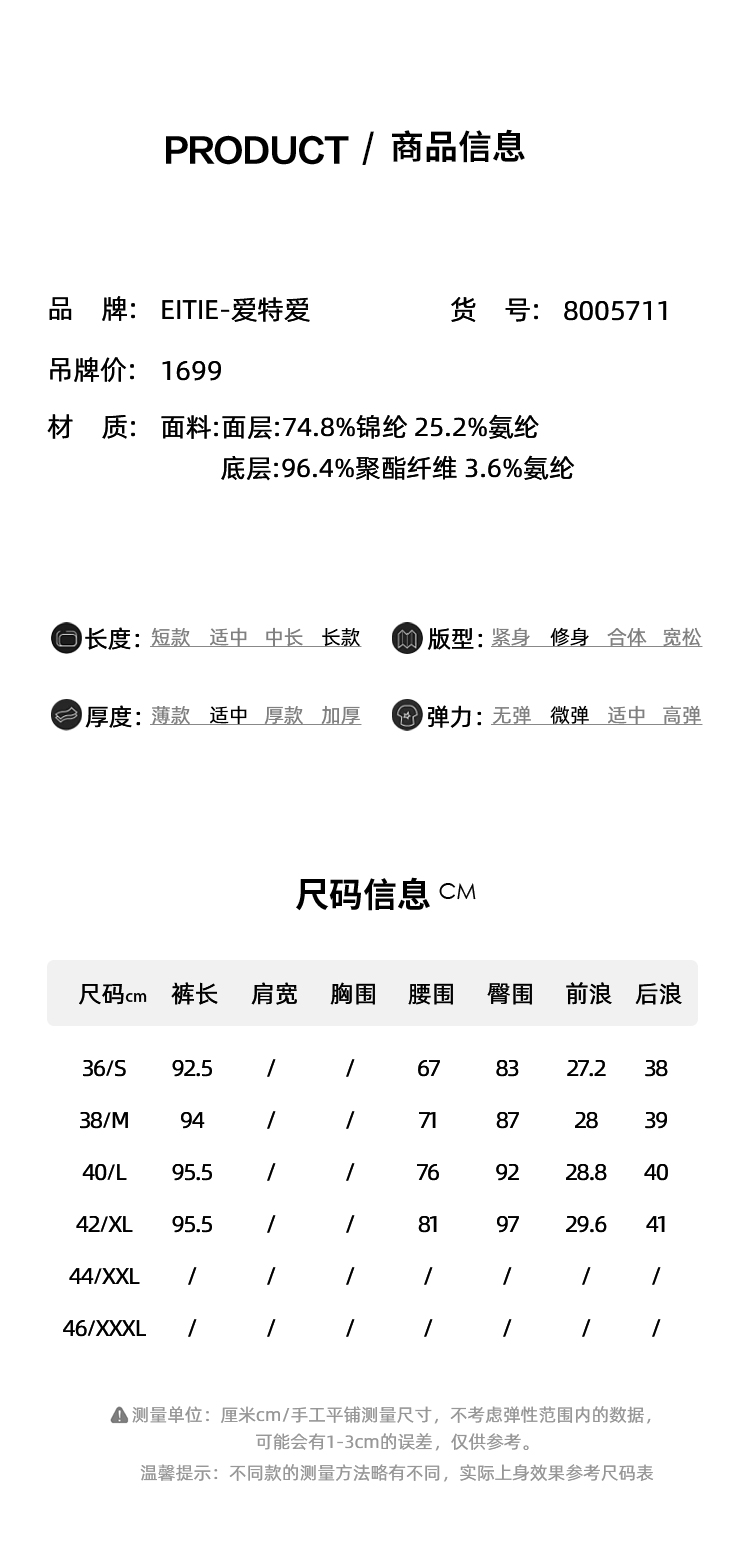 EITIE爱特爱女装春夏显瘦百搭通勤时尚修身打底小脚裤女长裤C1805108