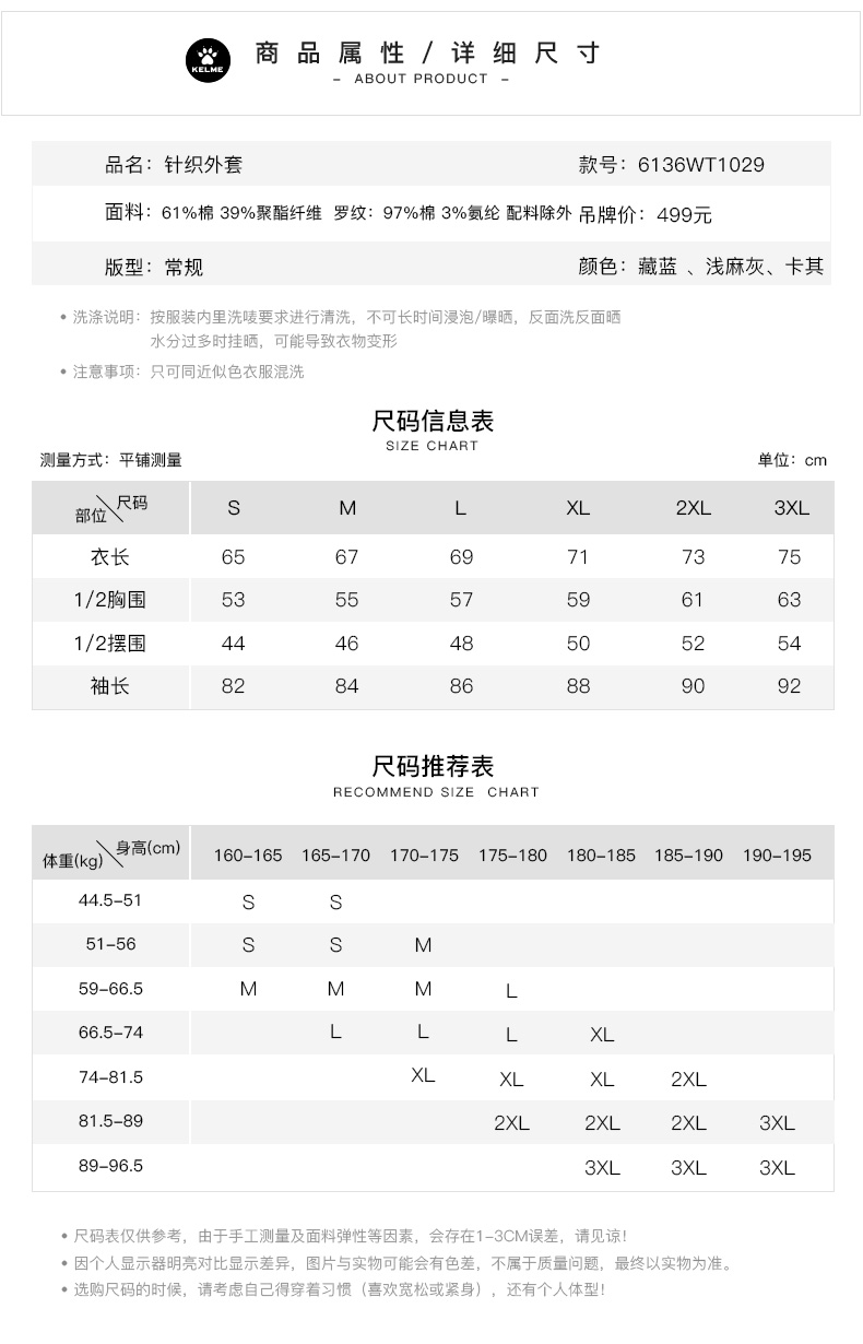 卡尔美秋冬新款男士针织外套6136WT1029 商品图6