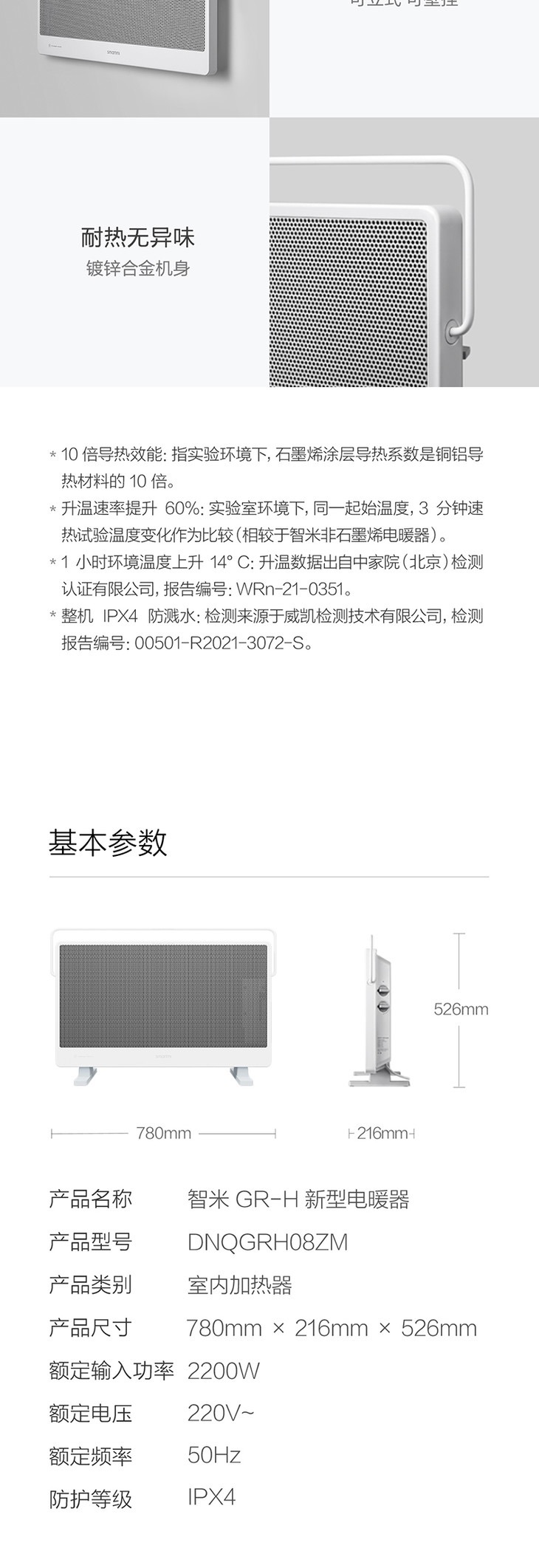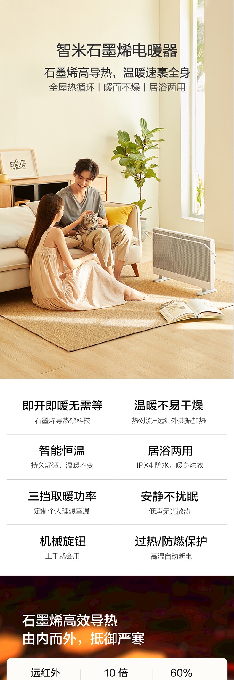 【石墨烯速热 全屋快速温暖】智米石墨烯取暖器 居浴两用 IPX4级防溅水