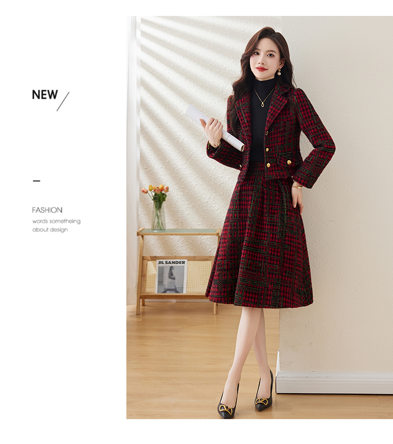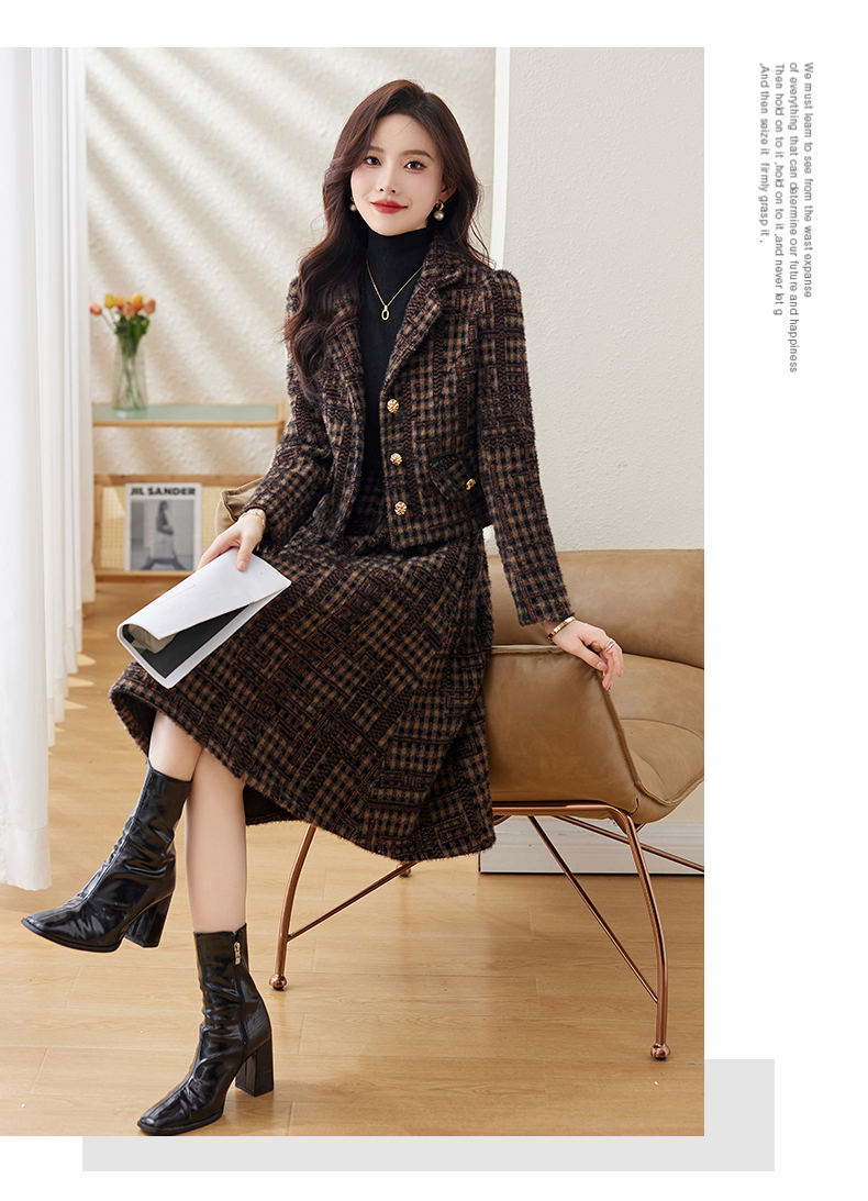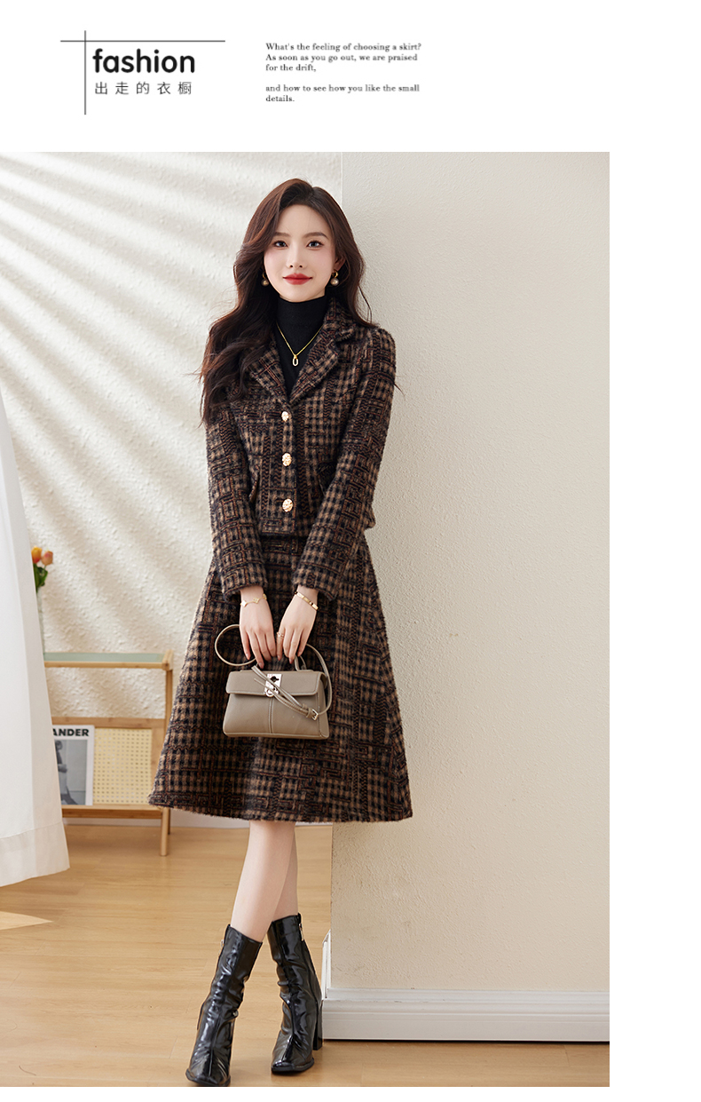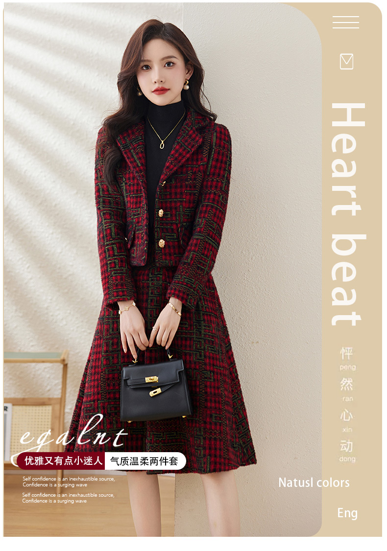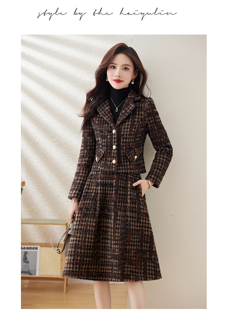 毛呢保暖气质时尚,优雅小香风高腰半裙两件套HR-LDB7302