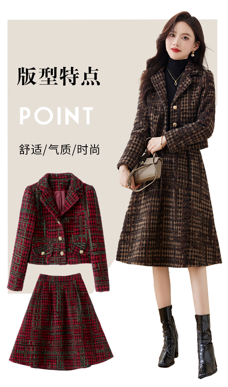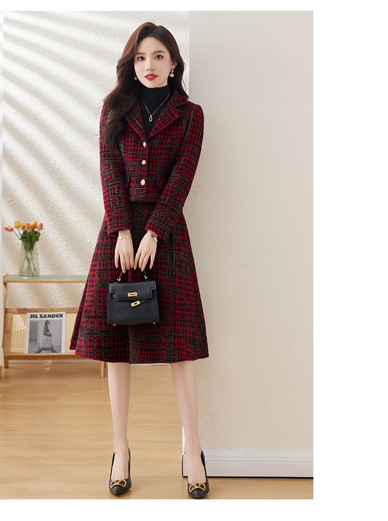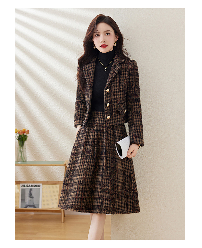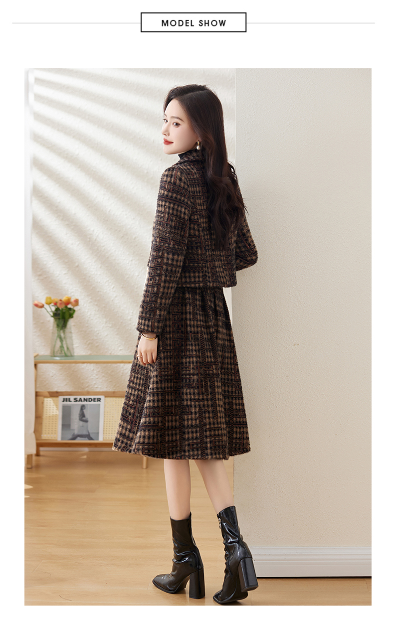 毛呢保暖气质时尚,优雅小香风高腰半裙两件套HR-LDB7302