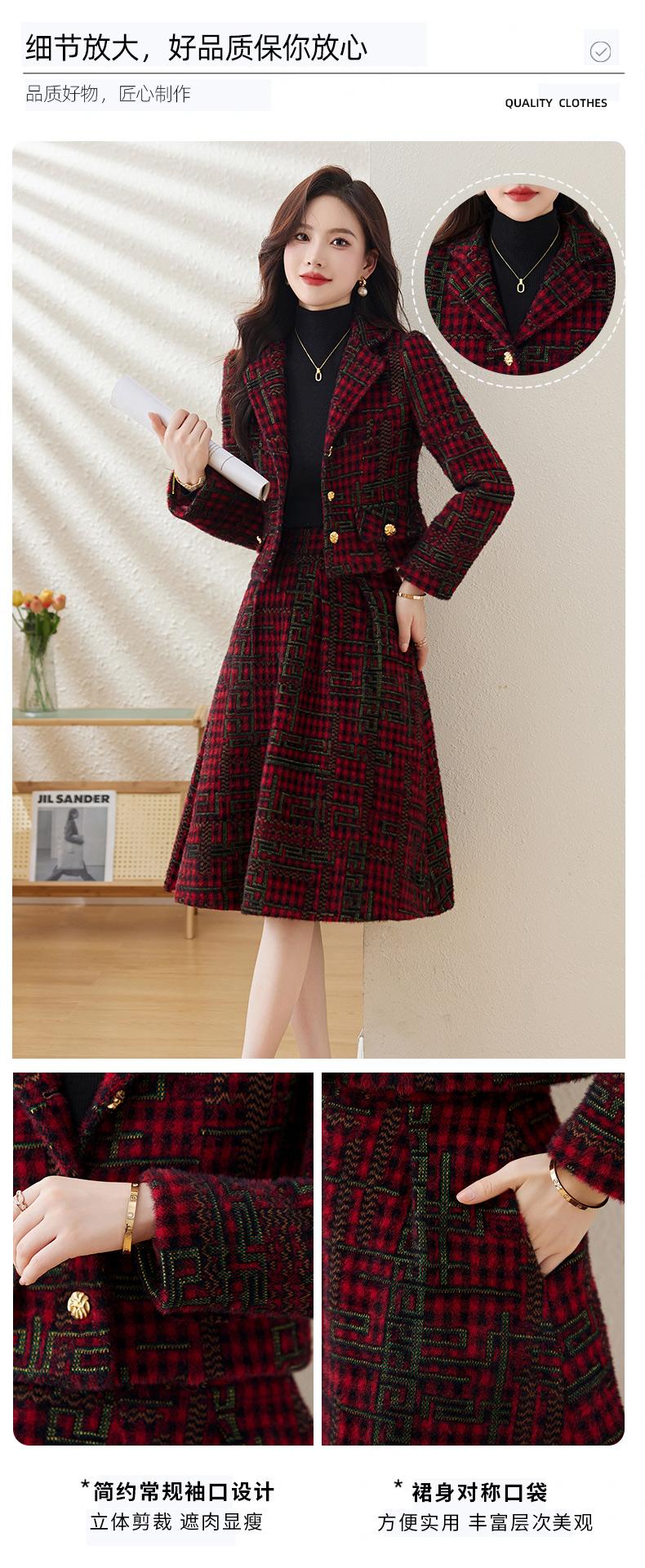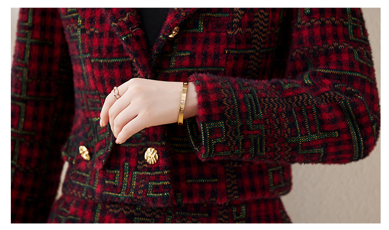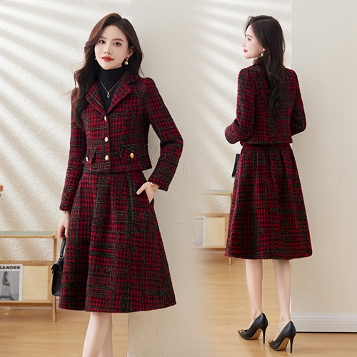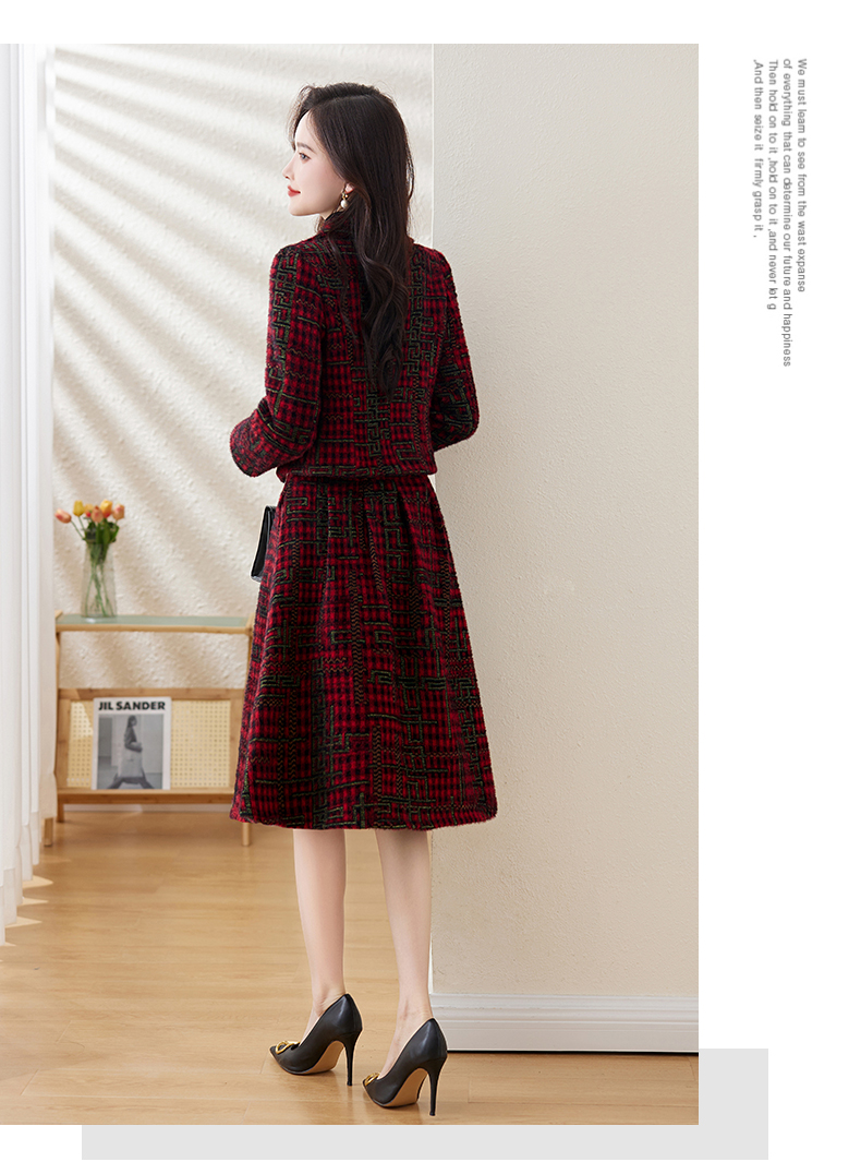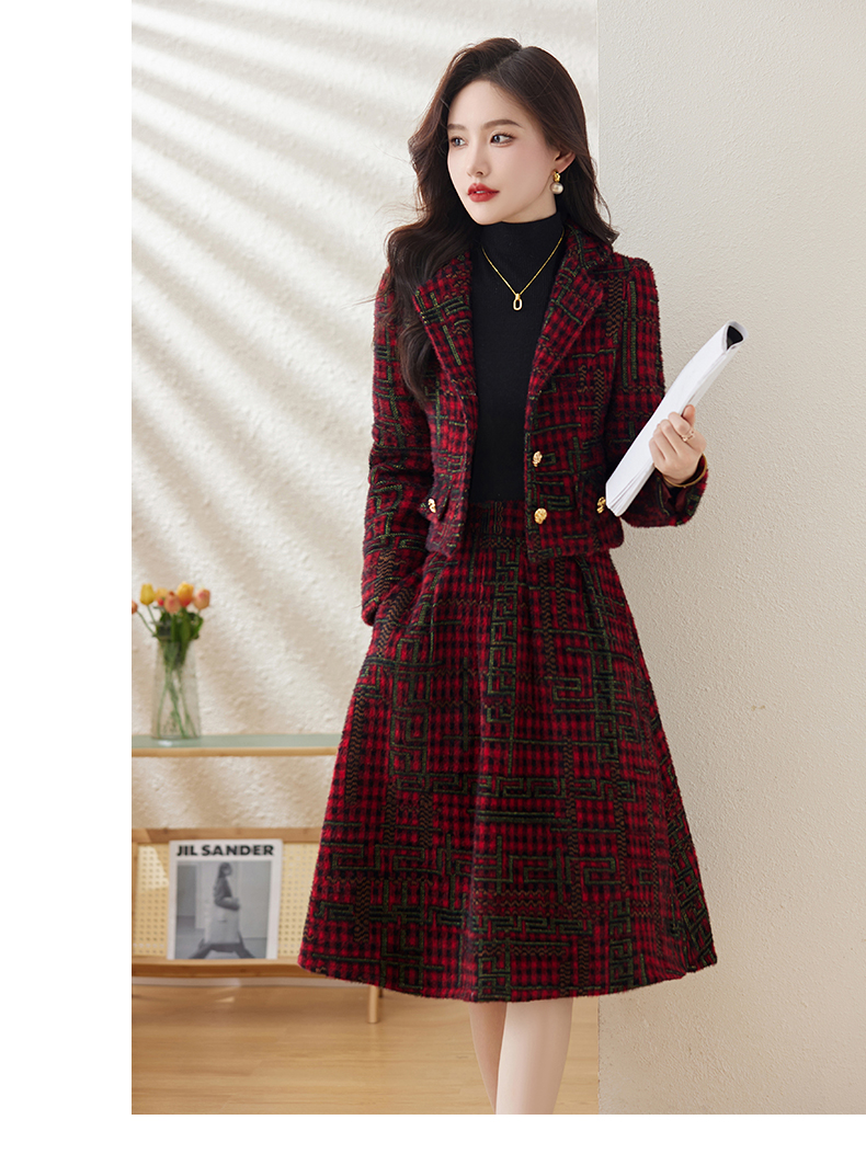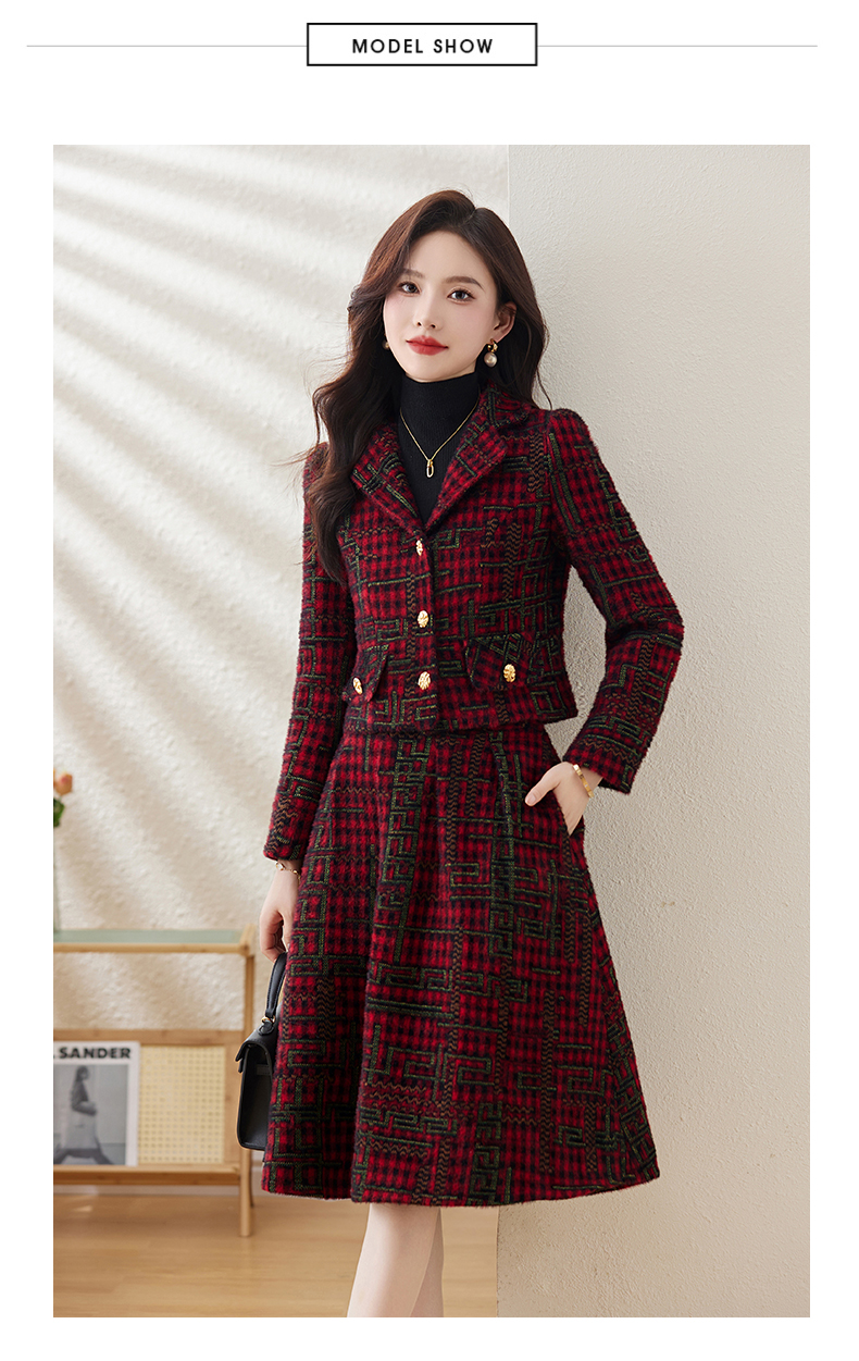 毛呢保暖气质时尚,优雅小香风高腰半裙两件套HR-LDB7302