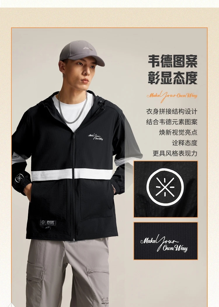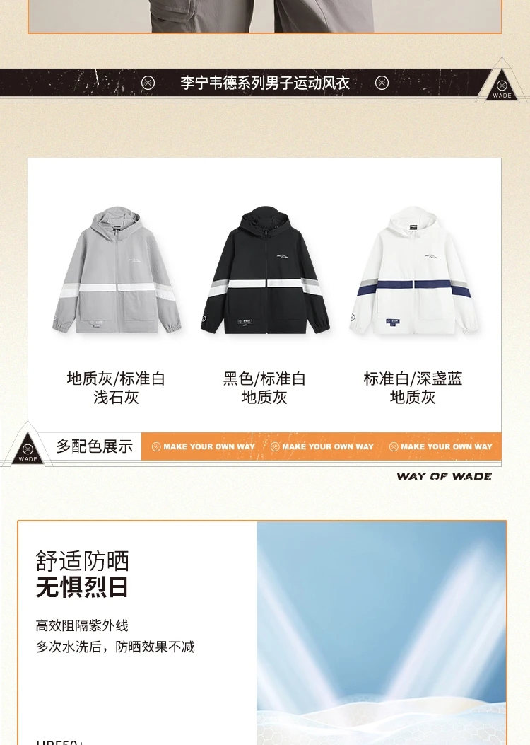 李宁韦德系列男子外套夏季冰感舒适防晒宽松运动风衣AFDV121