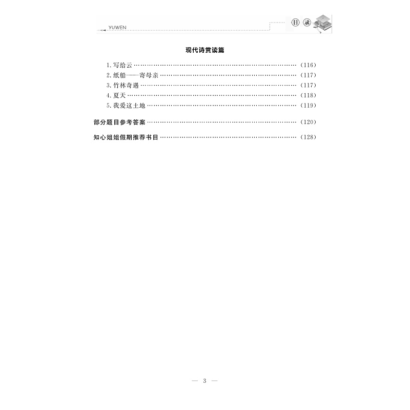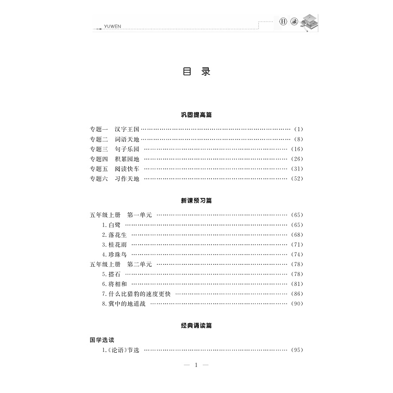 本书是原书的修订版,本次修订改正了错误,将其中不适合或陈旧的内容作了修改,新增加了一些内容,使其更适合市场需求。本书分“巩固提高篇”、“新课预习篇”、“经典诵读篇”等三个版块。本书习题题量难度适中分层次设置题目,供不同程度的同学选做。并选了新学期新课文若干,方便学生预习。“经典诵读”部分精选了20多篇经典诗文及10篇美文,供读者阅读积累,感受汉语的魅力。本套书是小学各年段暑假期间,学生用于自我复习和预习的课外读物,本册主要用于学生四年年级升五年级暑期拓宽知识面、复习和预习使用。