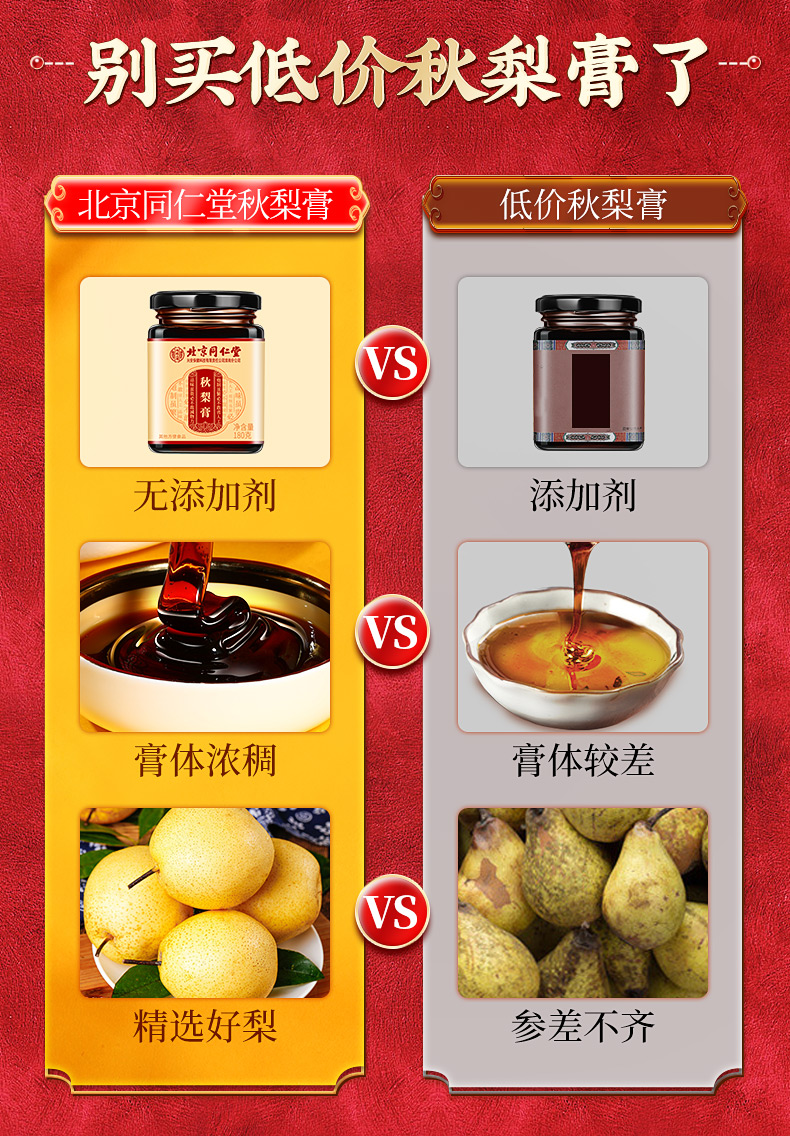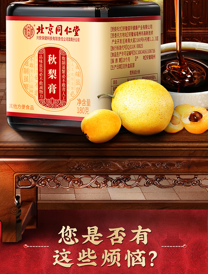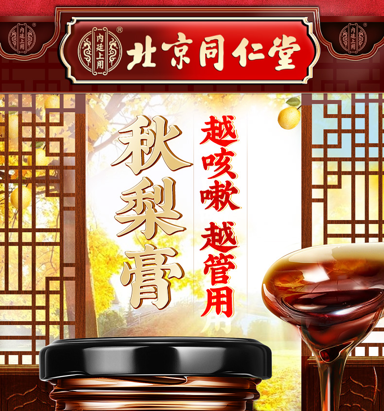 【家家必备 百年汉方】北京同仁堂内廷上用秋梨膏180g 护你嗓子肺部 浓稠膏体 汤色明亮