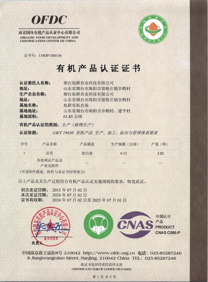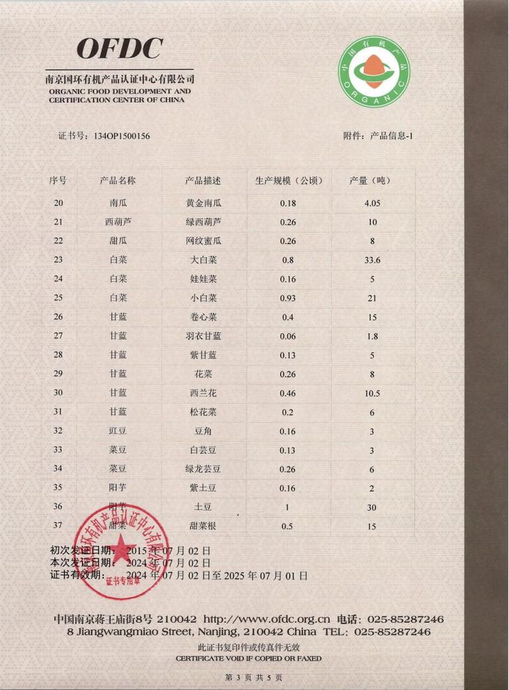 生产方式:2013年起有机种植,使用商品有机肥,骨粉,磷矿粉做底肥,花生麸+红糖沤肥;使用除虫菊素,枯草芽孢杆菌,多粘类芽孢杆菌,香菇多糖等防治病虫害,不除草。