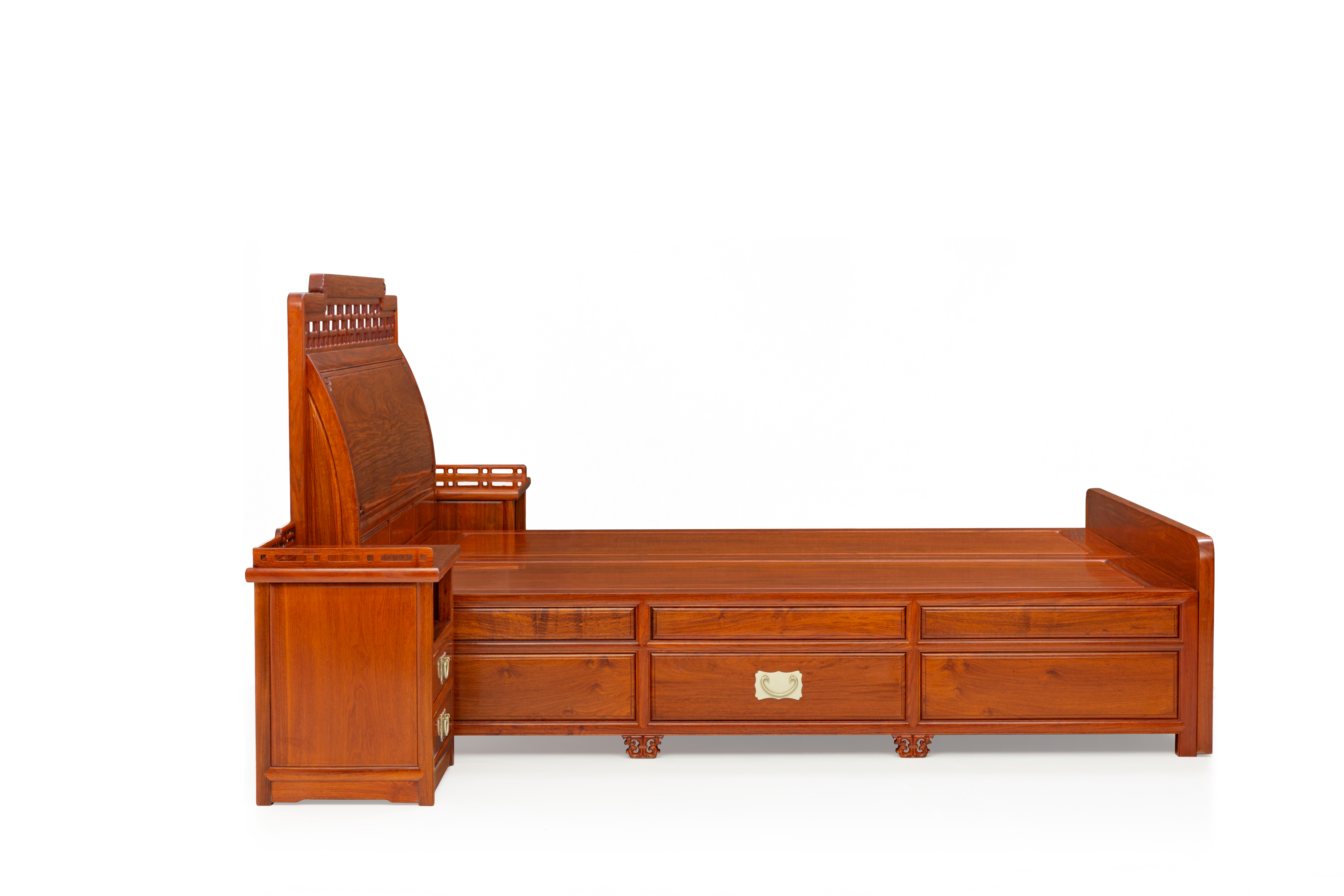 红桥红  家具严选  缅甸花梨(大果紫檀)【180曲尺弯背素面 高低床】 商品图4