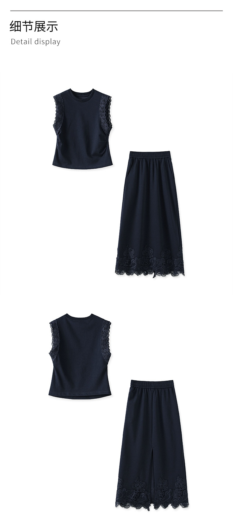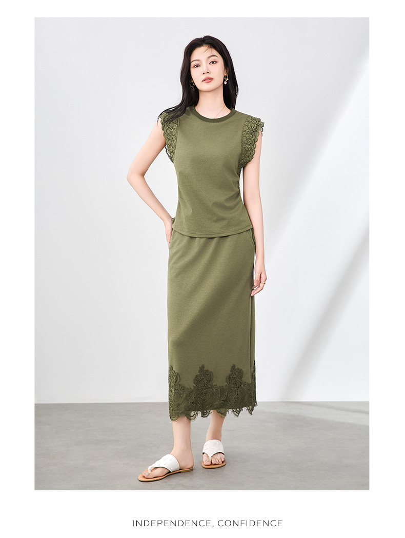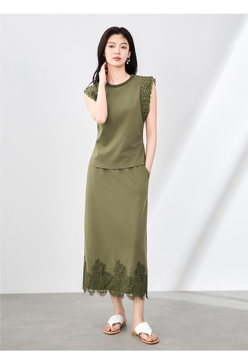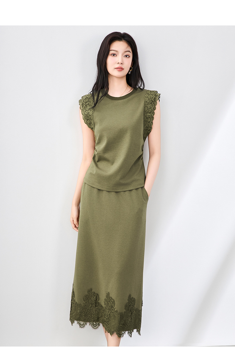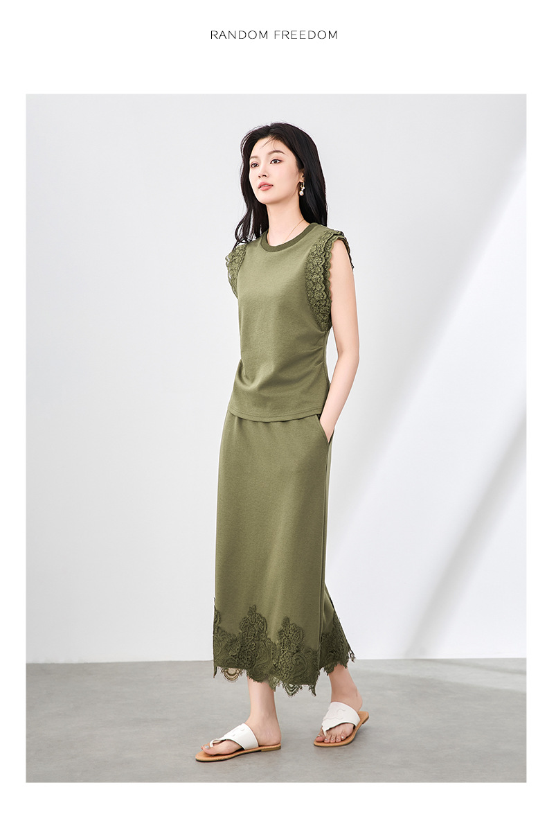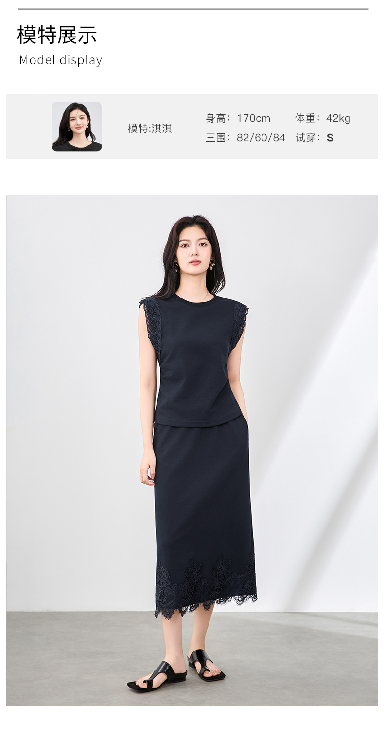 「高货wl」全新升级【铂金会员330/天猫439/差价109】(99833)洛诗琳气质蕾丝拼接收腰显瘦无袖上衣直筒半裙两件套装女wl99833
